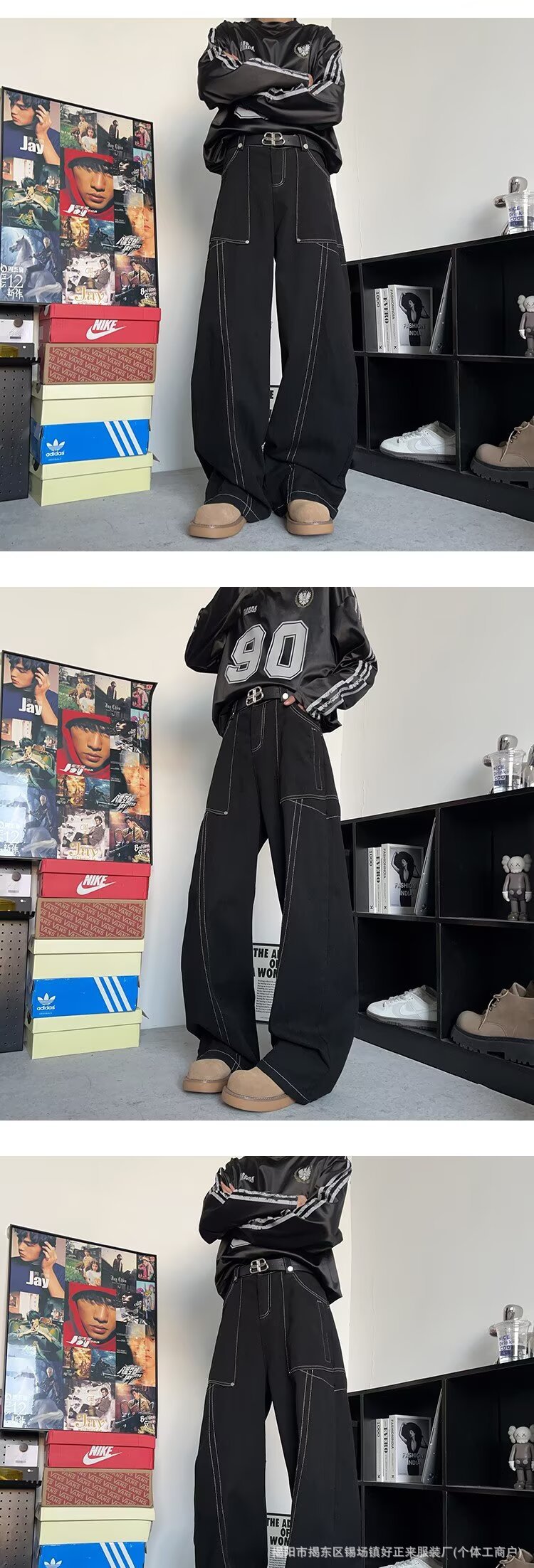 2025 봄 새로운 오픈 라인 디자인 센스 툴링 청바지 남성 아메리칸 스타일 레트로 느슨한 슬리밍 스트레이트 레그 와이드 레그 바지