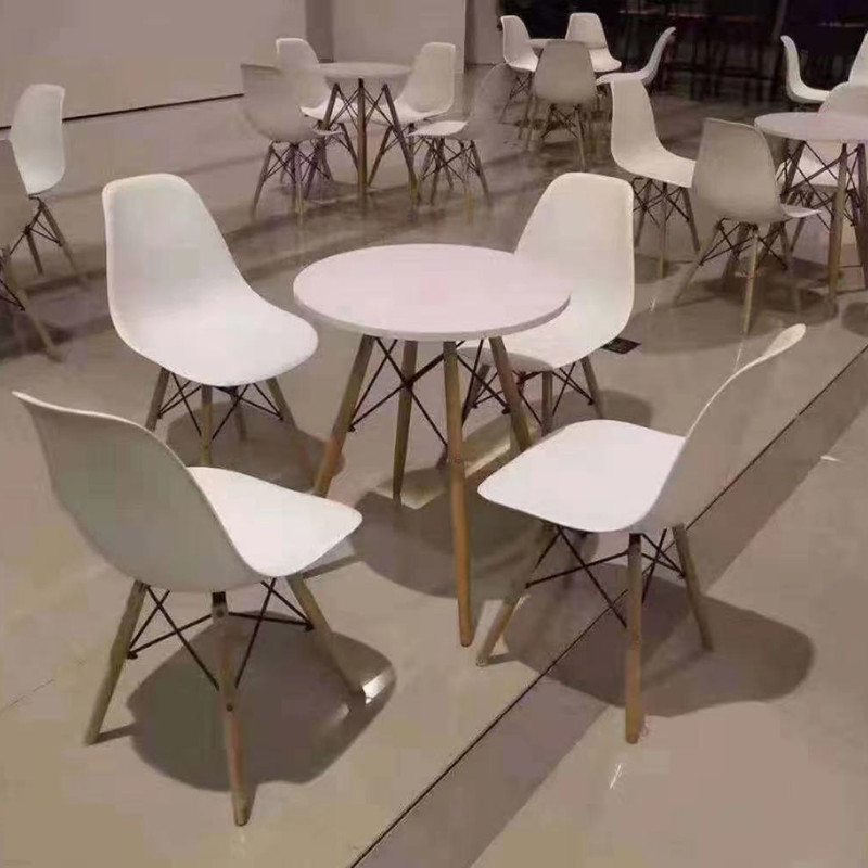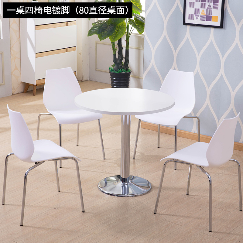 전시 테이블 및 의자 리셉션 협상 1 테이블 및 4 개의 의자 조합 사무실 작은 라운드 테이블 흰색 플라스틱 등받이 호이스트