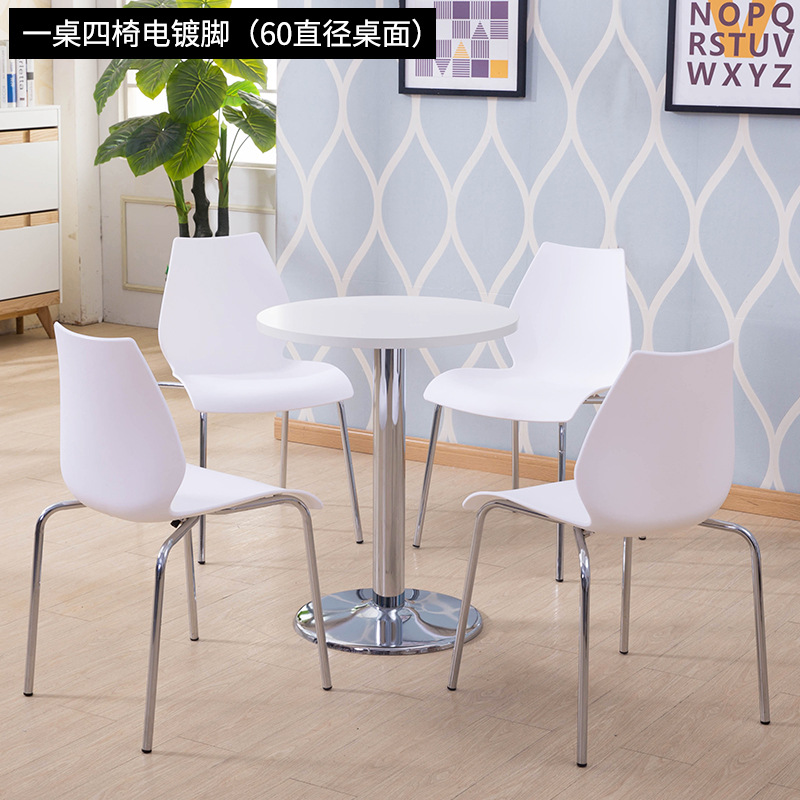 • 전기 도금된 다리가 있는 테이블 1개와 의자 3개(데스크탑 직경 60)☆☆