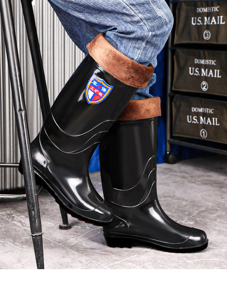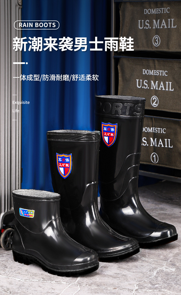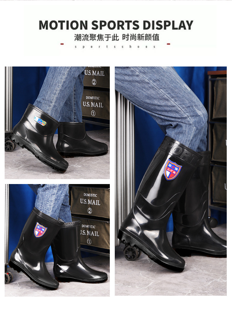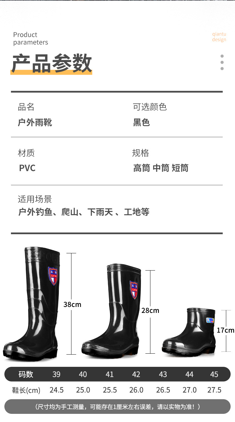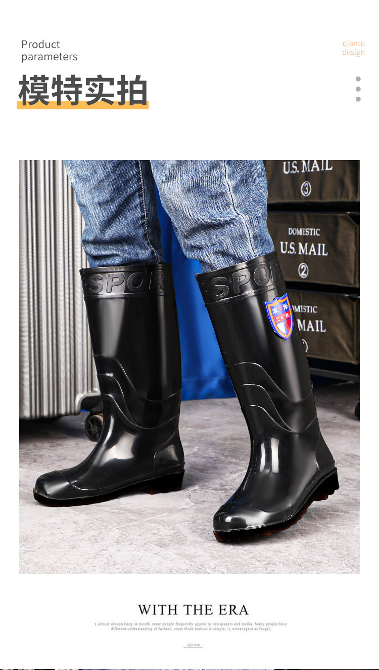 노동 보호 남성용 높은 물 신발 두꺼운 밑창 내마모성 중장화 방수 미끄럼 방지 공사 현장 비 신발 물 신발 남성 및 여성 워터 부츠