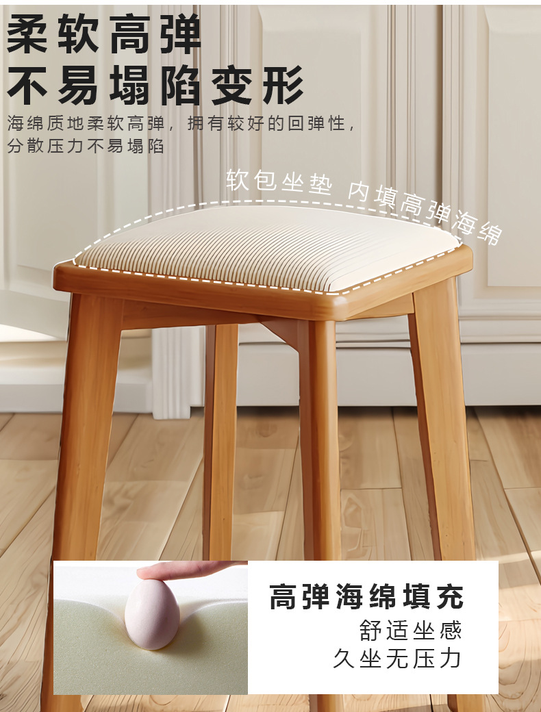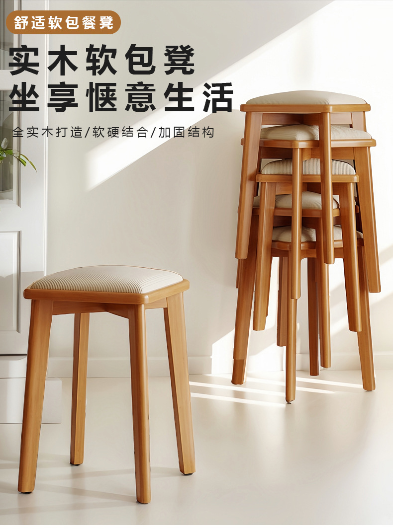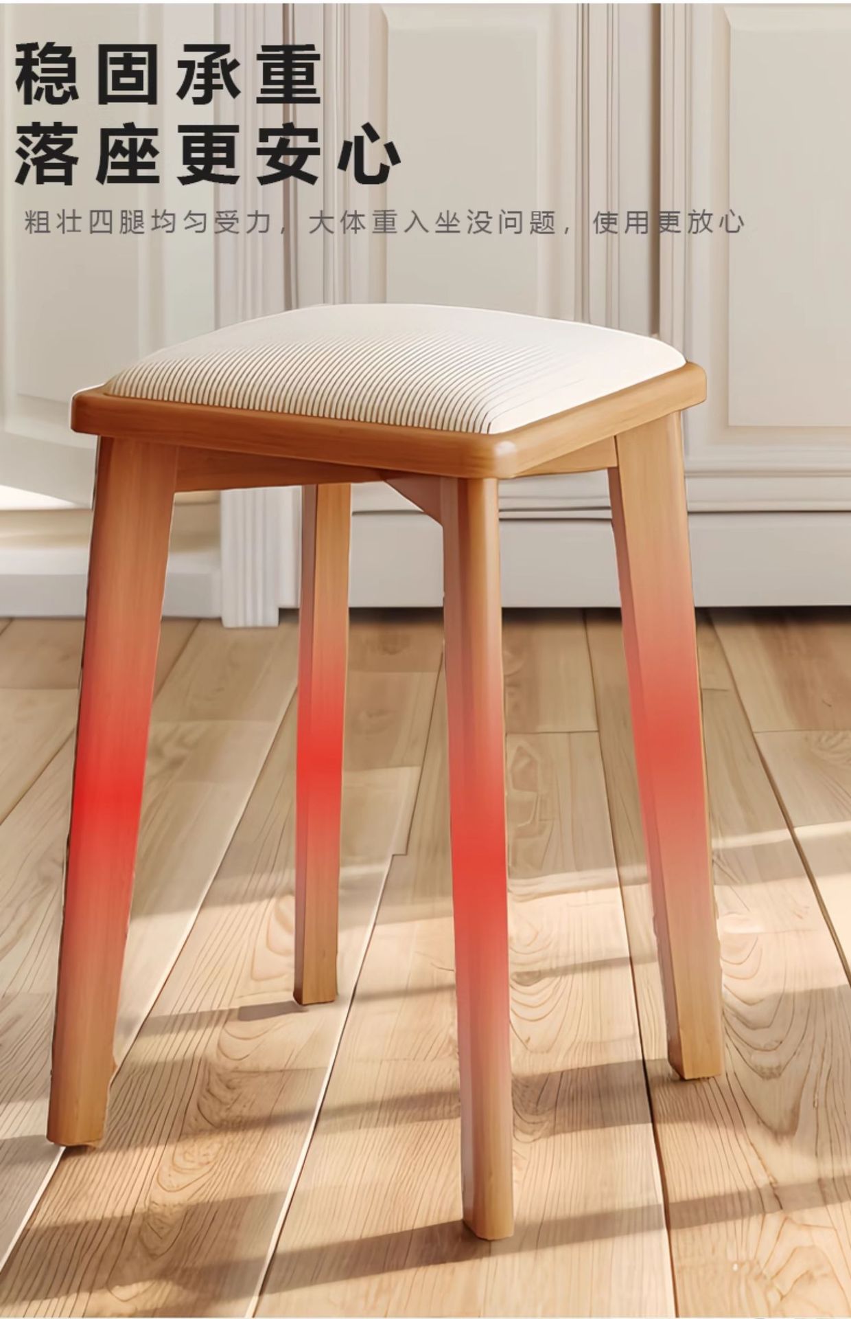 단단한 나무 의자 가정용 작은 벤치 현대 간단한 쌓을 수있는 두꺼운 식탁 부드러운 가방 광장 의자 강하고 튼튼한 낮은 의자스토어 가기