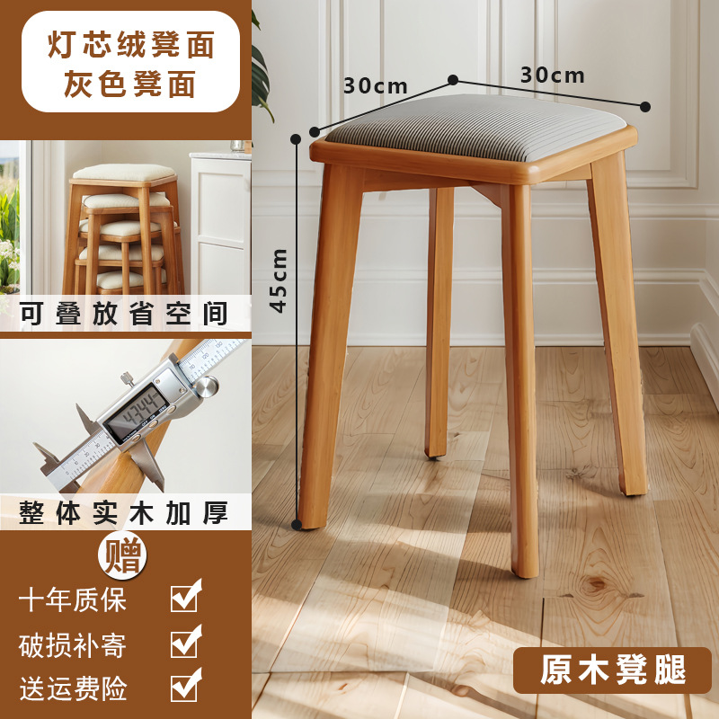 • 【고탄성 스펀지☀️】코듀로이 스툴 표면, 통나무 스툴 다리, 그레이 스툴 표면【✅더하다