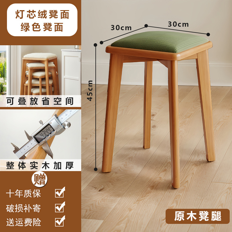 • 【고탄성 스펀지 ☀️ 】코듀로이 스툴 표면, 통나무 스툴 다리, 그린 스툴 표면【 ✅ 더하다