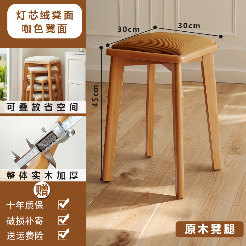 • 【고탄성 스펀지☀️】코듀로이 스툴 표면, 통나무 스툴 다리, 브라운 스툴 표면【✅더하다