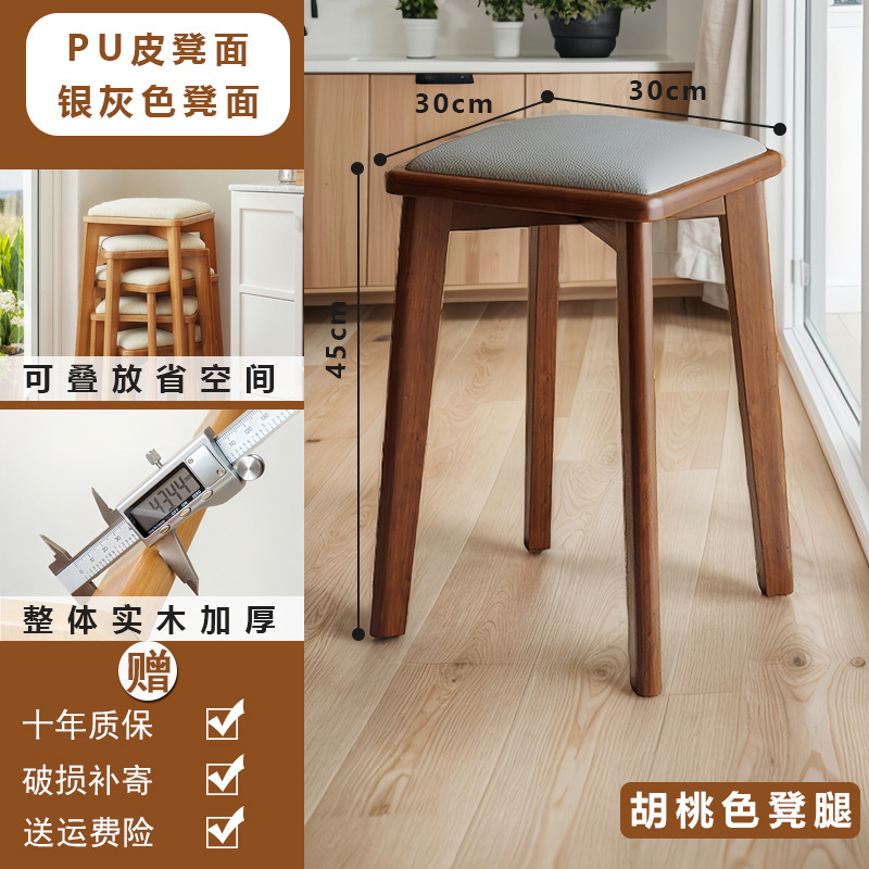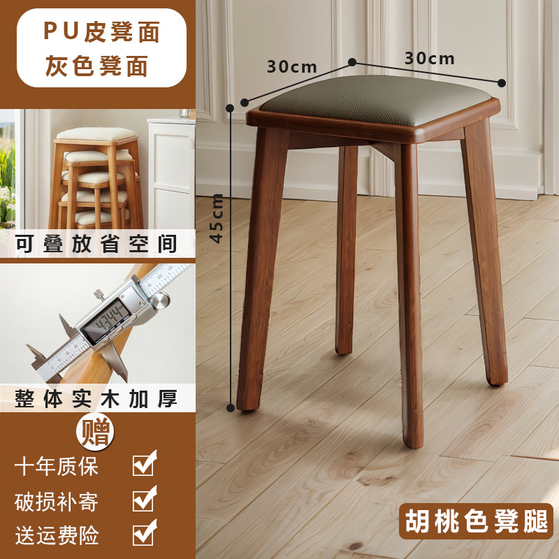 • 【고탄성 스펀지☀️】PU+호두색 스툴다리+그레이 스툴 표면【✅두꺼워지고 강화됨