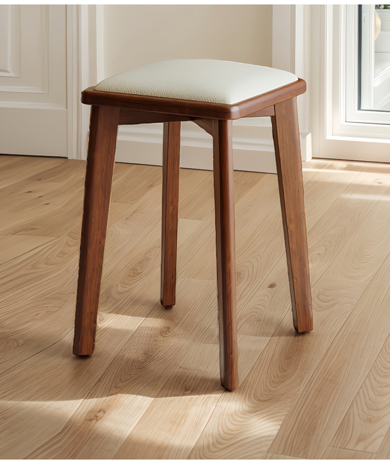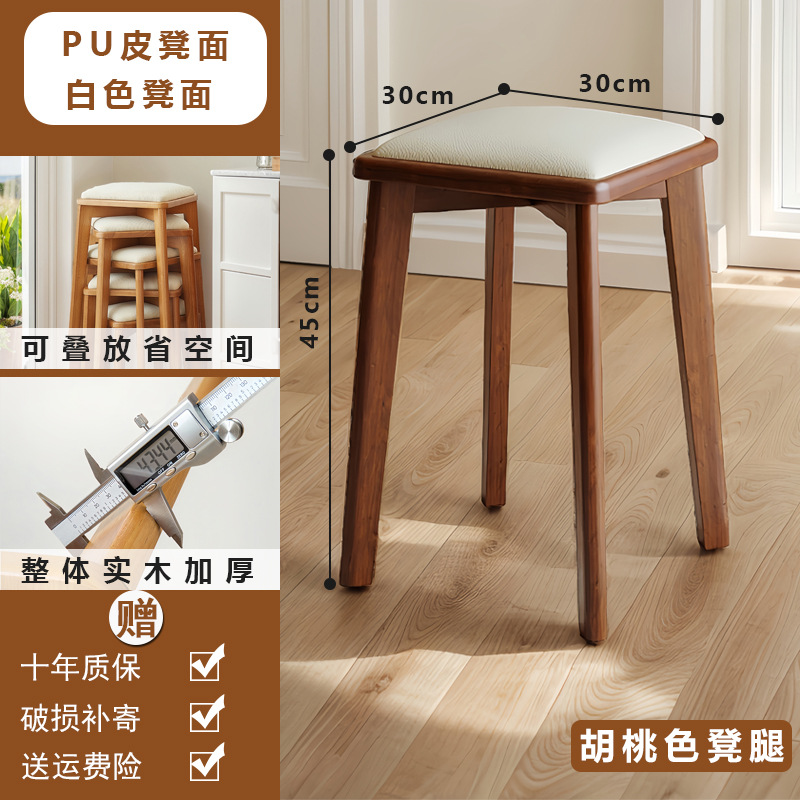 • 【고탄성 스펀지☀️】PU 가죽 + 호두색 다리 + 흰색 스툴 표면【✅두꺼워지고 강화됨