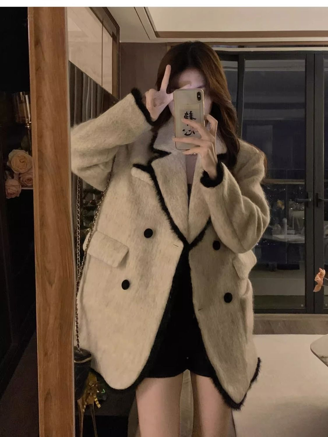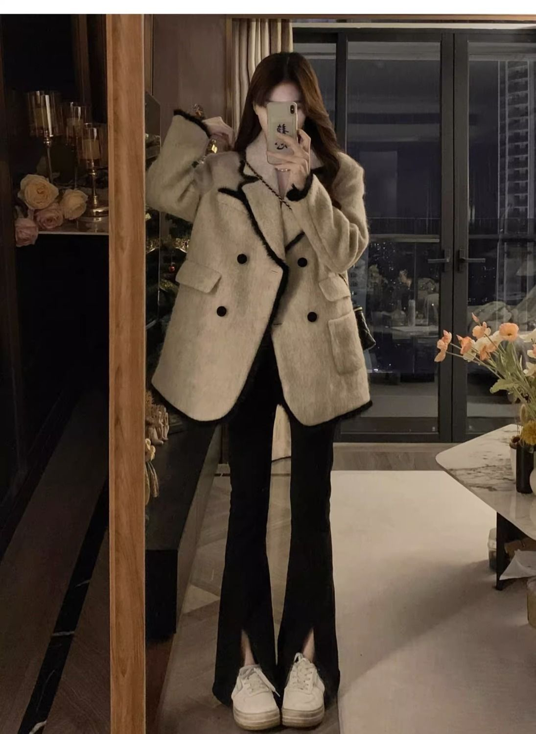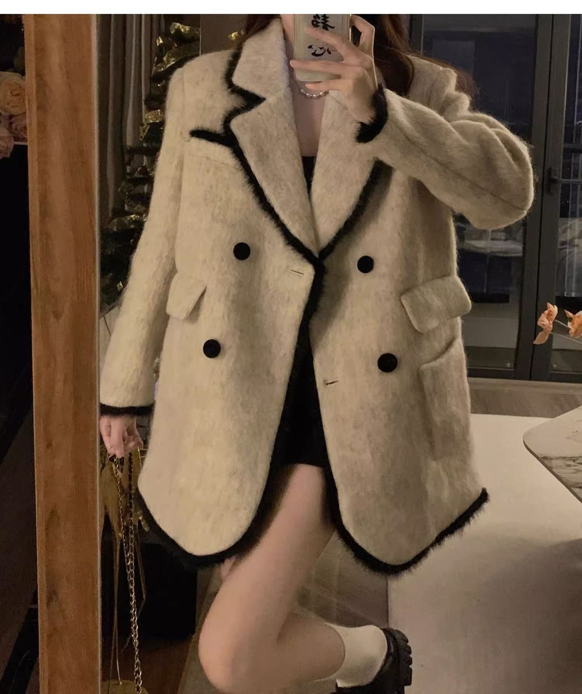 명암 컬러 칙칙한 올매치 원피스 칼라 코트 봄과 가을 유행 우아한 나이 감소 카디건 탑스토어 가기