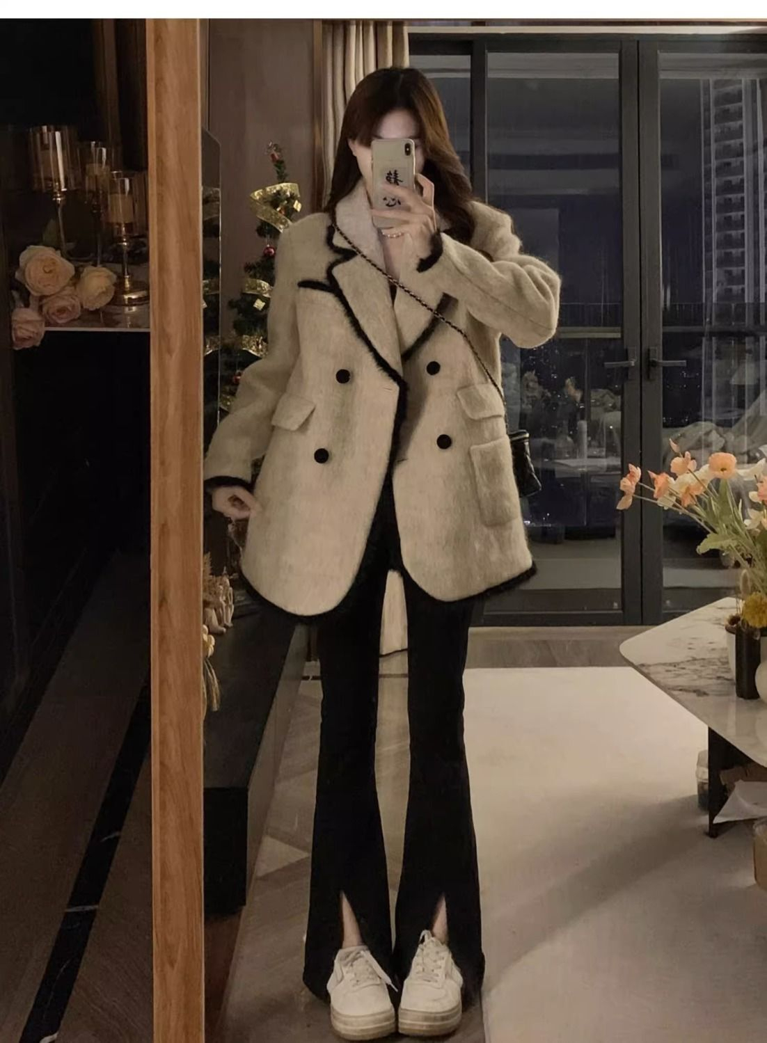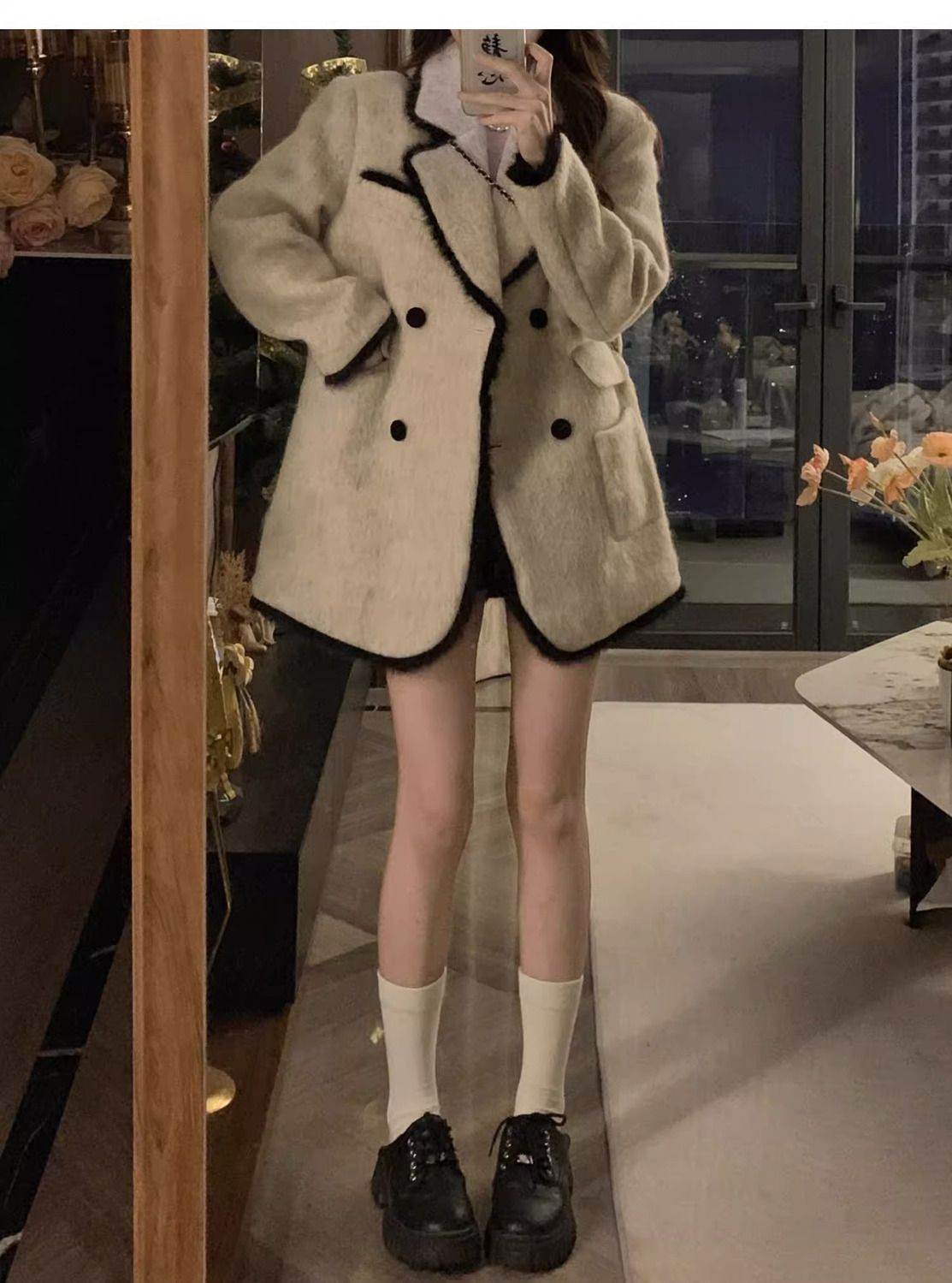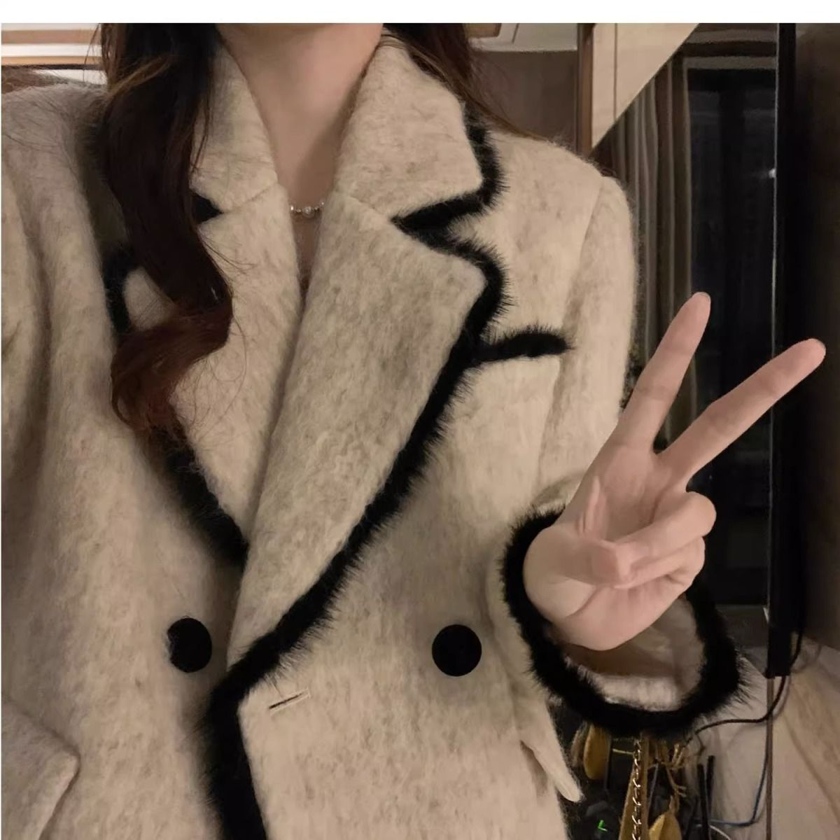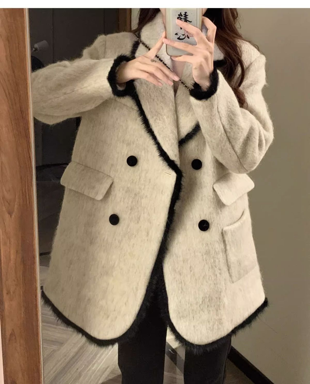 명암 컬러 칙칙한 올매치 원피스 칼라 코트 봄과 가을 유행 우아한 나이 감소 카디건 탑스토어 가기