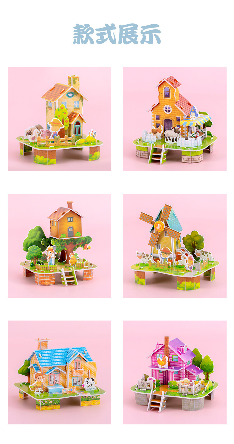 만화 조립 3 스테레오 하우스 퍼즐 어린이 작은 장난감 건물 모델 스톨 유치원 작은 상금