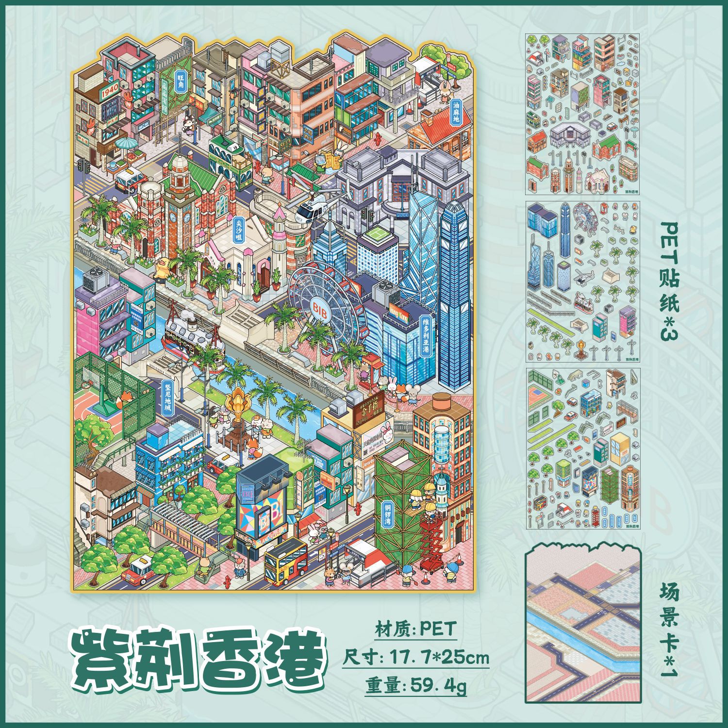 语闲三层立体微缩造景贴纸 幻想世界系列 视觉3D小屋手账趣味拼贴   暮光微缩造景贴纸 趣味国风立体造景二弹系列 创意免剪小屋手账贴   语闲pet微缩大造景贴纸 城市篇苏州视觉3D堆叠小屋儿童手帐安静书