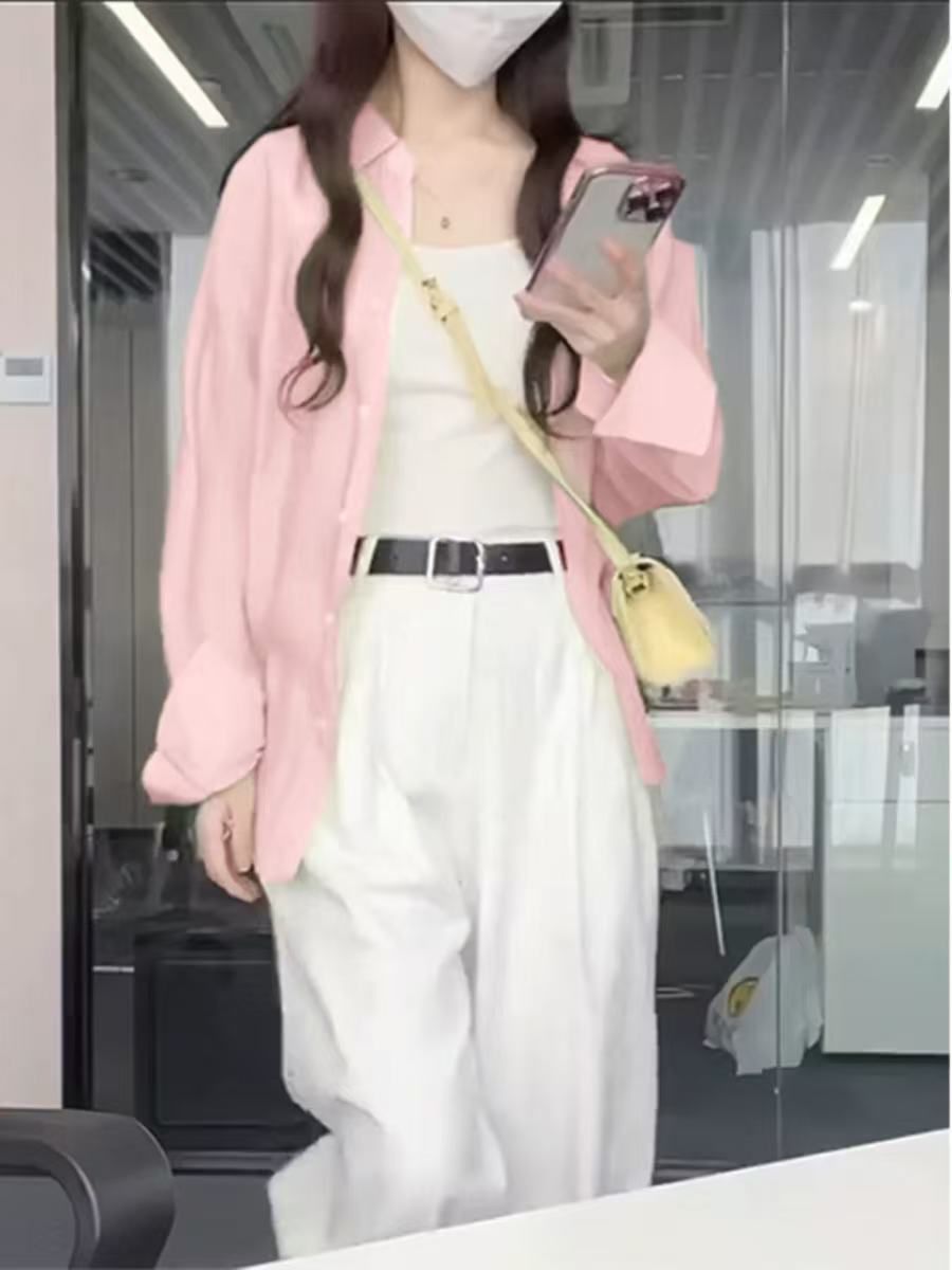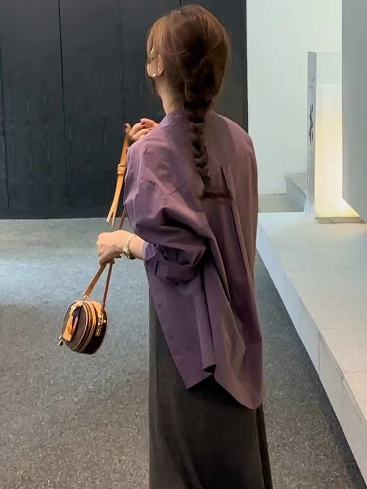 순수 코튼 셔츠 여성용 여름 긴팔 선 스크린 코트 봄과 가을 느슨한 보라색 내부 스택 하이 엔드 셔츠스토어 가기