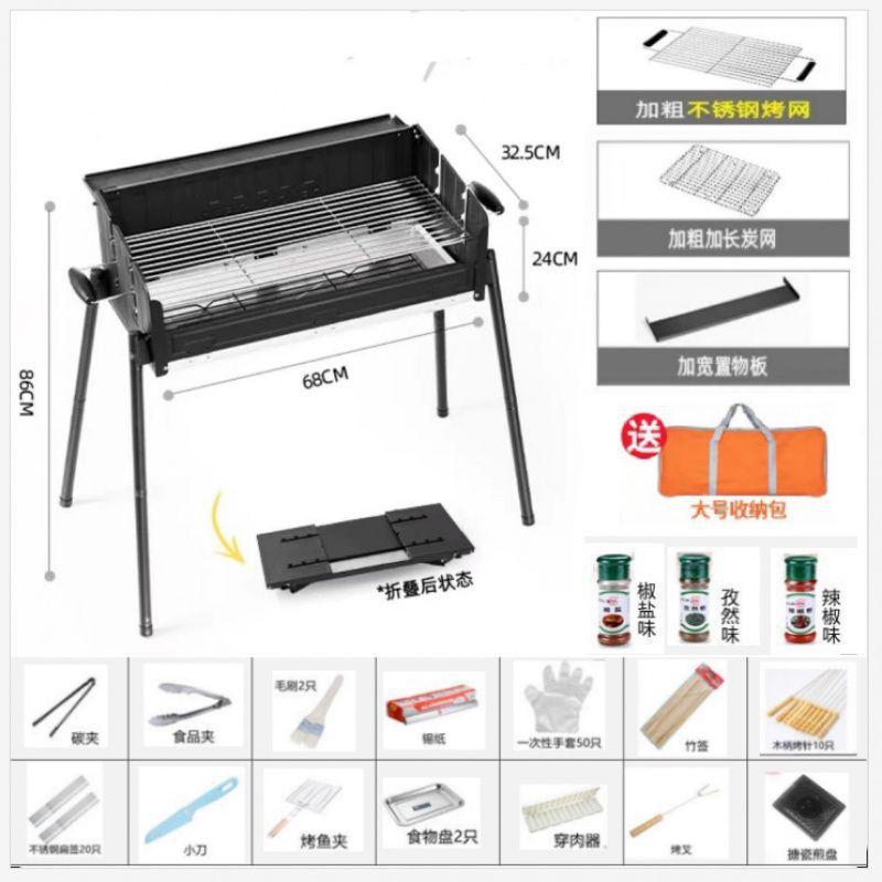 • 설치가 필요 없는 접이식 304+가방+10종 세트 - BBQ 카본 없음