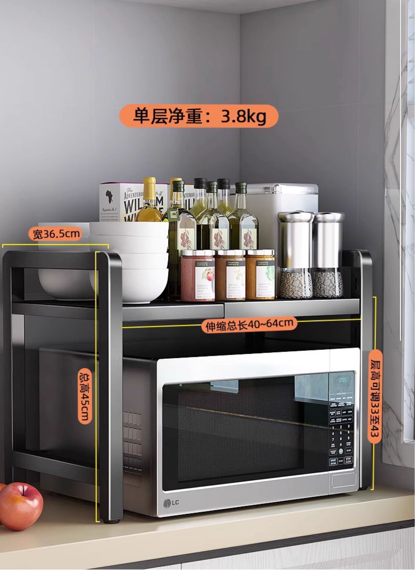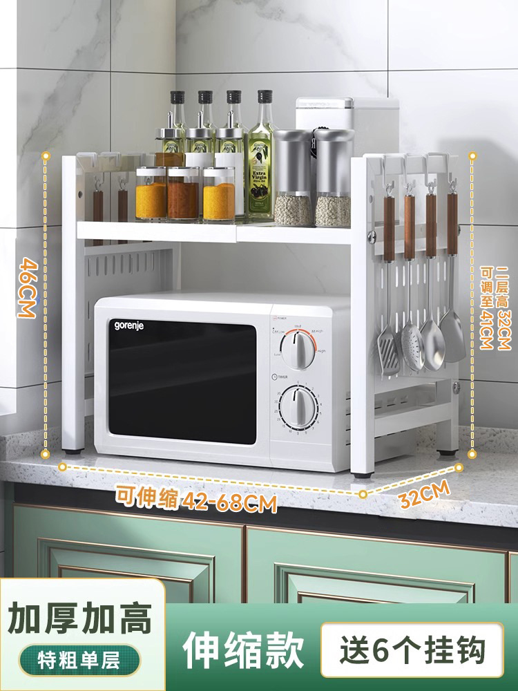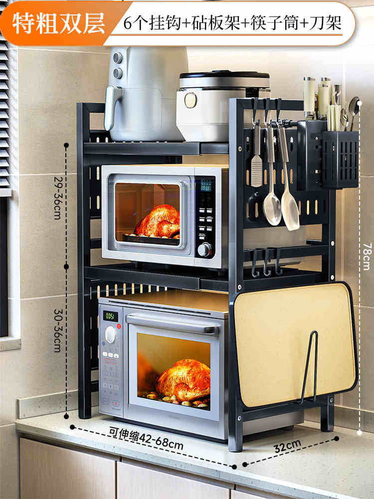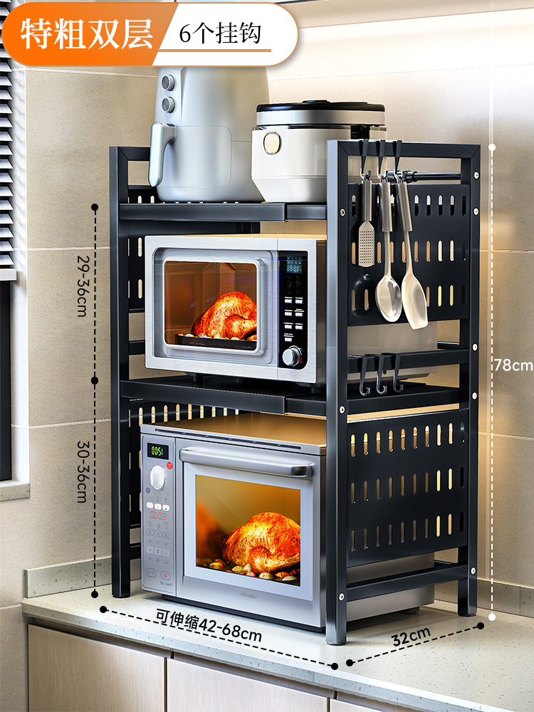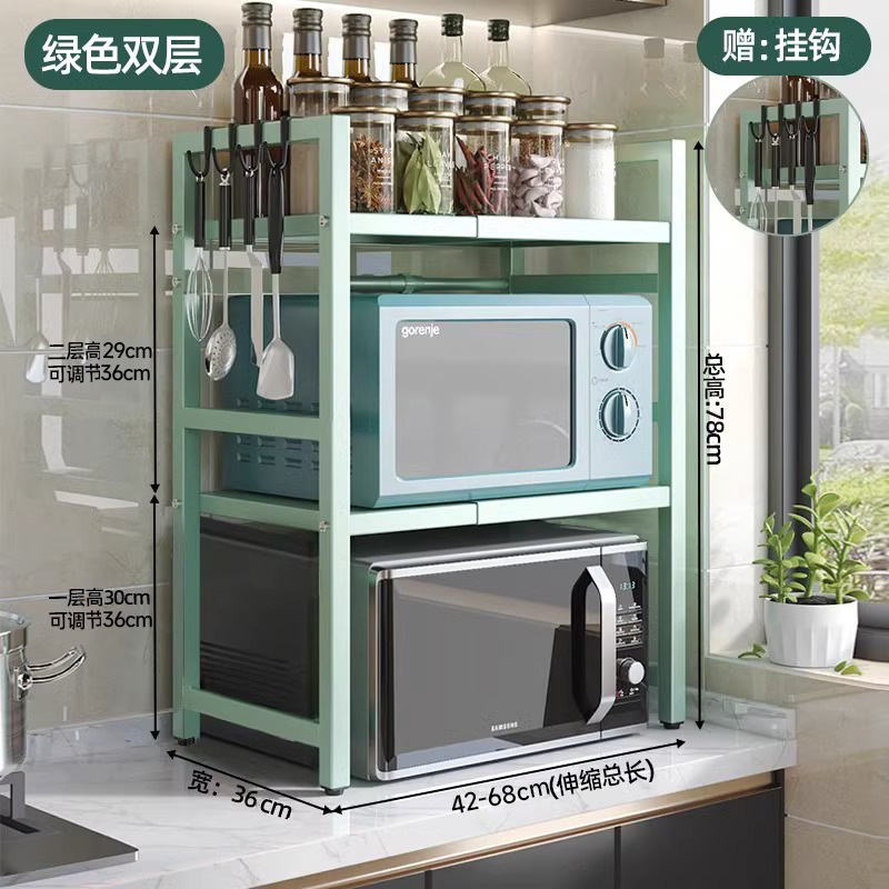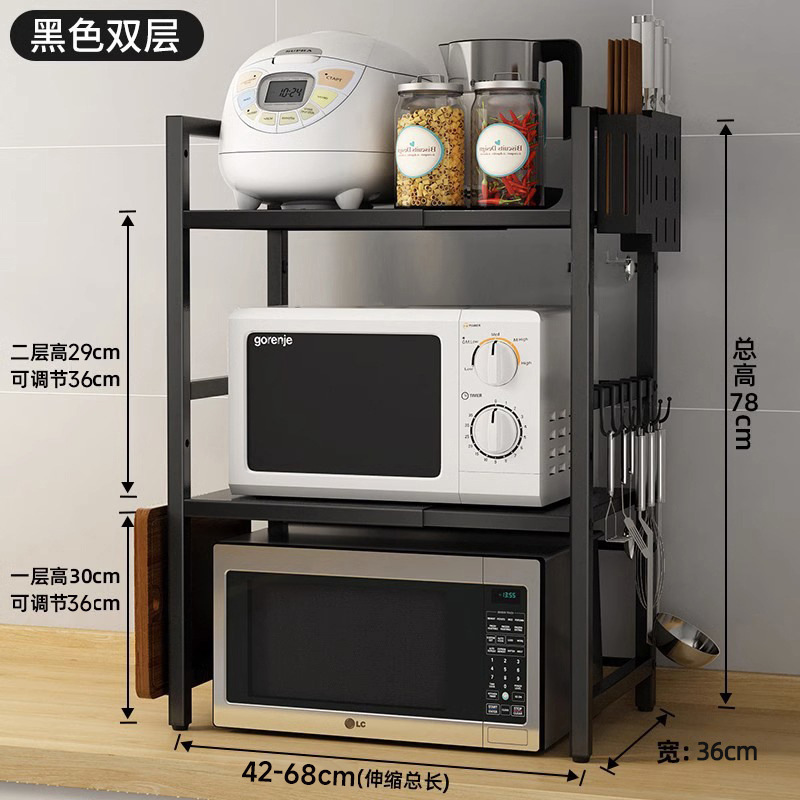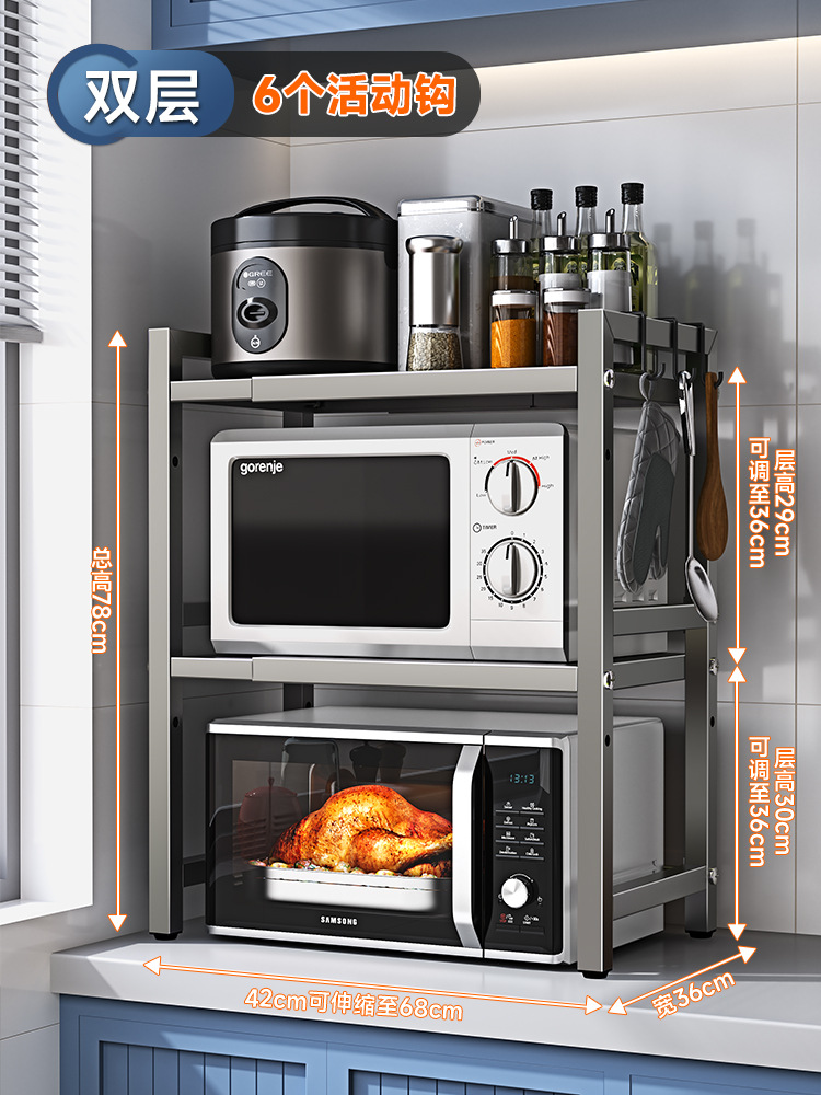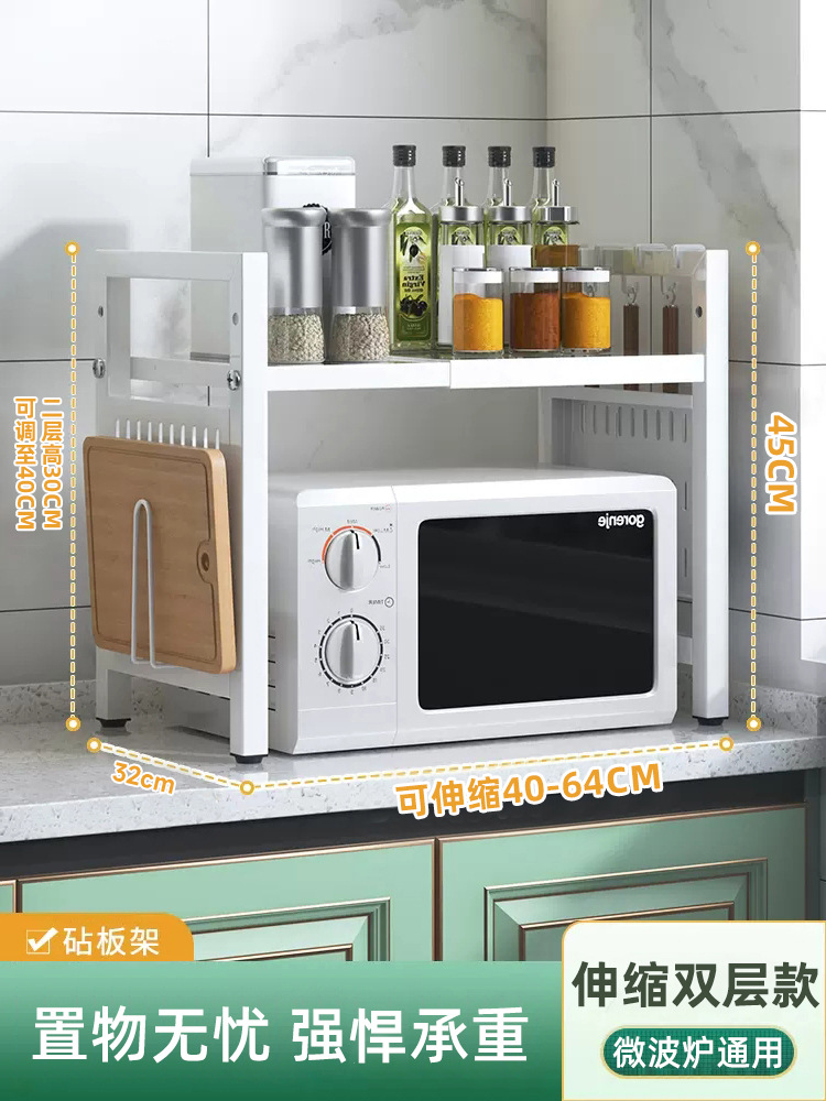 개폐식 주방 보관 랙 전자 레인지 랙 가정용 더블 레이어 조리대 데스크탑 전기 밥솥 보관 브래킷스토어 가기