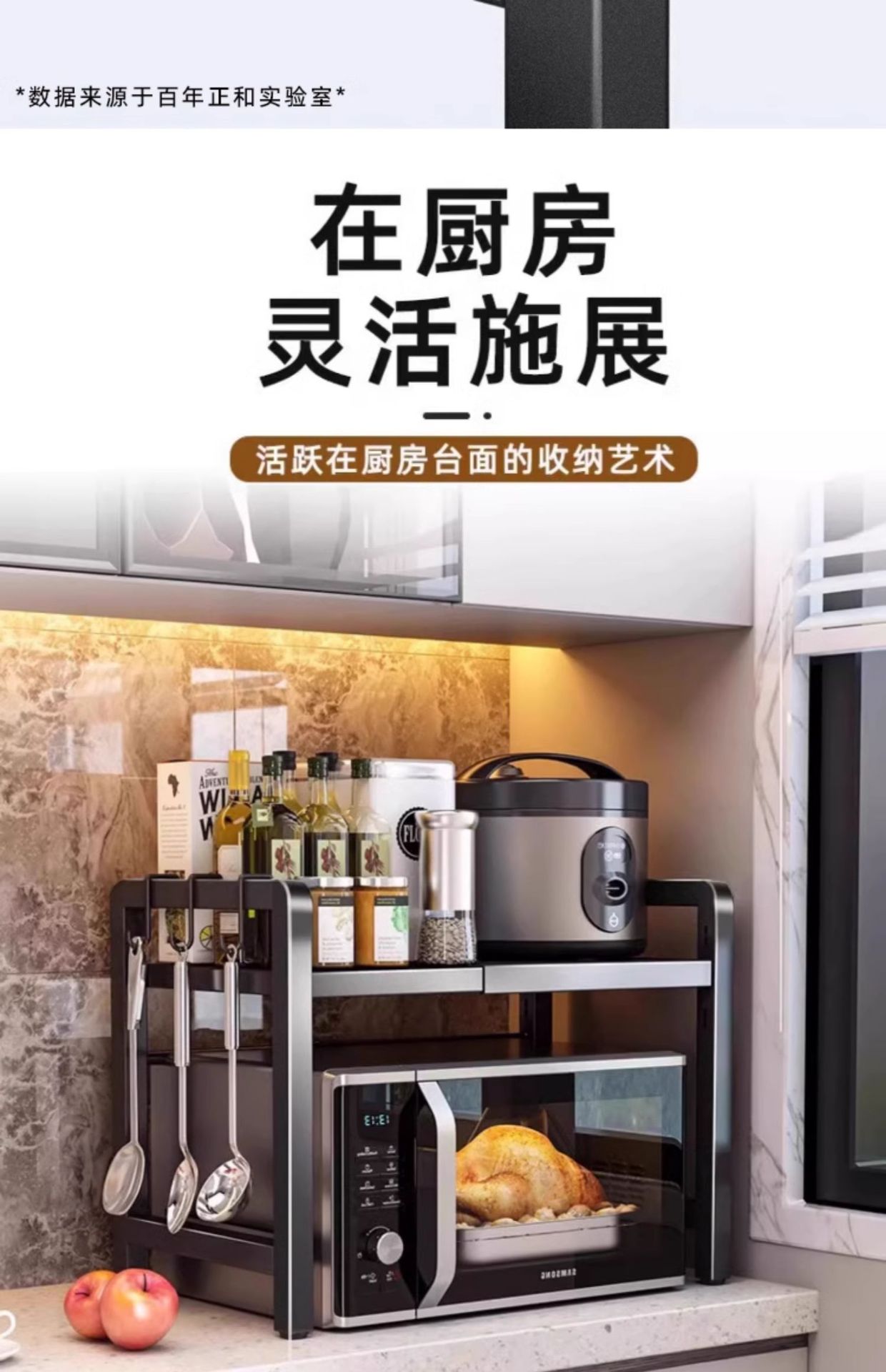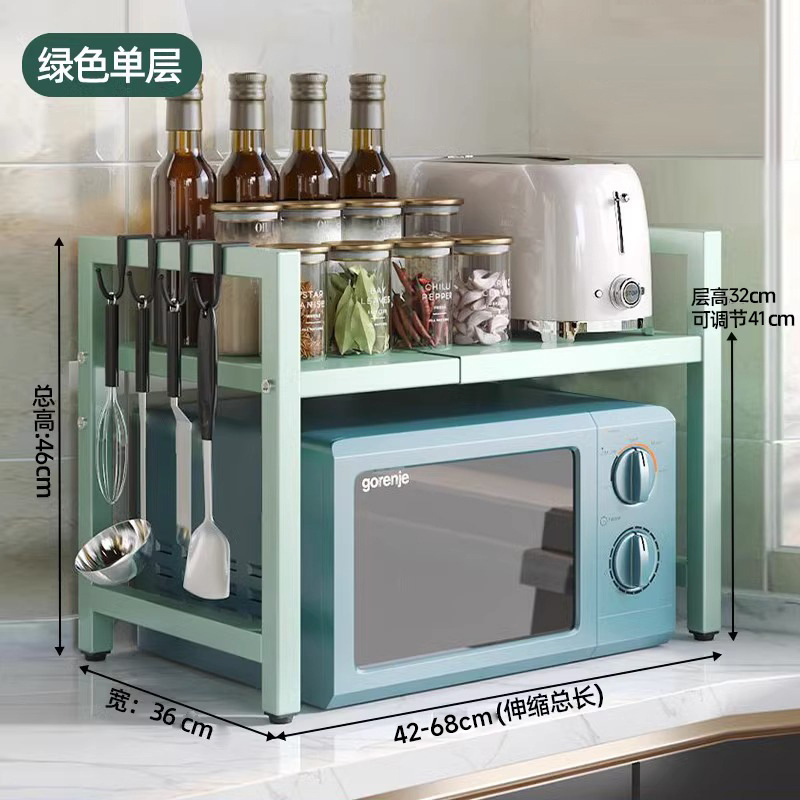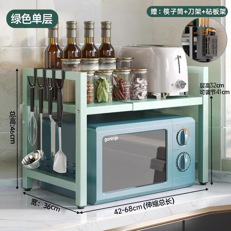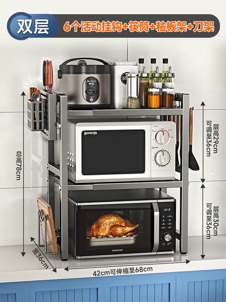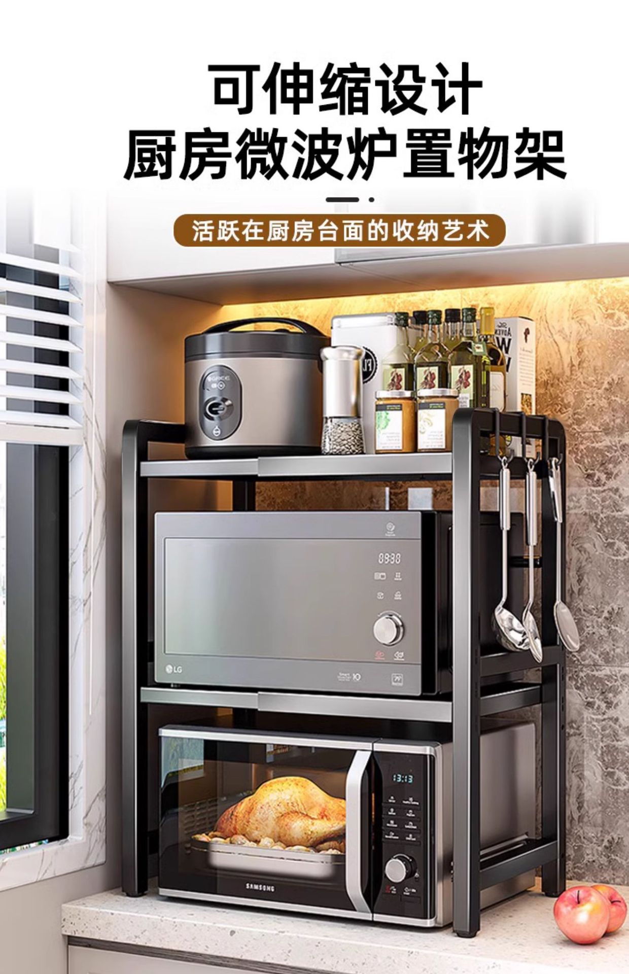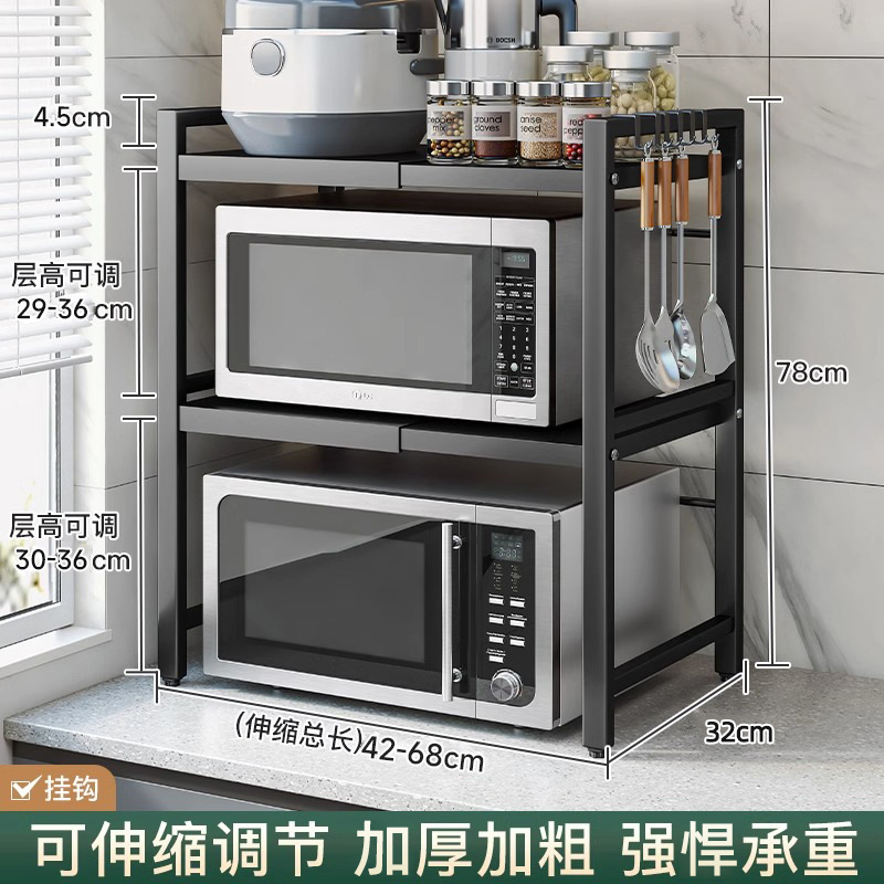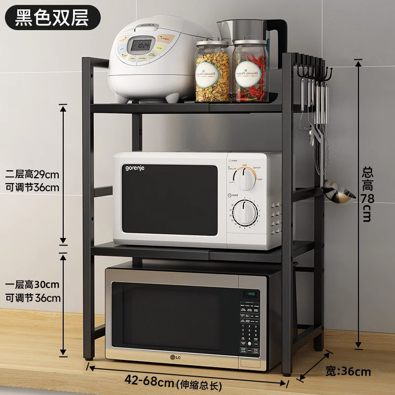 개폐식 주방 보관 랙 전자 레인지 랙 가정용 더블 레이어 조리대 데스크탑 전기 밥솥 보관 브래킷스토어 가기