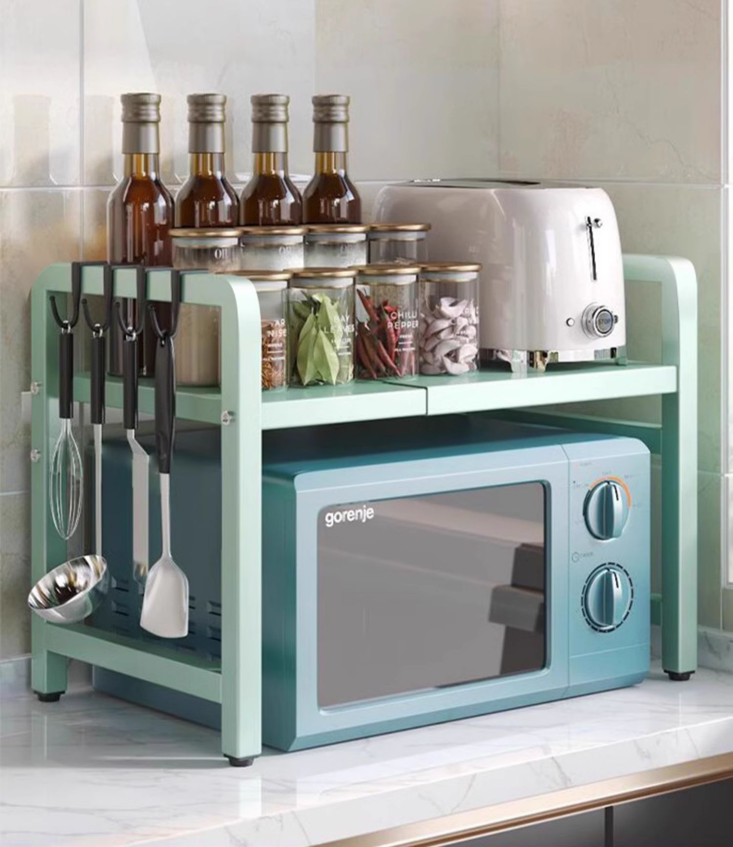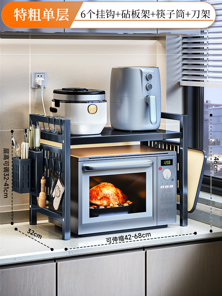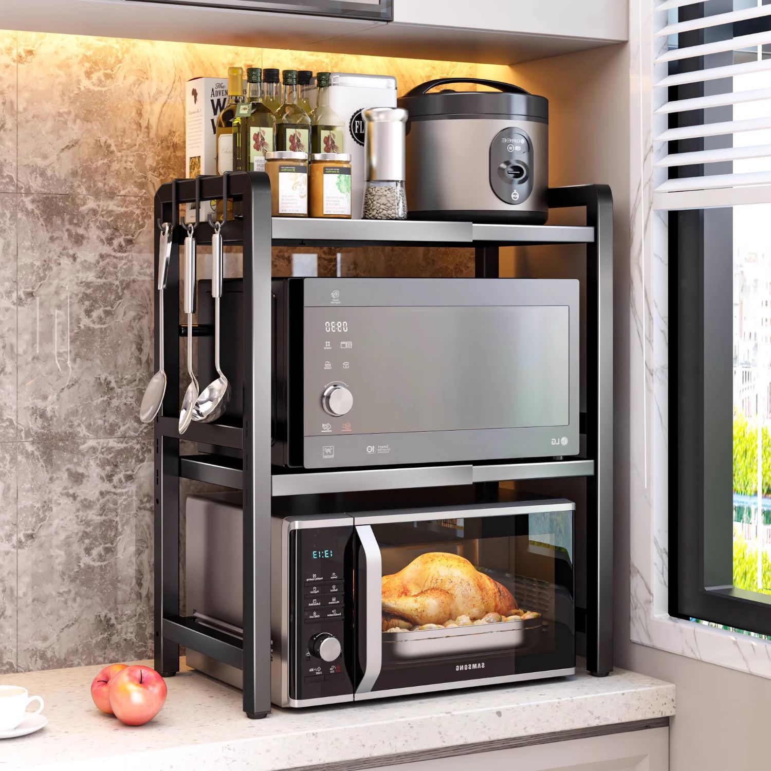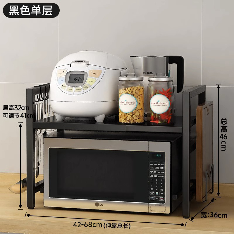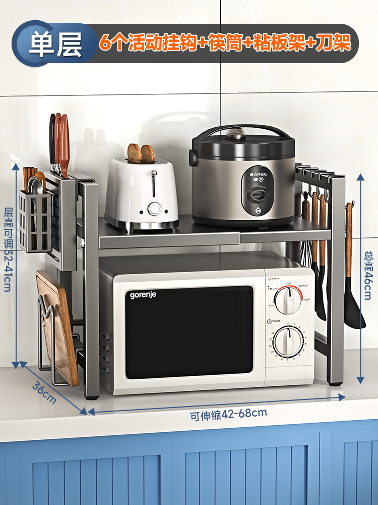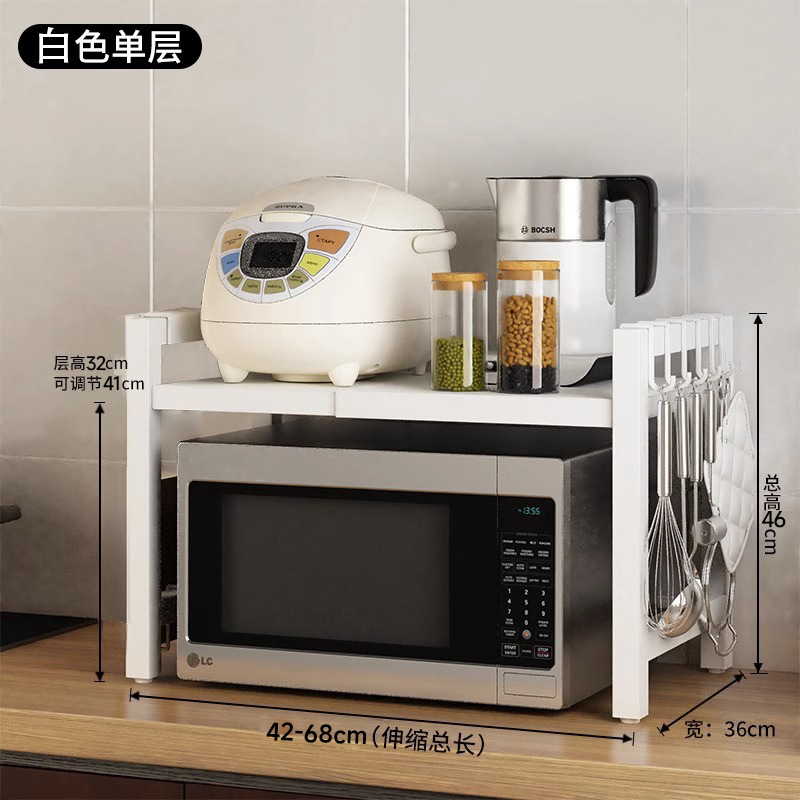 개폐식 주방 보관 랙 전자 레인지 랙 가정용 더블 레이어 조리대 데스크탑 전기 밥솥 보관 브래킷스토어 가기
