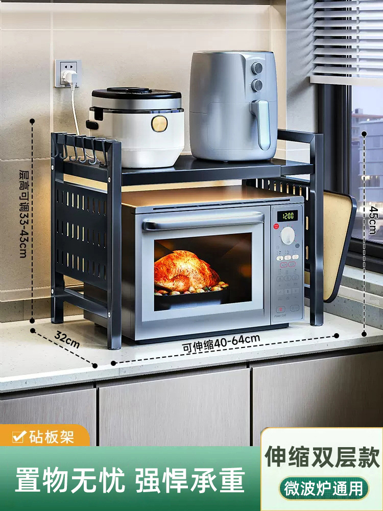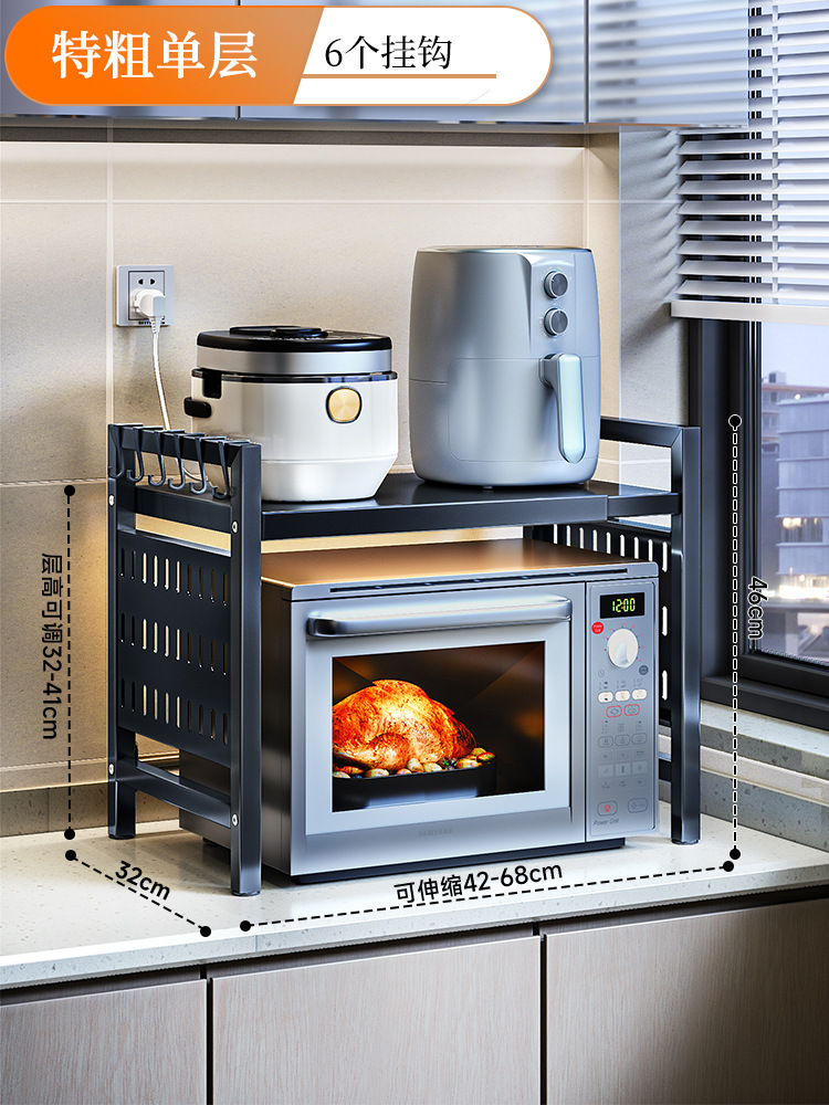 개폐식 주방 보관 랙 전자 레인지 랙 가정용 더블 레이어 조리대 데스크탑 전기 밥솥 보관 브래킷