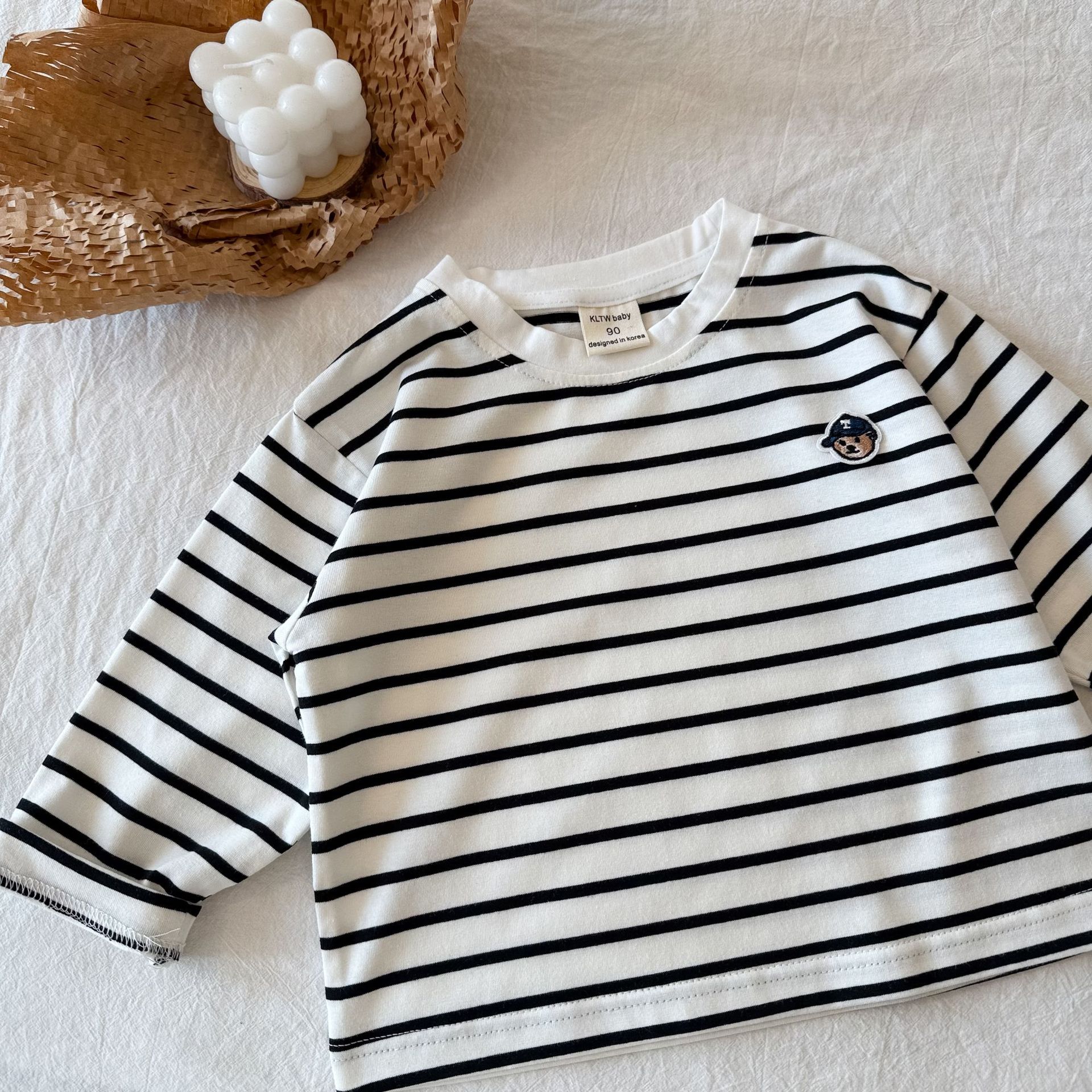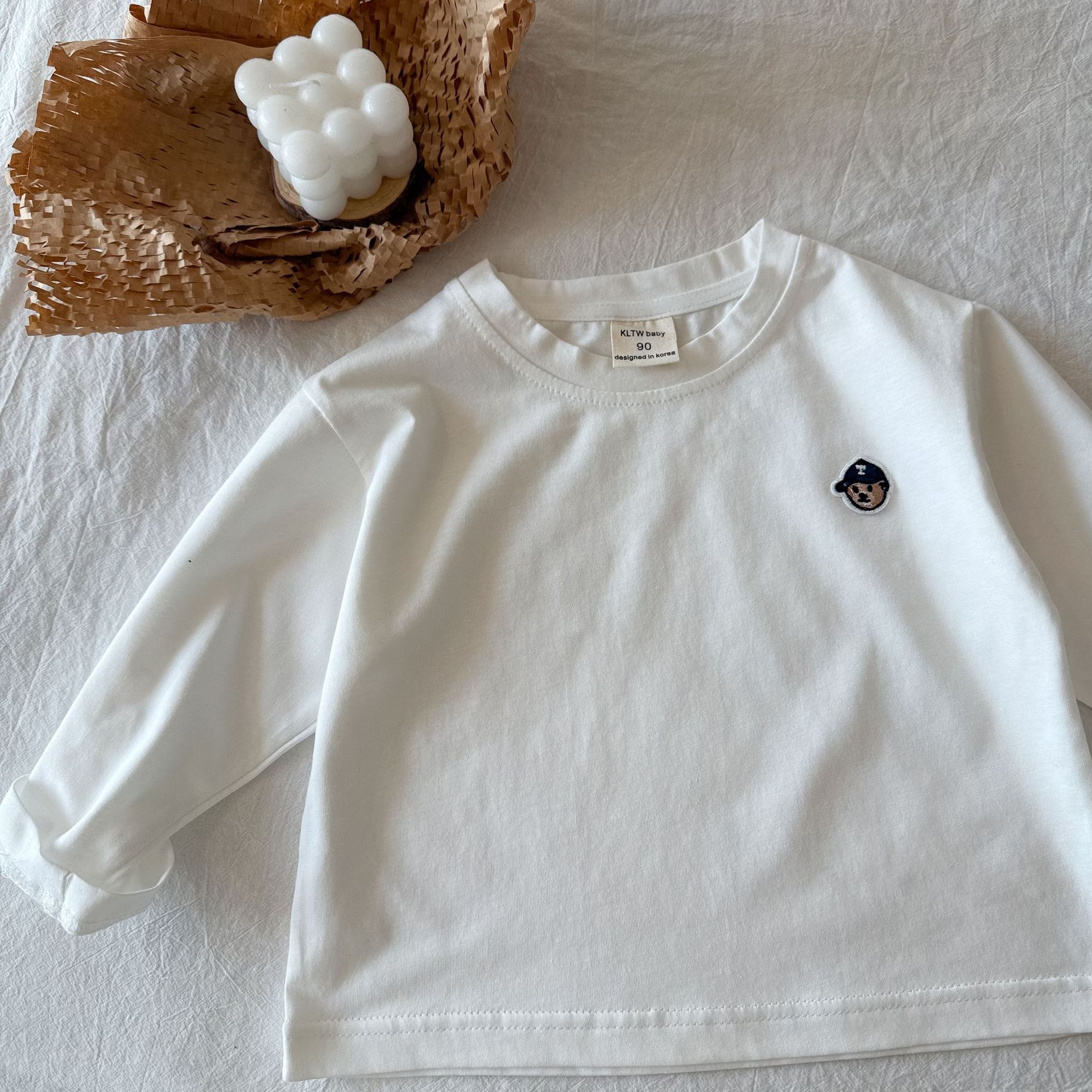 남자들의 긴 소매 티셔츠 둥근 목 어린이베이스 셔츠 2025 봄 만화 곰 아기 소녀 봄 탑