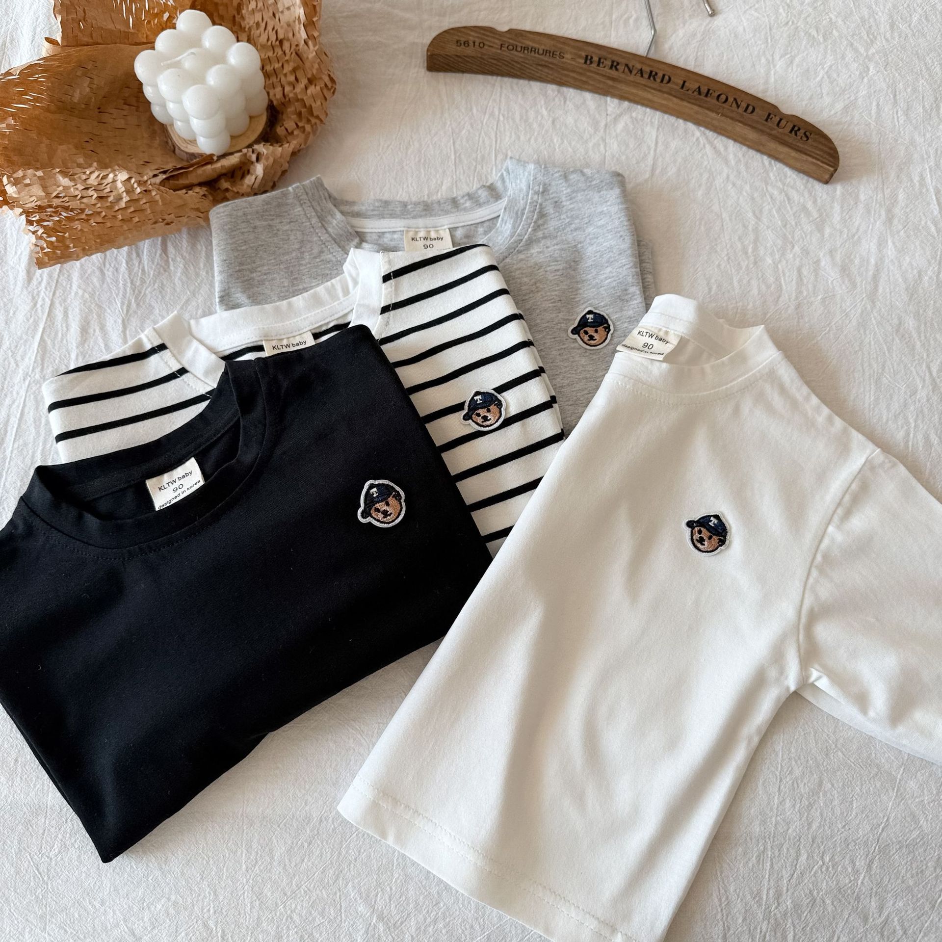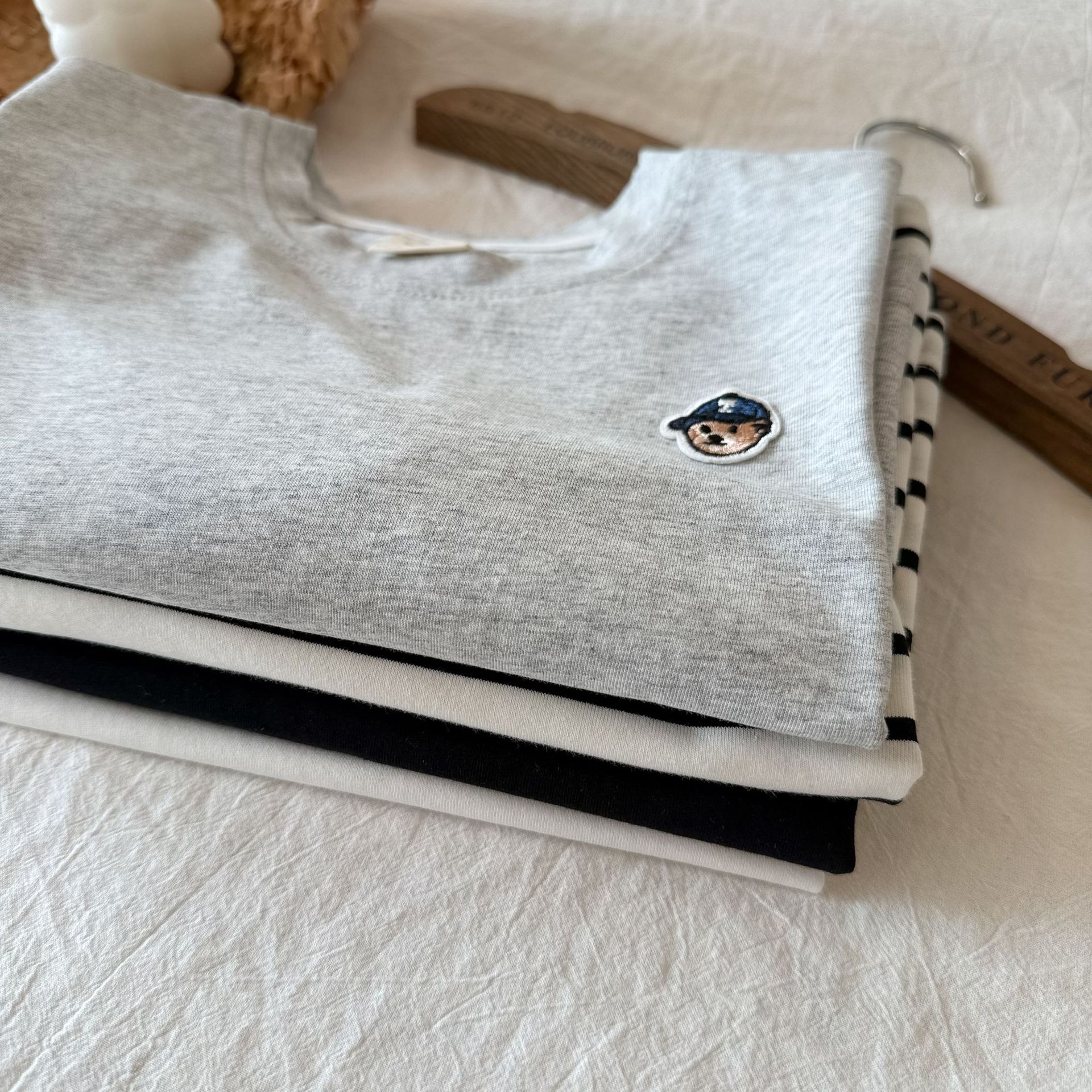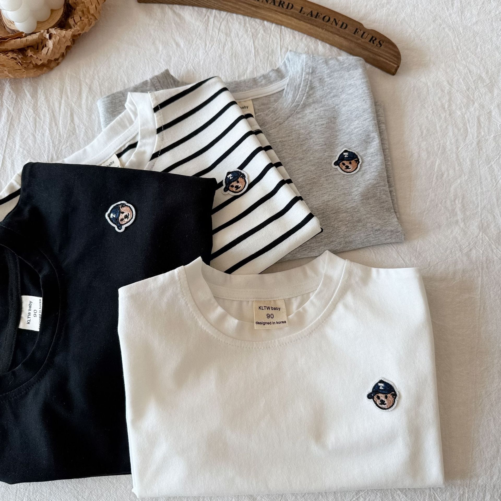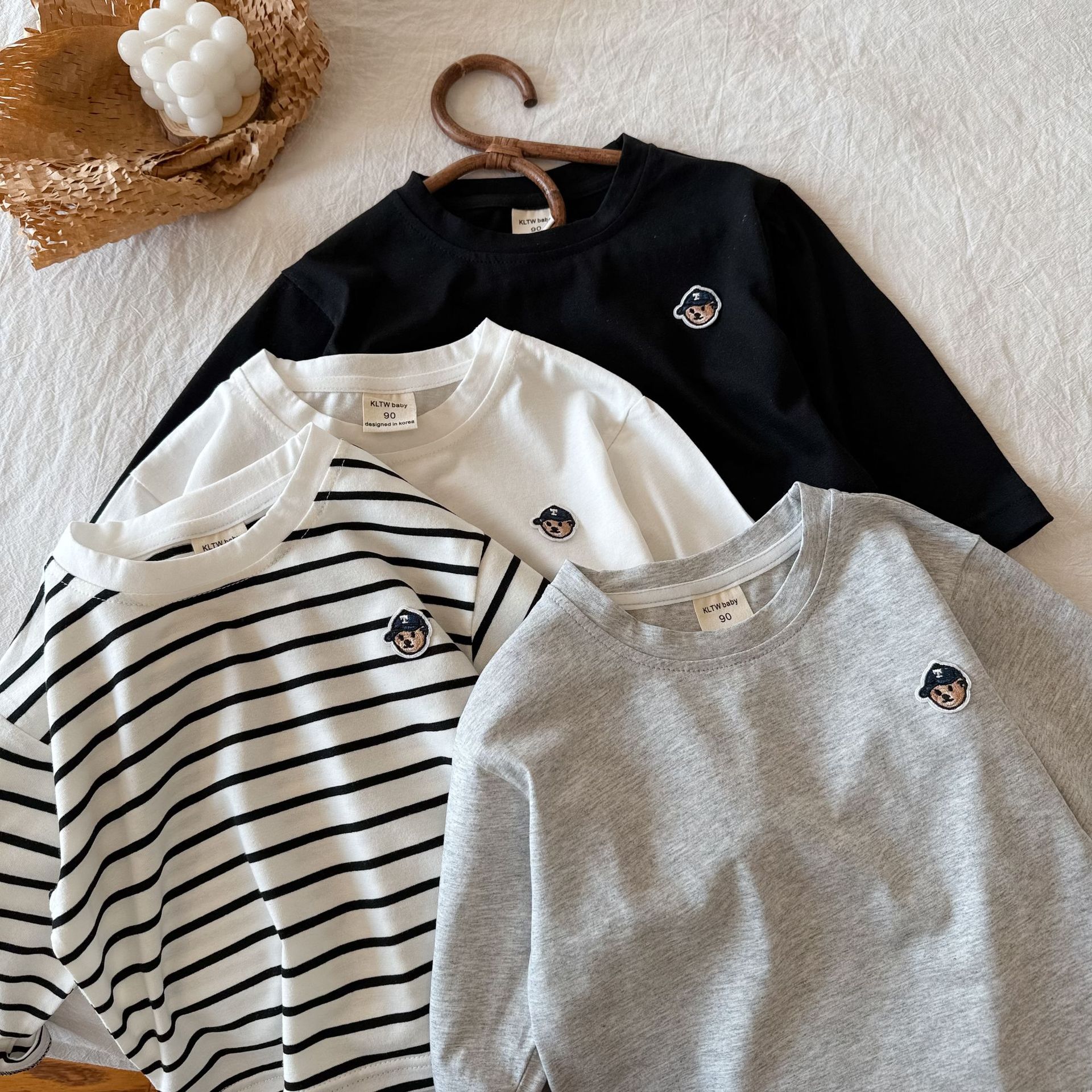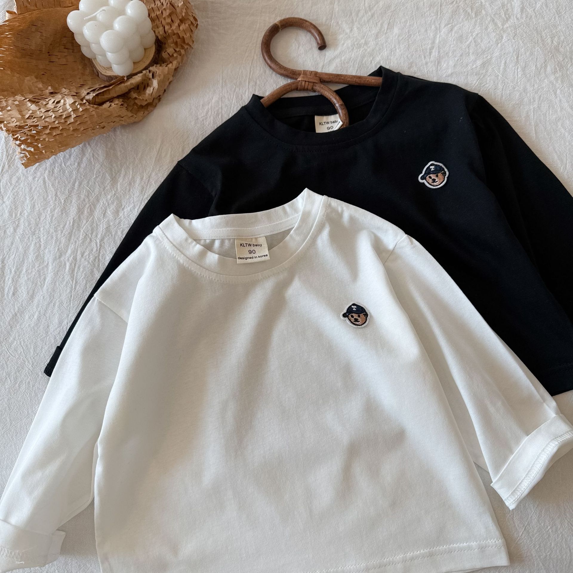 남자들의 긴 소매 티셔츠 둥근 목 어린이베이스 셔츠 2025 봄 만화 곰 아기 소녀 봄 탑스토어 가기