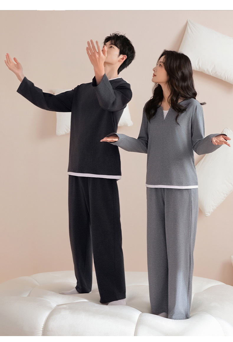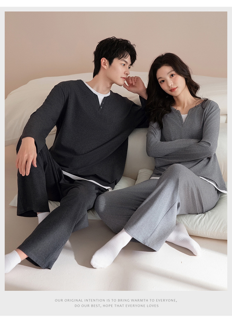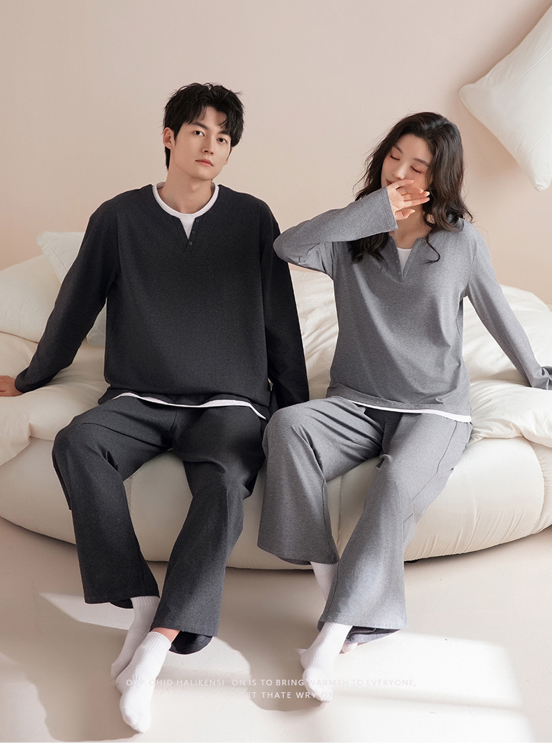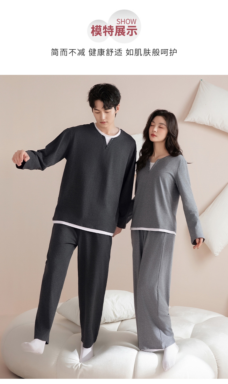 커플 잠옷, 봄 긴팔 순면, 외부 착용 가능, 여성용 페이크 투피스 홈복, 봄, 가을 캐주얼 심플 남성복스토어 가기