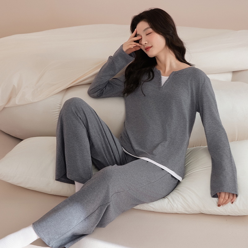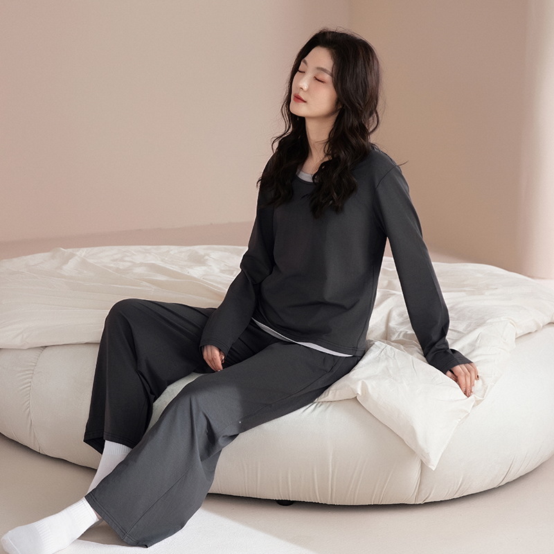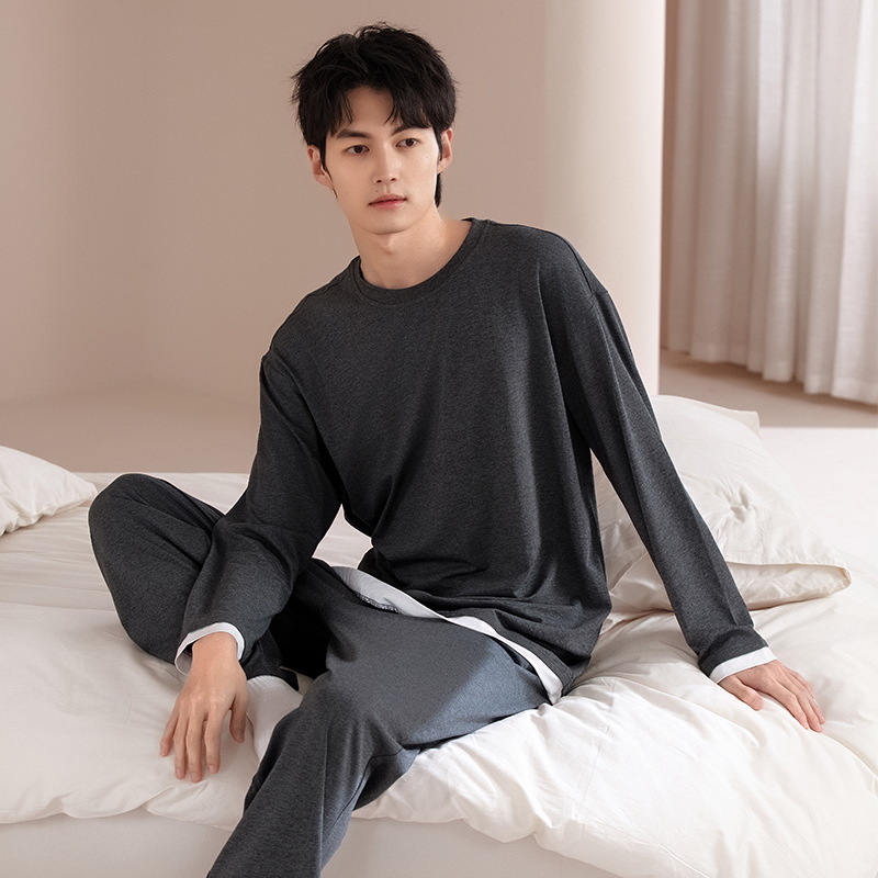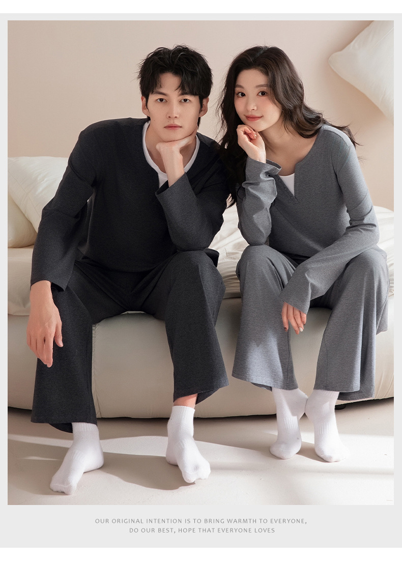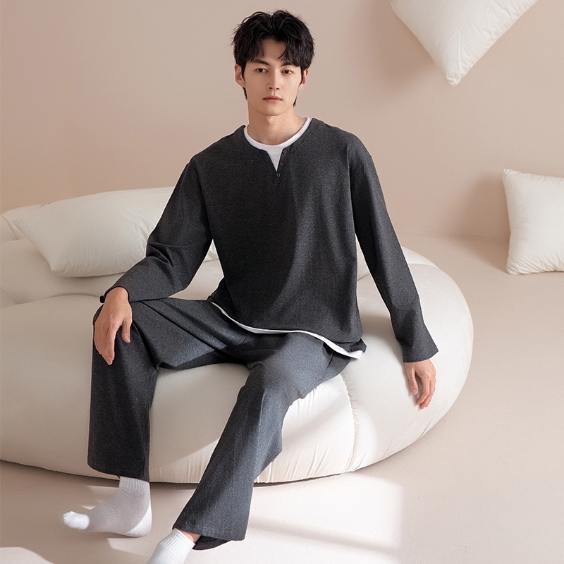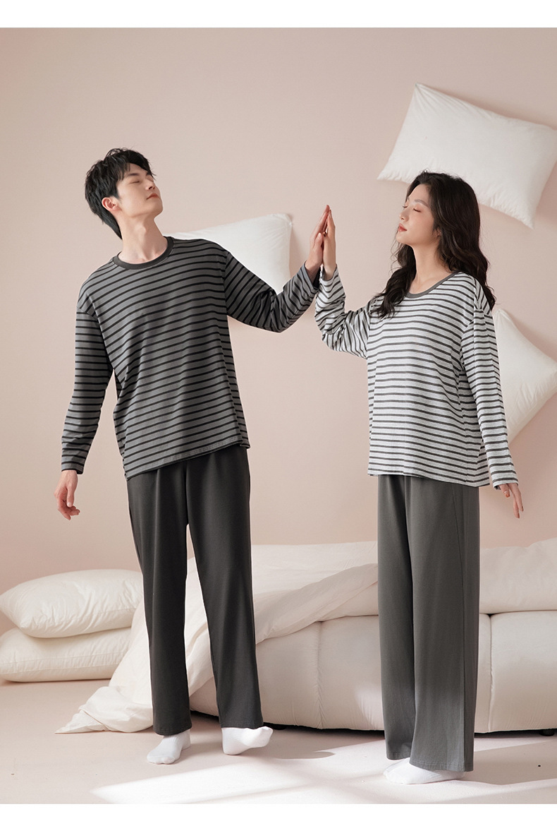 커플 잠옷, 봄 긴팔 순면, 외부 착용 가능, 여성용 페이크 투피스 홈복, 봄, 가을 캐주얼 심플 남성복스토어 가기