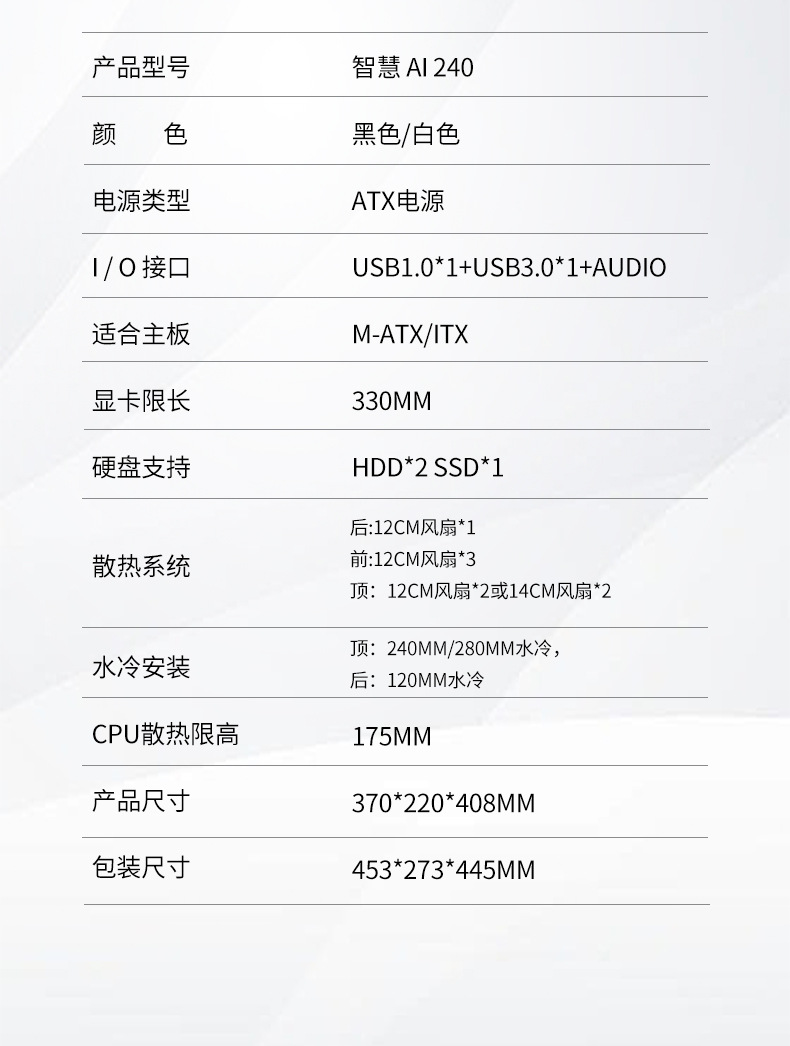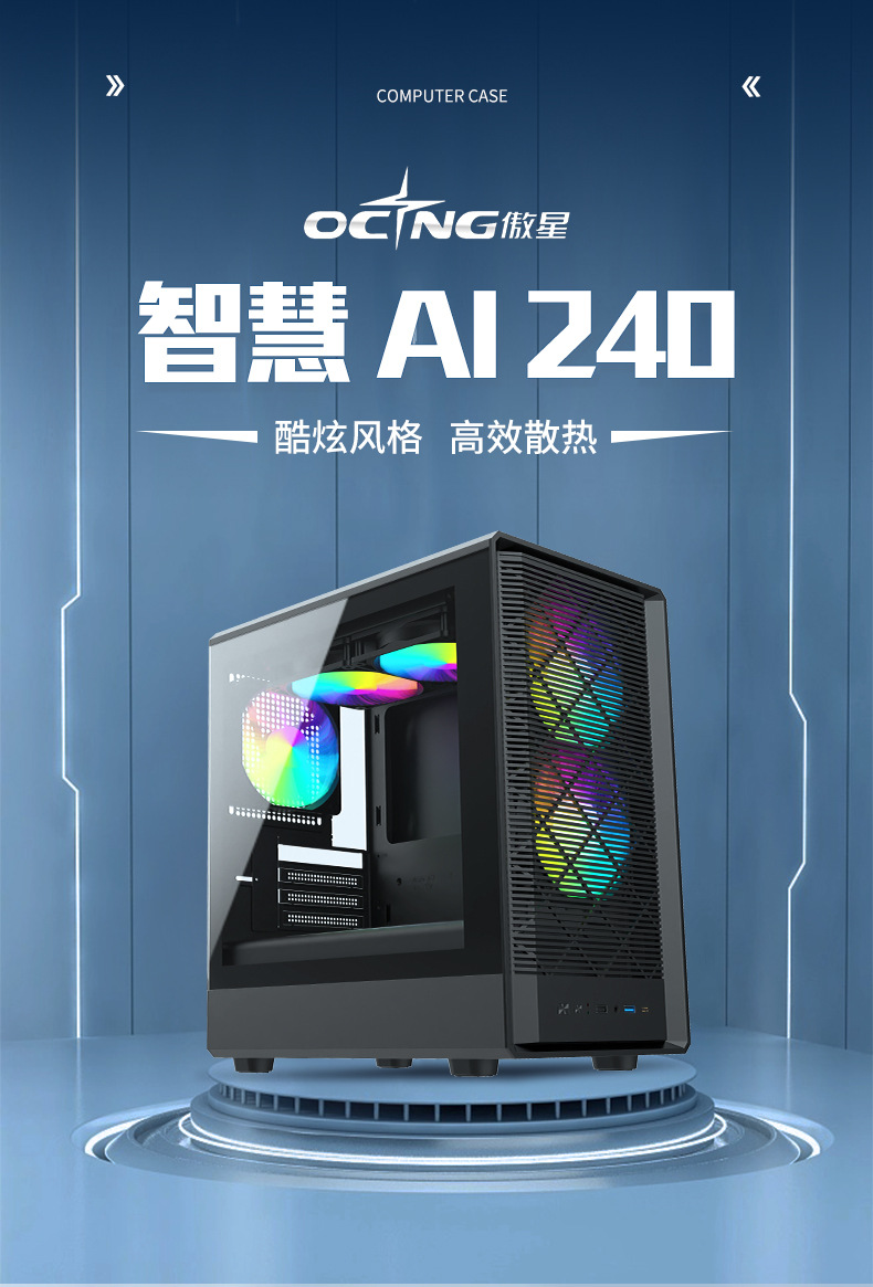 Aoxing OCNG 스마트 AI240 블랙 화이트 데스크탑 컴퓨터 케이스 ATX 전원 공급 장치 물 냉각 팬 냉각 도매스토어 가기