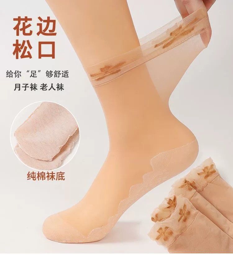 레이스 느슨한 양말 면화 밑바닥 미끄럼 방지 미드 튜브 실크 양말 달 양말 여름 얇은 어머니 양말 안티 걸기 실크 다리스토어 가기