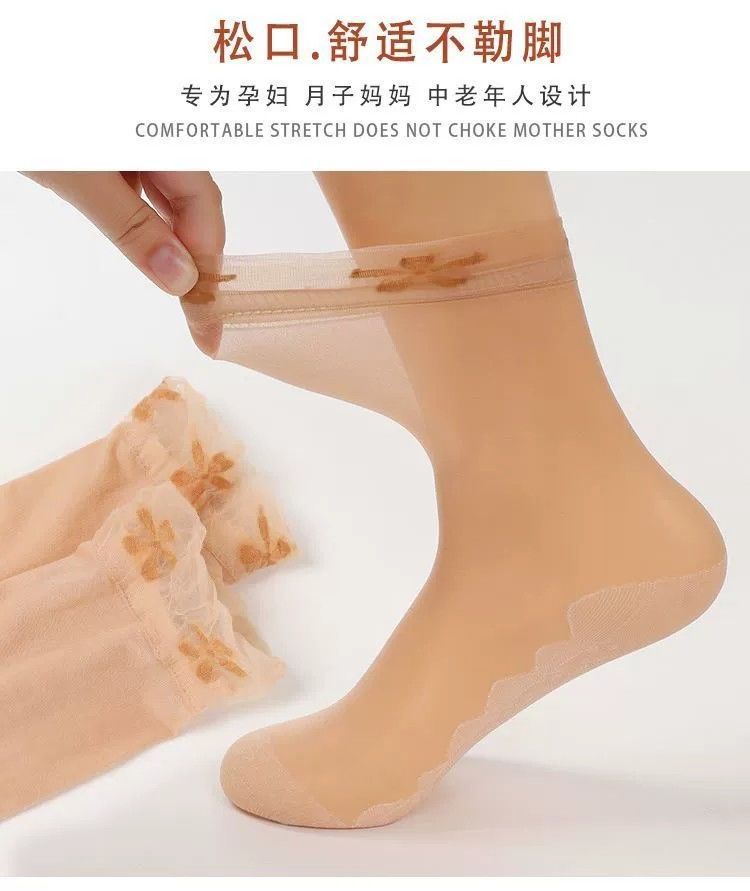 레이스 느슨한 양말 면화 밑바닥 미끄럼 방지 미드 튜브 실크 양말 달 양말 여름 얇은 어머니 양말 안티 걸기 실크 다리