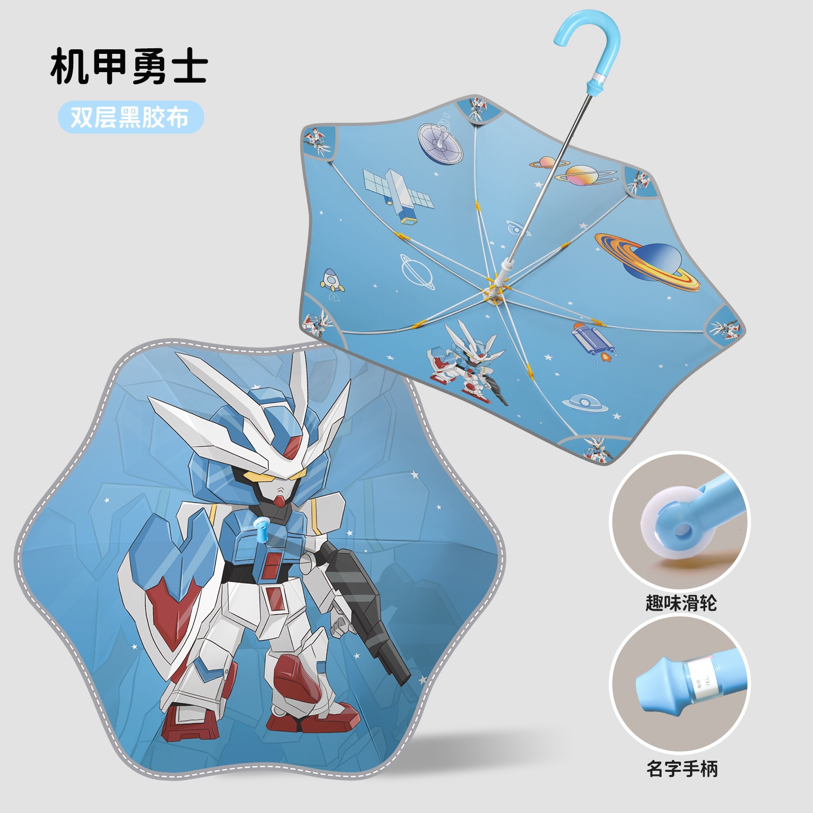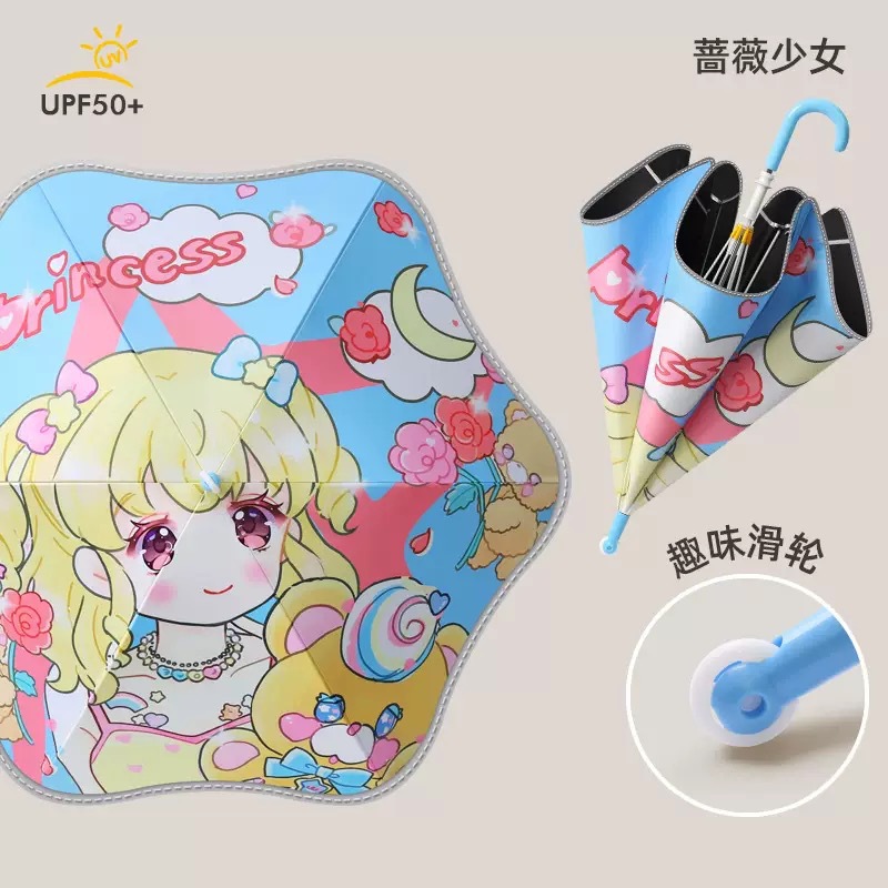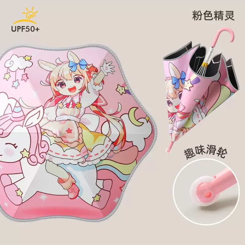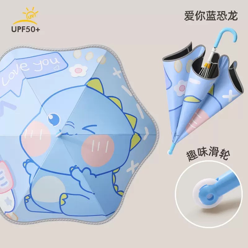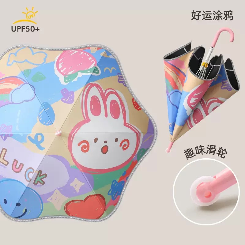 만화 창조적 인 풀리 안전 둥근 어린이 우산 맑고 비오는 이중 사용 스트레이트 로드 우산 어린이 및 초등학생을위한스토어 가기