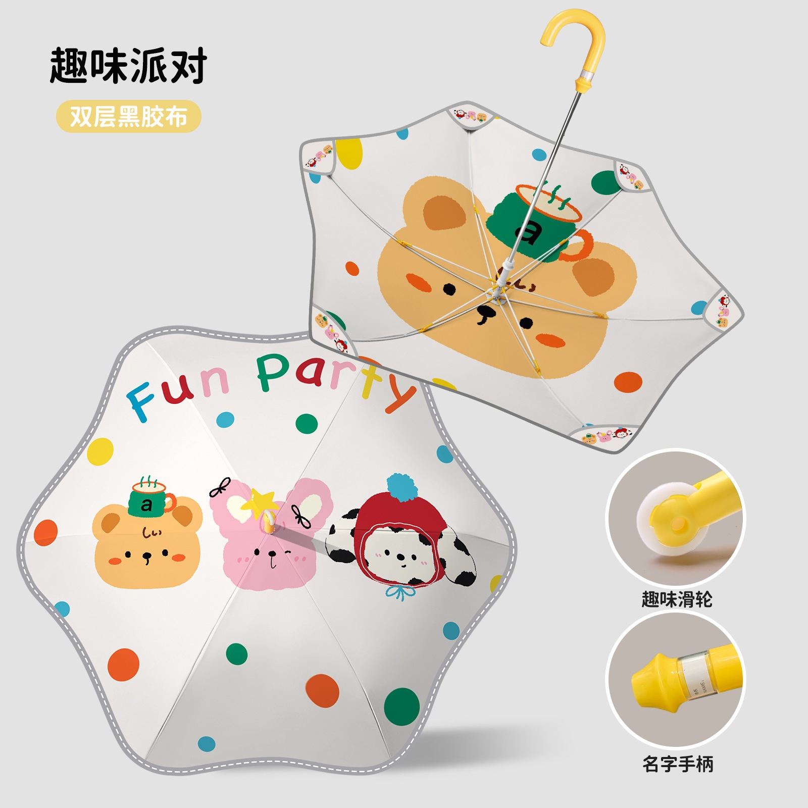 만화 창조적 인 풀리 안전 둥근 어린이 우산 맑고 비오는 이중 사용 스트레이트 로드 우산 어린이 및 초등학생을위한