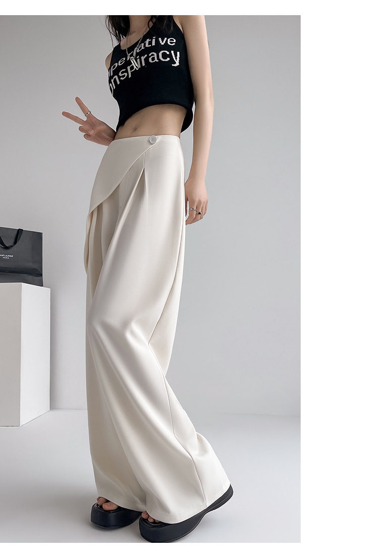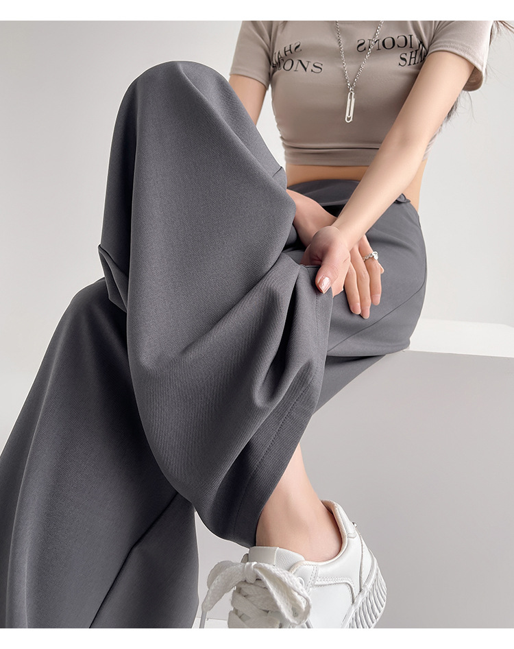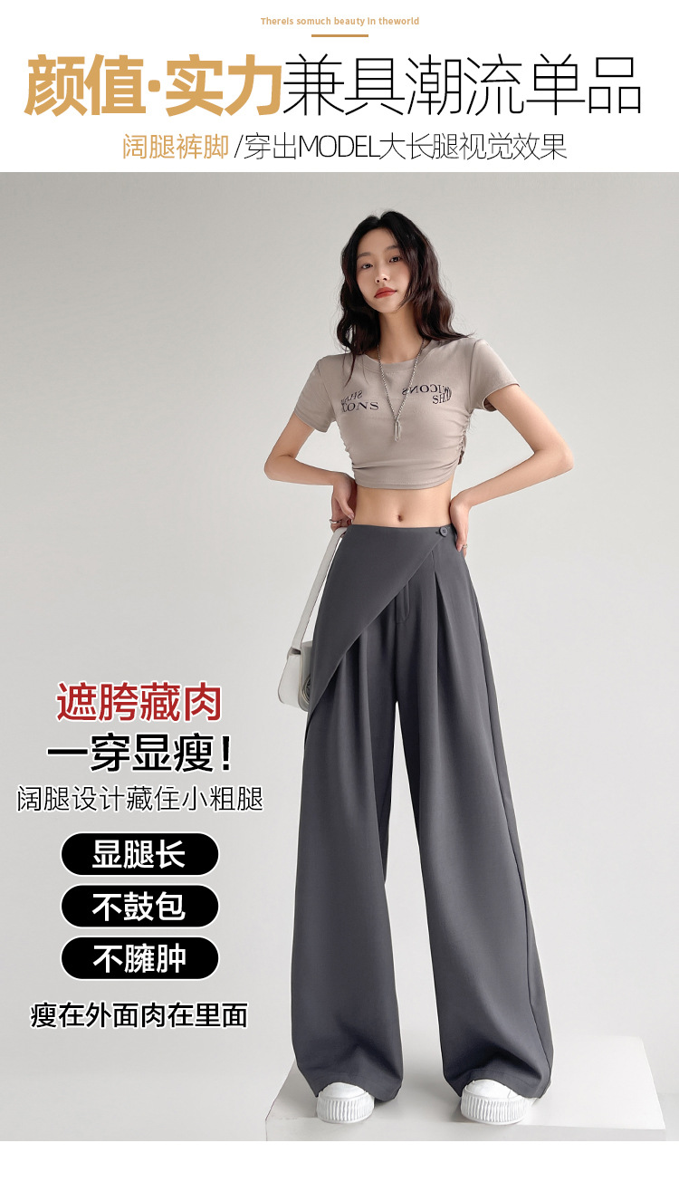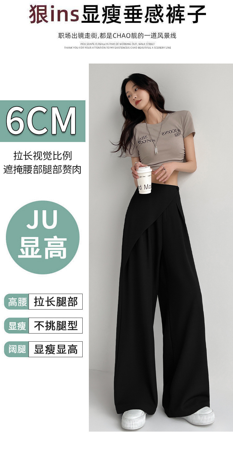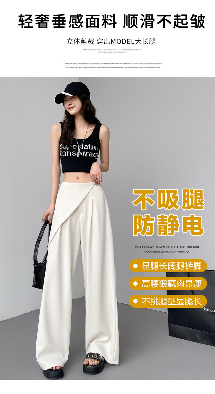 실제 샷 하이 엔드 투피스 세트 와이드 레그 바지 여성의 하이 허리 디자인 감각 기질 스트레이트 캐주얼 세트 플로어 바지스토어 가기