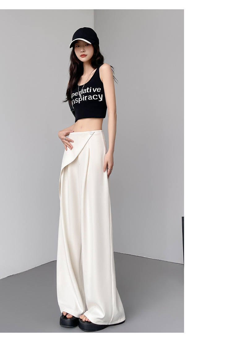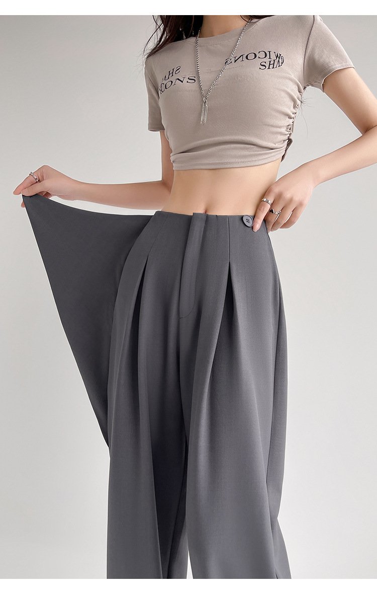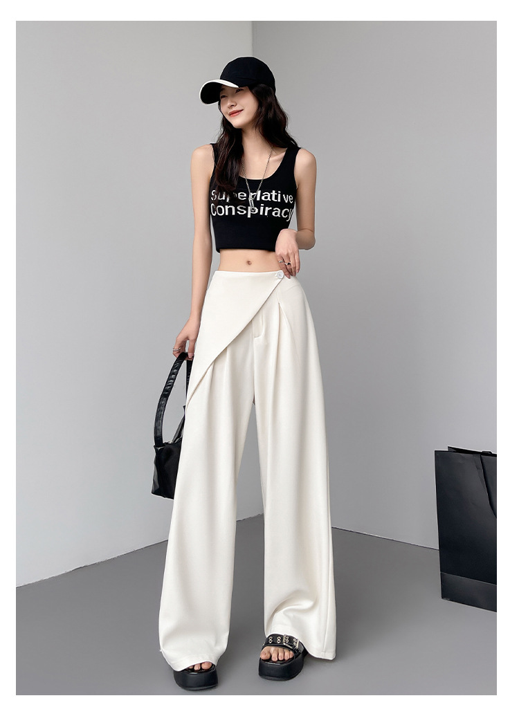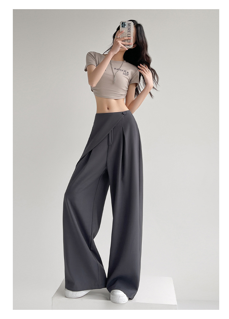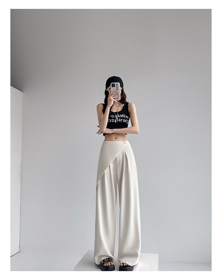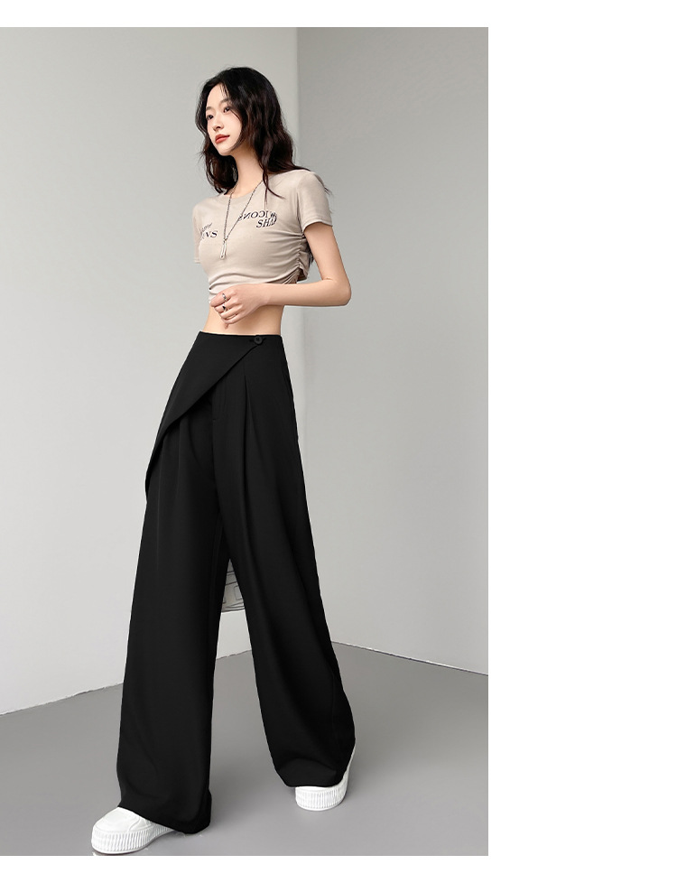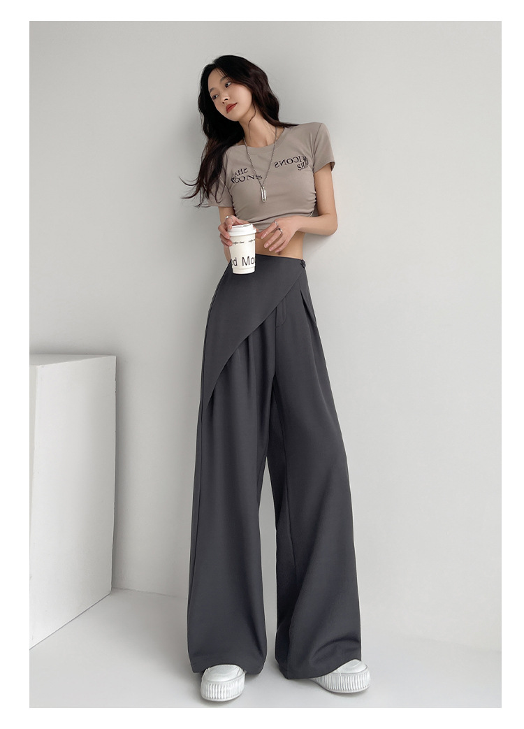 실제 샷 하이 엔드 투피스 세트 와이드 레그 바지 여성의 하이 허리 디자인 감각 기질 스트레이트 캐주얼 세트 플로어 바지스토어 가기