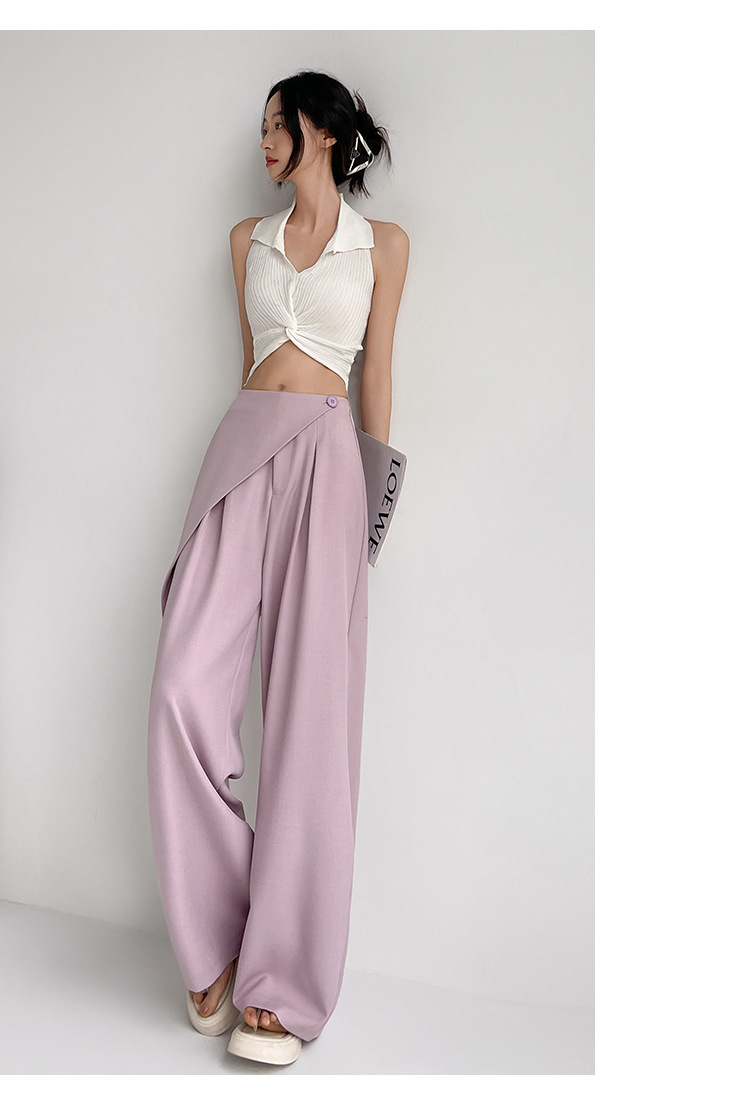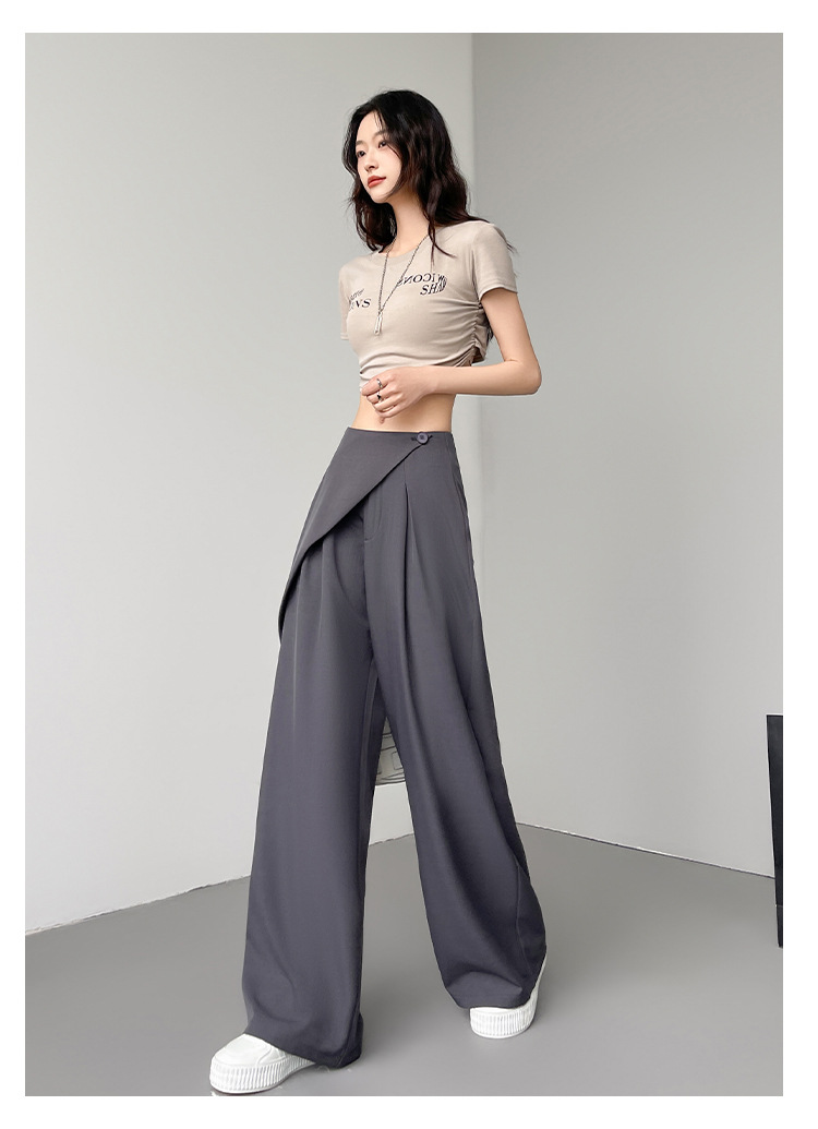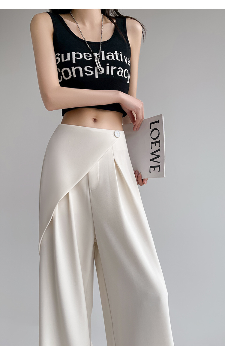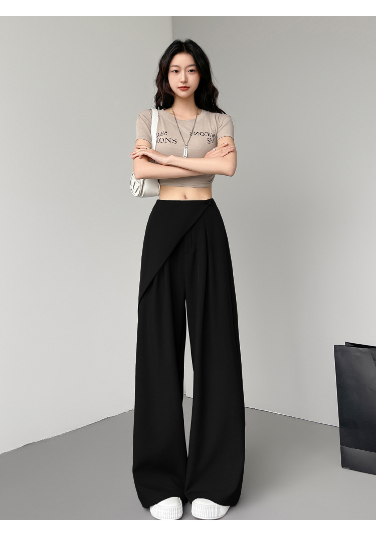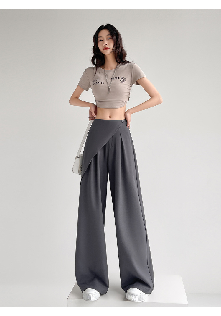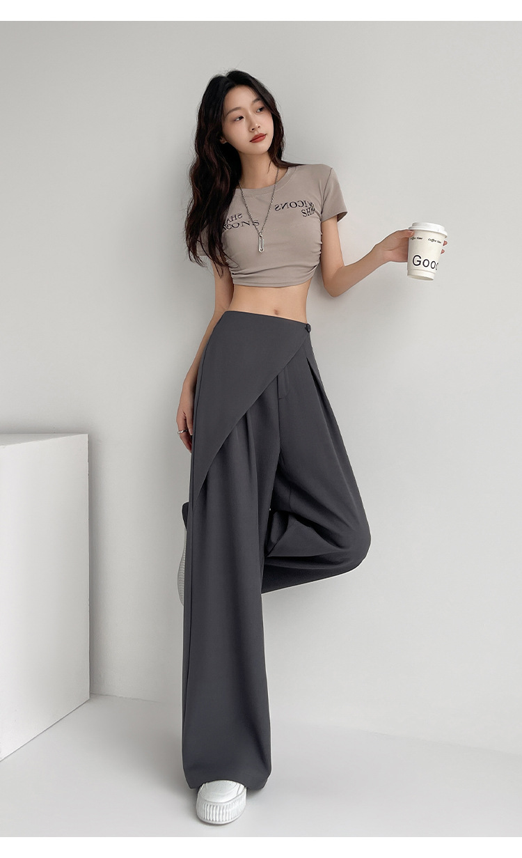실제 샷 하이 엔드 투피스 세트 와이드 레그 바지 여성의 하이 허리 디자인 감각 기질 스트레이트 캐주얼 세트 플로어 바지스토어 가기