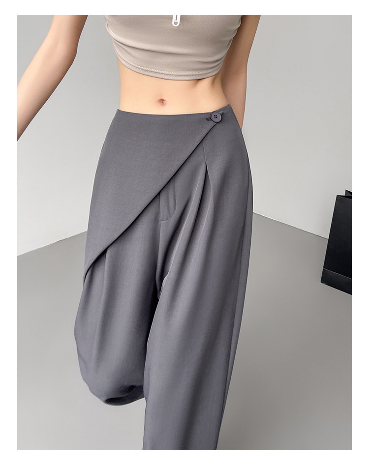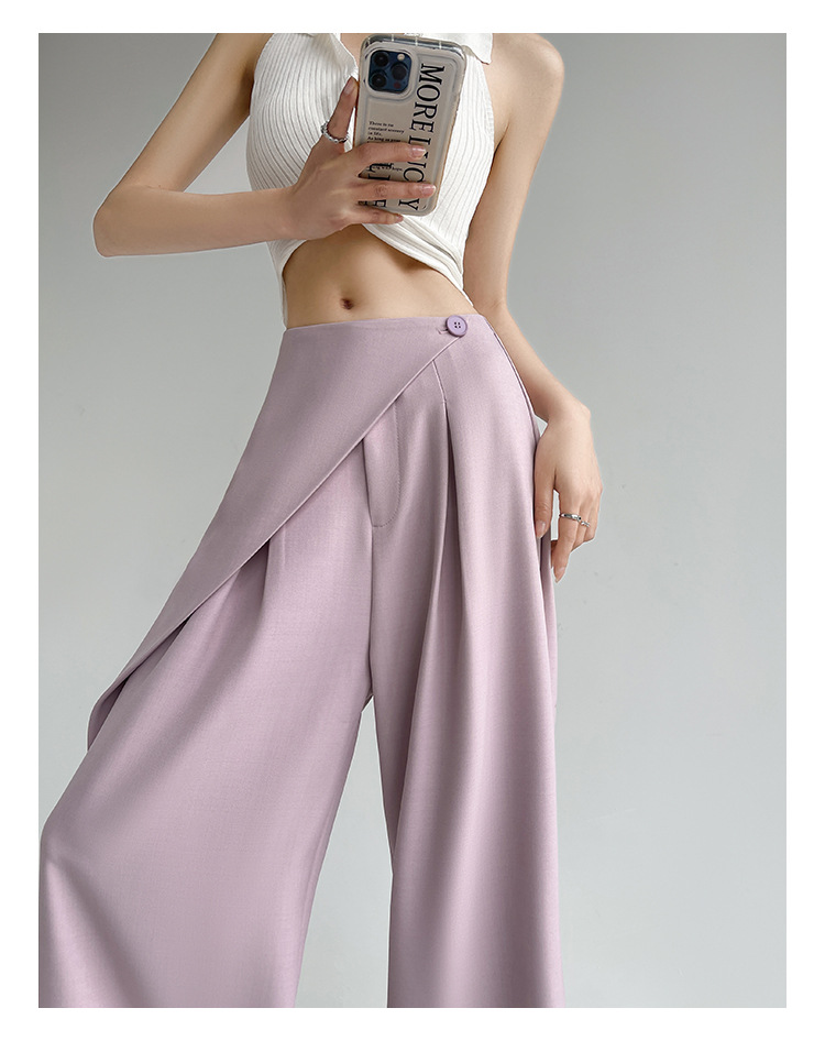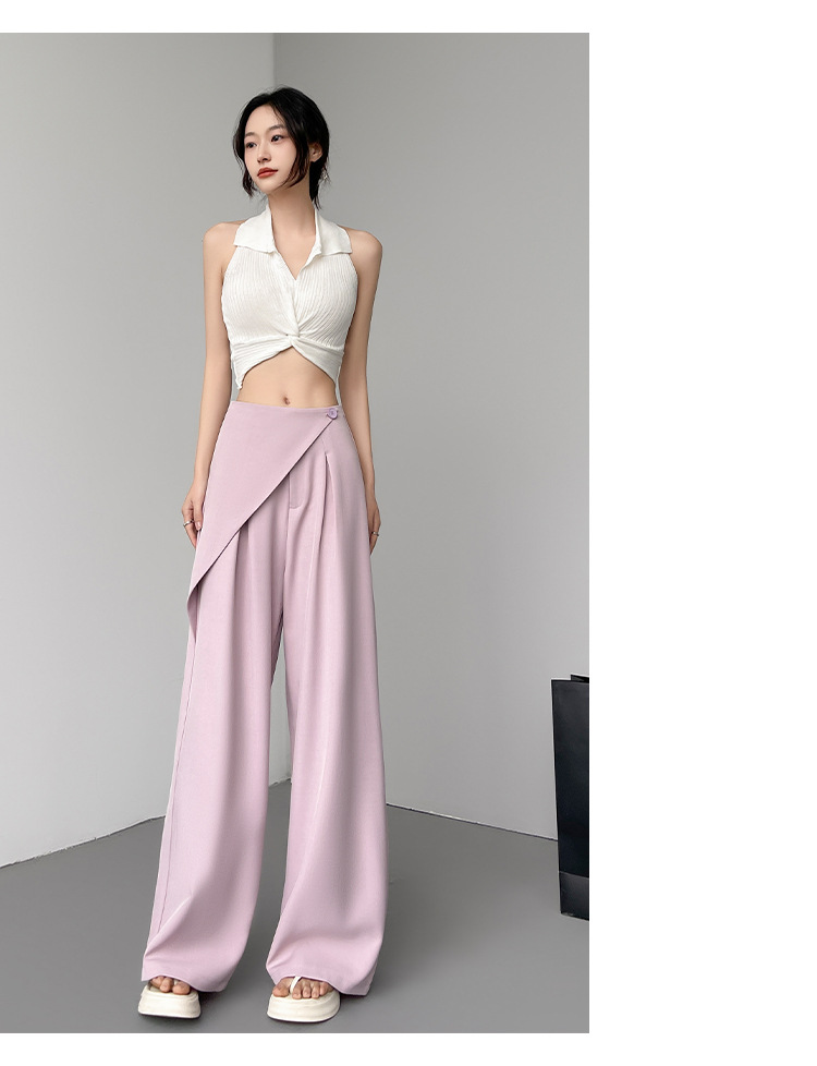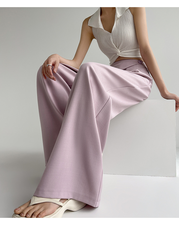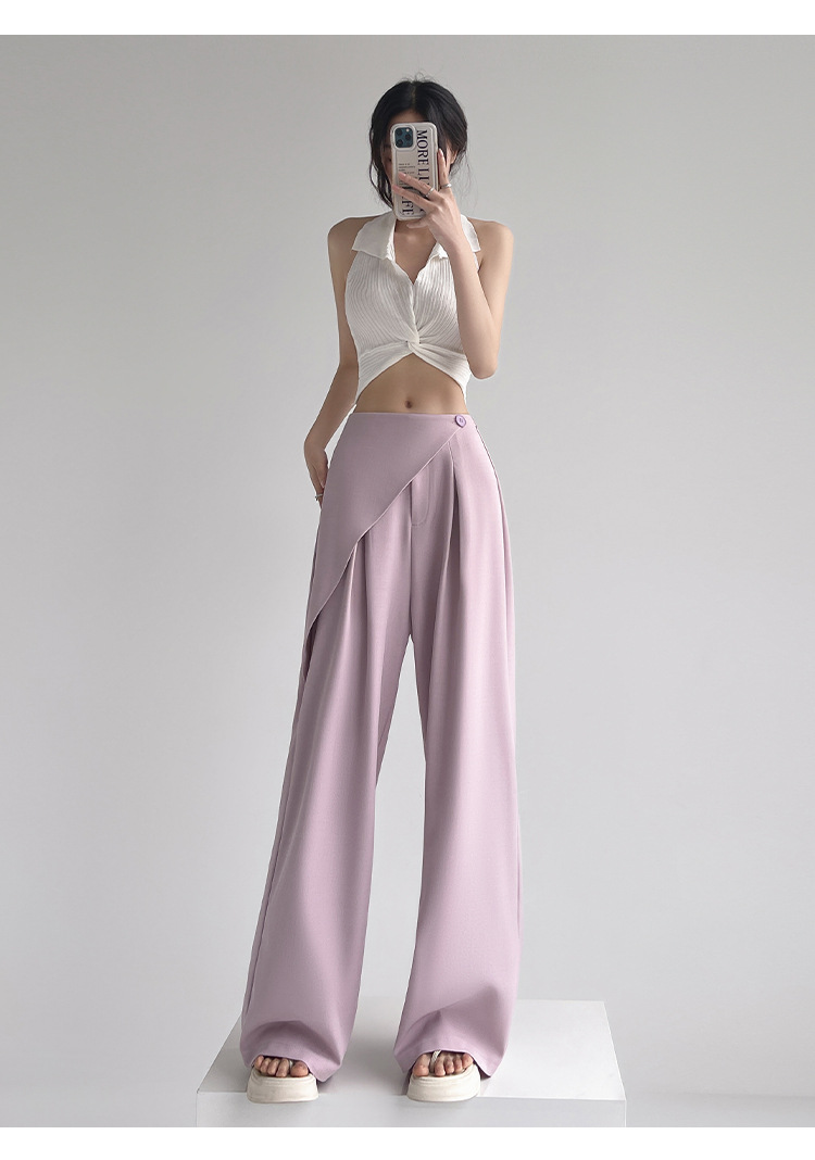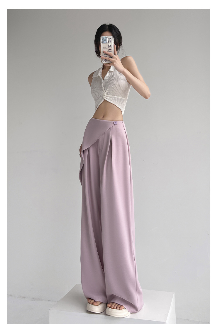 실제 샷 하이 엔드 투피스 세트 와이드 레그 바지 여성의 하이 허리 디자인 감각 기질 스트레이트 캐주얼 세트 플로어 바지스토어 가기