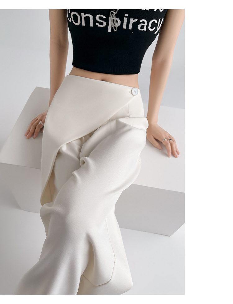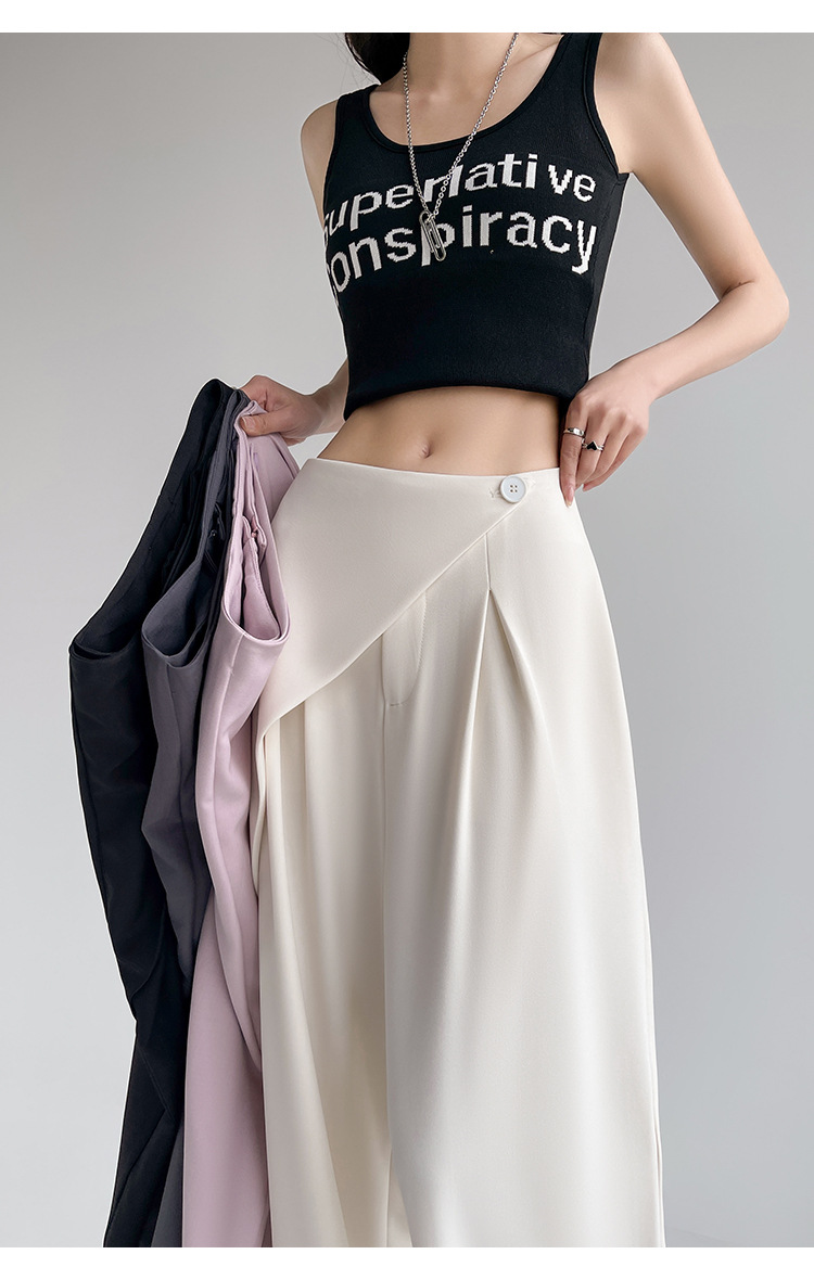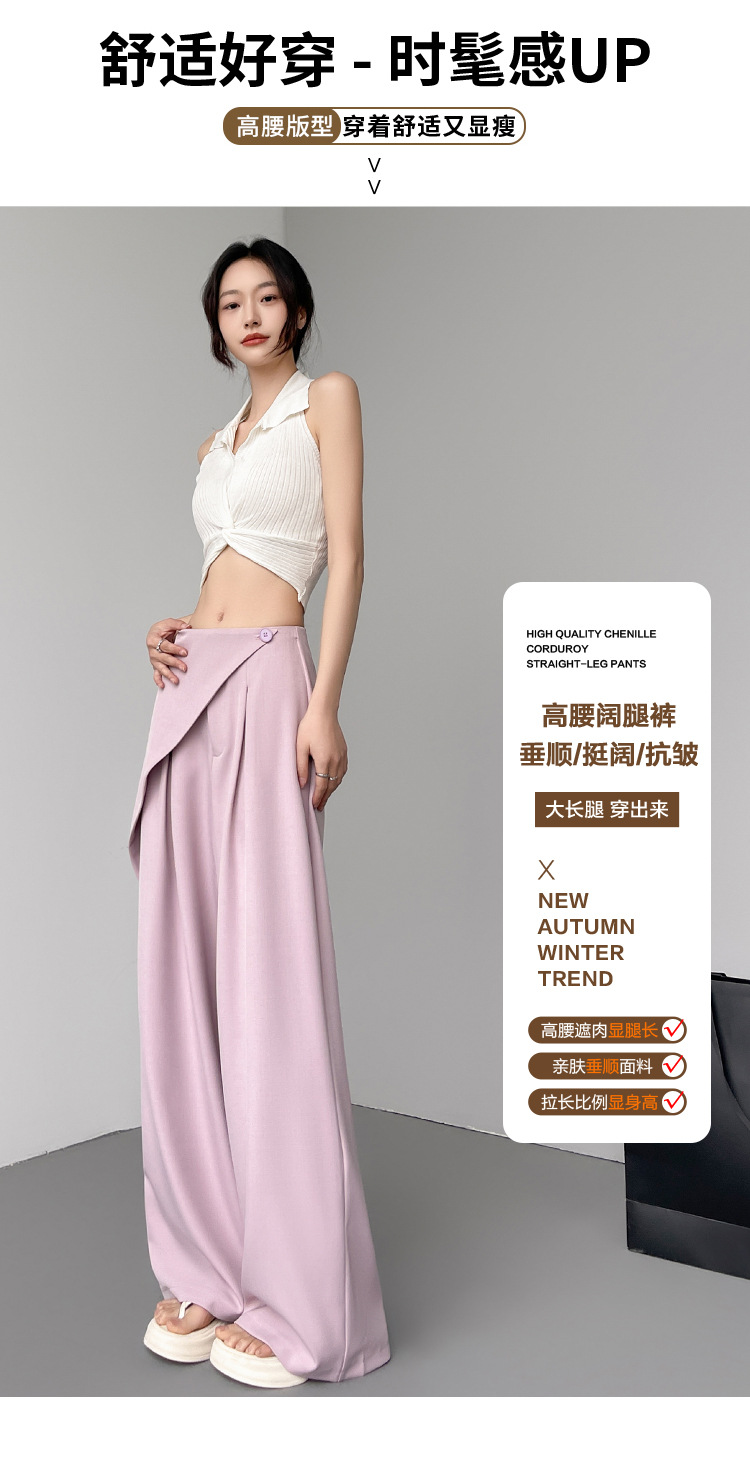 실제 샷 하이 엔드 투피스 세트 와이드 레그 바지 여성의 하이 허리 디자인 감각 기질 스트레이트 캐주얼 세트 플로어 바지