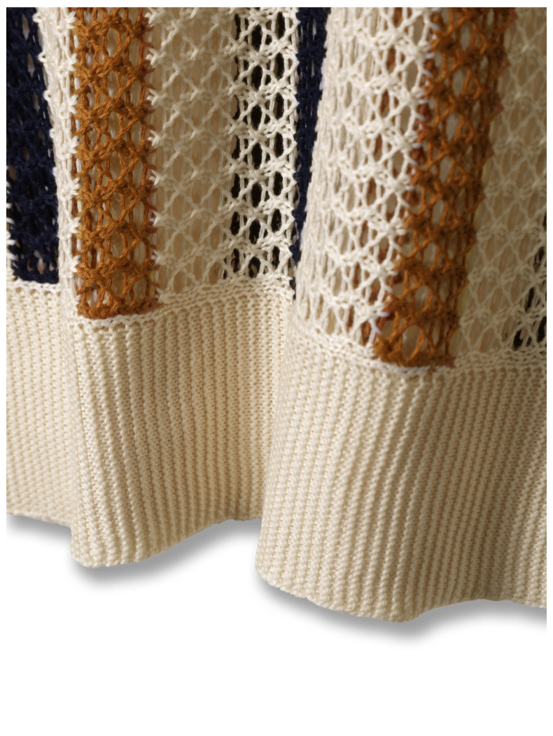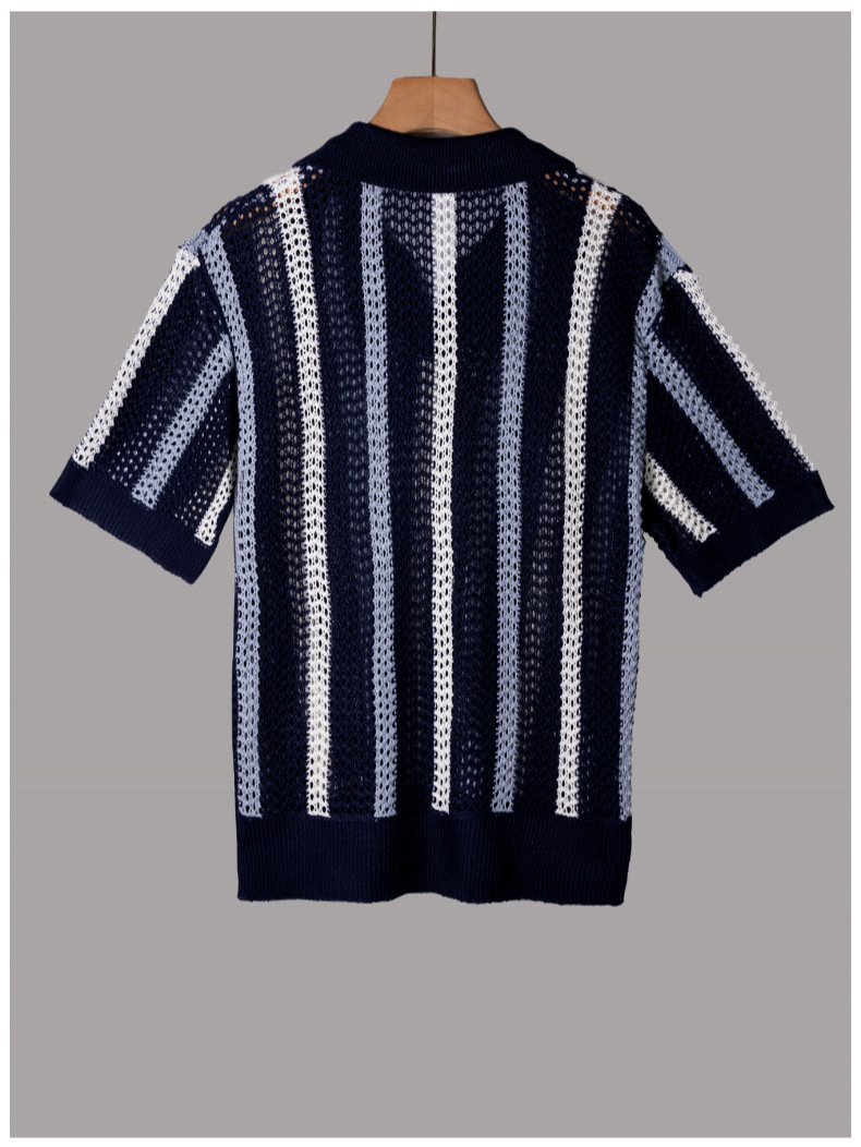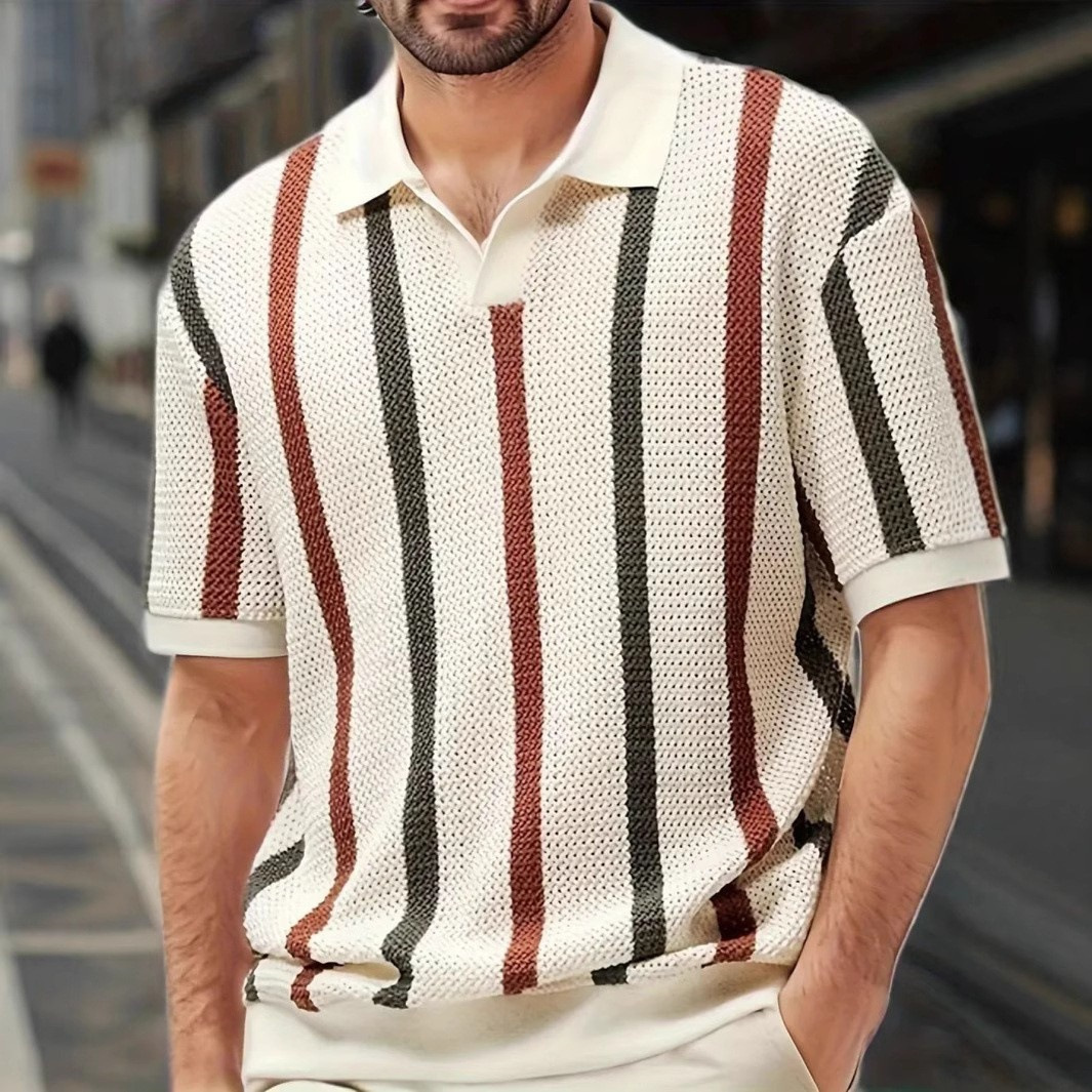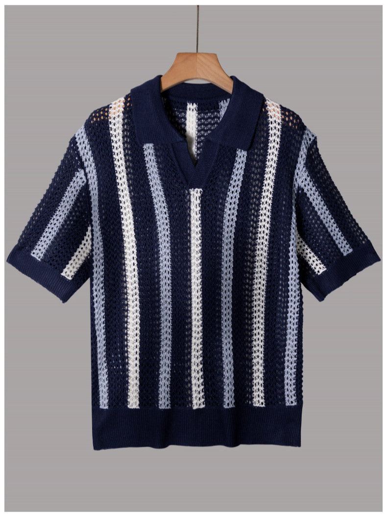 유럽과 미국의 국경 남성 여름 반팔 티셔츠 간단한 디자이너 기하학적 색 블록 줄무늬 크루 넥 스웨터 탑