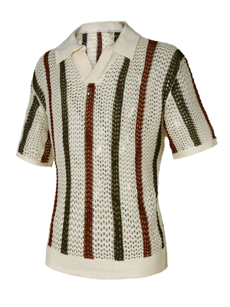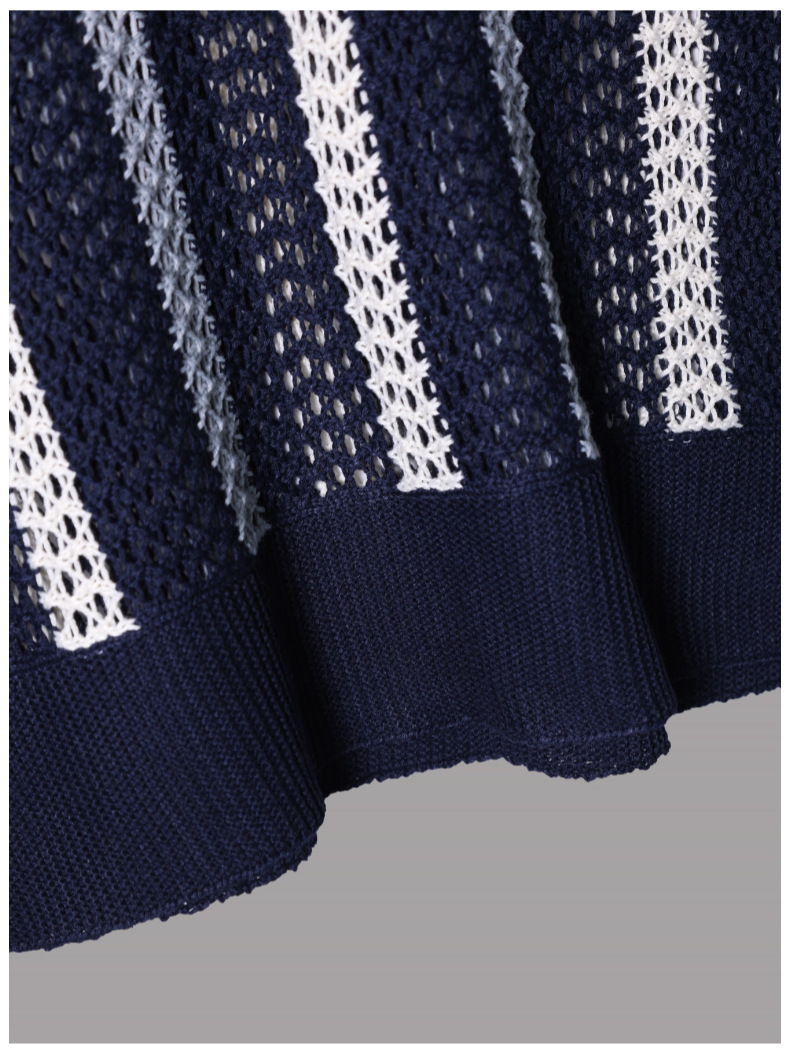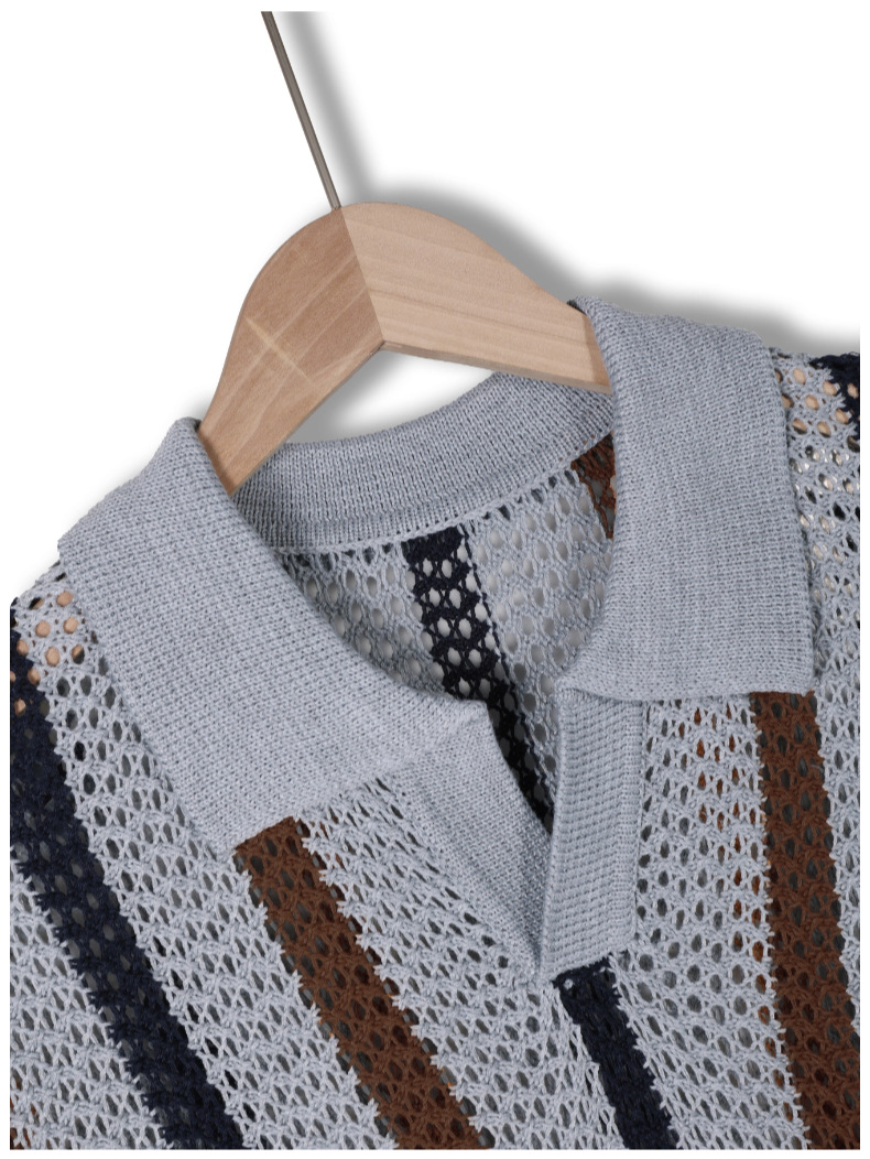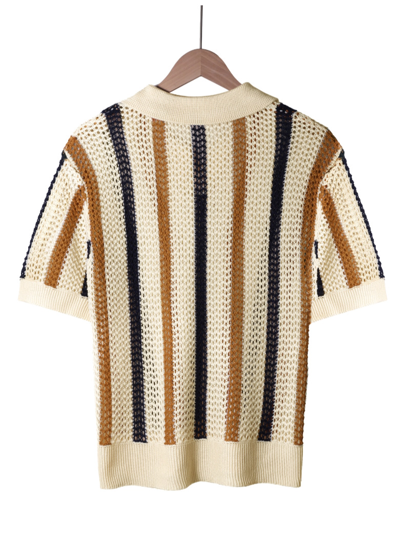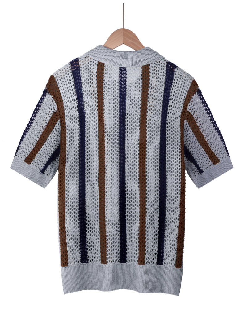 유럽과 미국의 국경 남성 여름 반팔 티셔츠 간단한 디자이너 기하학적 색 블록 줄무늬 크루 넥 스웨터 탑