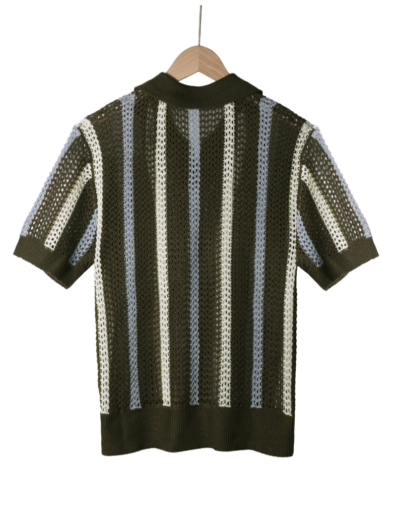 유럽과 미국의 국경 남성 여름 반팔 티셔츠 간단한 디자이너 기하학적 색 블록 줄무늬 크루 넥 스웨터 탑스토어 가기