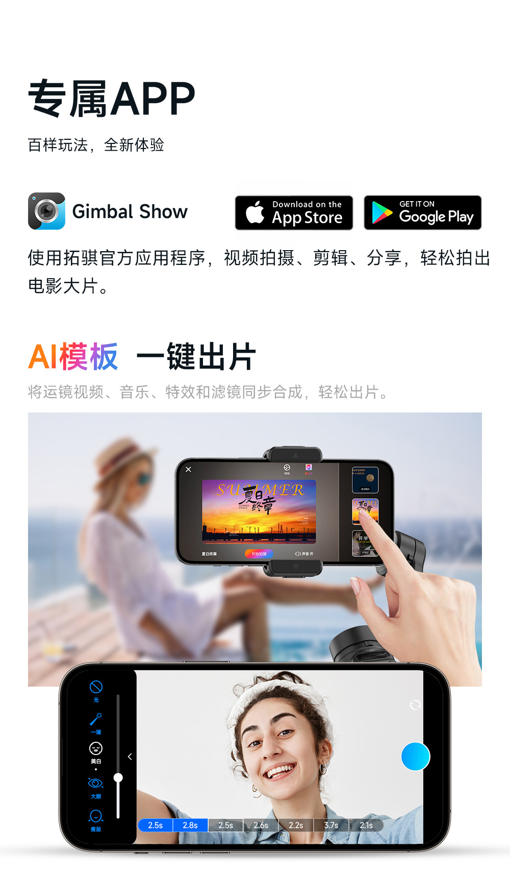 M02 안정기 휴대폰 손떨림 방지 휴대용 짐벌 3축 추적 분리형 원격 제어 필 라이트 Ai 카메라스토어 가기