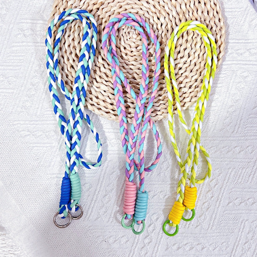 긴 휴대 전화 다시 클립 크로스 바디 끈 수제 브레이드 로프 조정 가능한 등 교수형 목 배낭 물 컵 교수형 체인