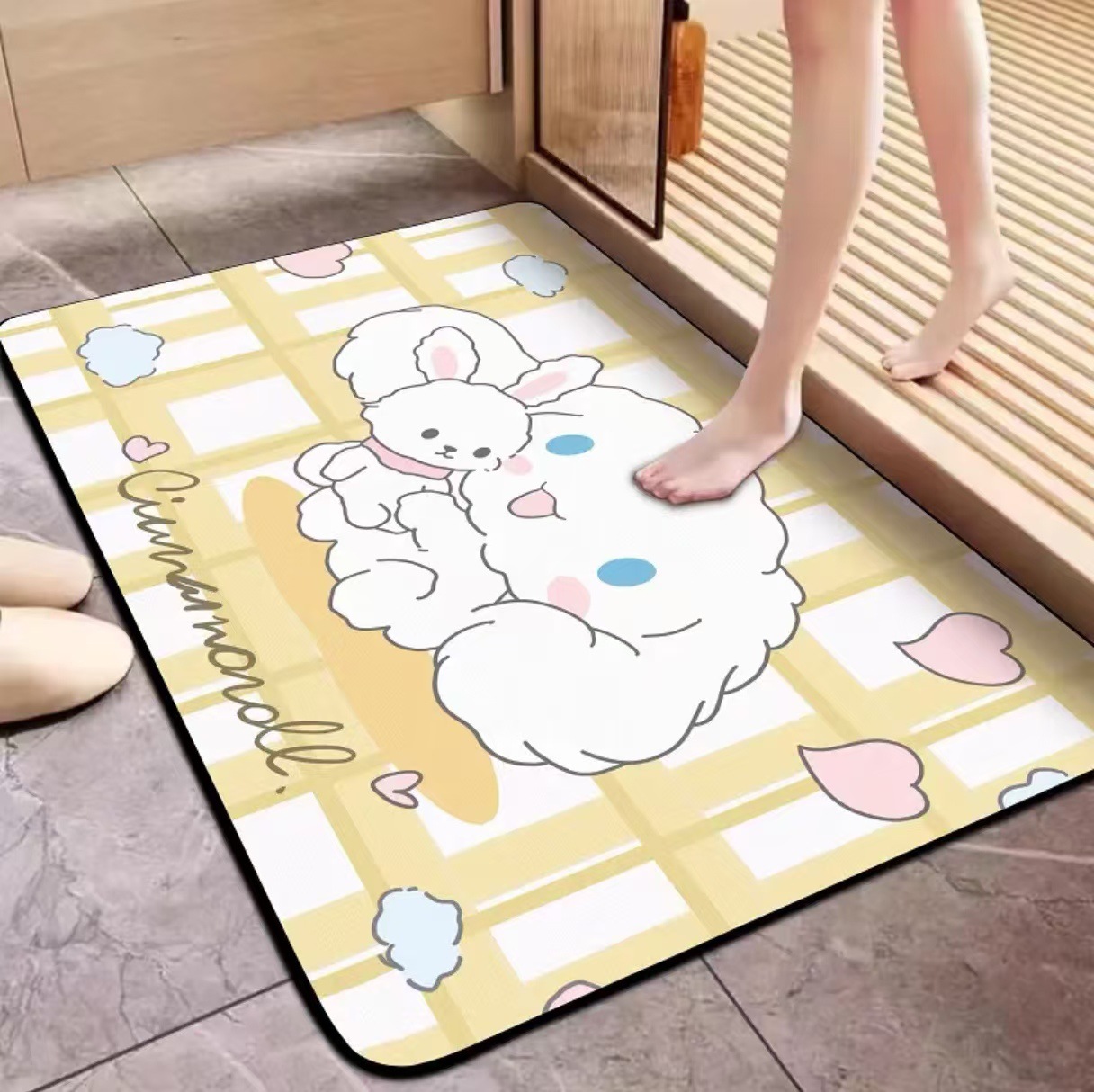 만화 Diatom 진흙 바닥 매트 가정용 욕실 바닥 매트 귀여운 화장실 물 흡수성 비 슬립 발 매트 입구 문 매트스토어 가기