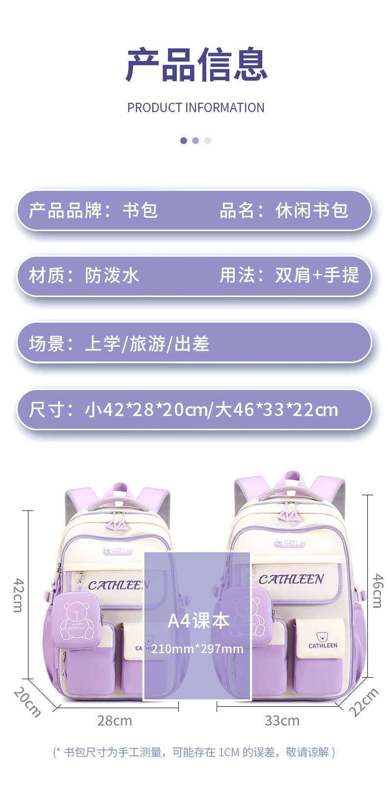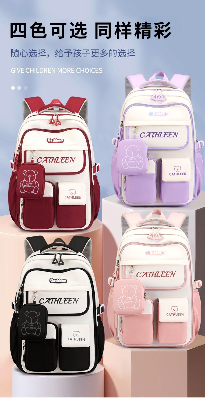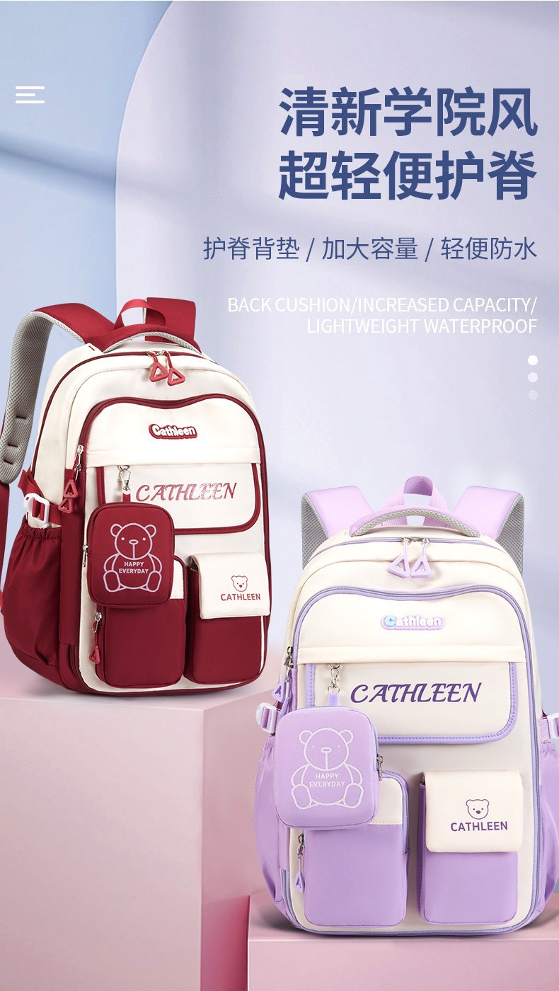 학생 스쿨백 여성 1-3-6 학년 가벼운 소녀 어린이 귀여운 중학교 야외 배낭 대용량