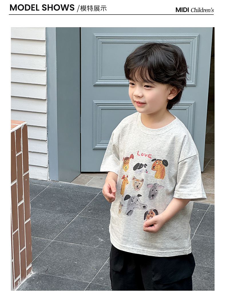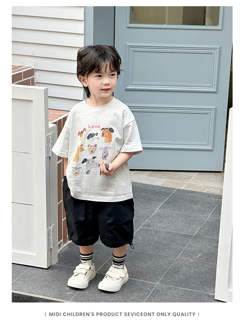 남자들의 여름 만화 인쇄 티셔츠 2025 새로운 어린이 풀오버 더블 원사 무거운 무게 반팔 Huzhou Zhili 아동복스토어 가기