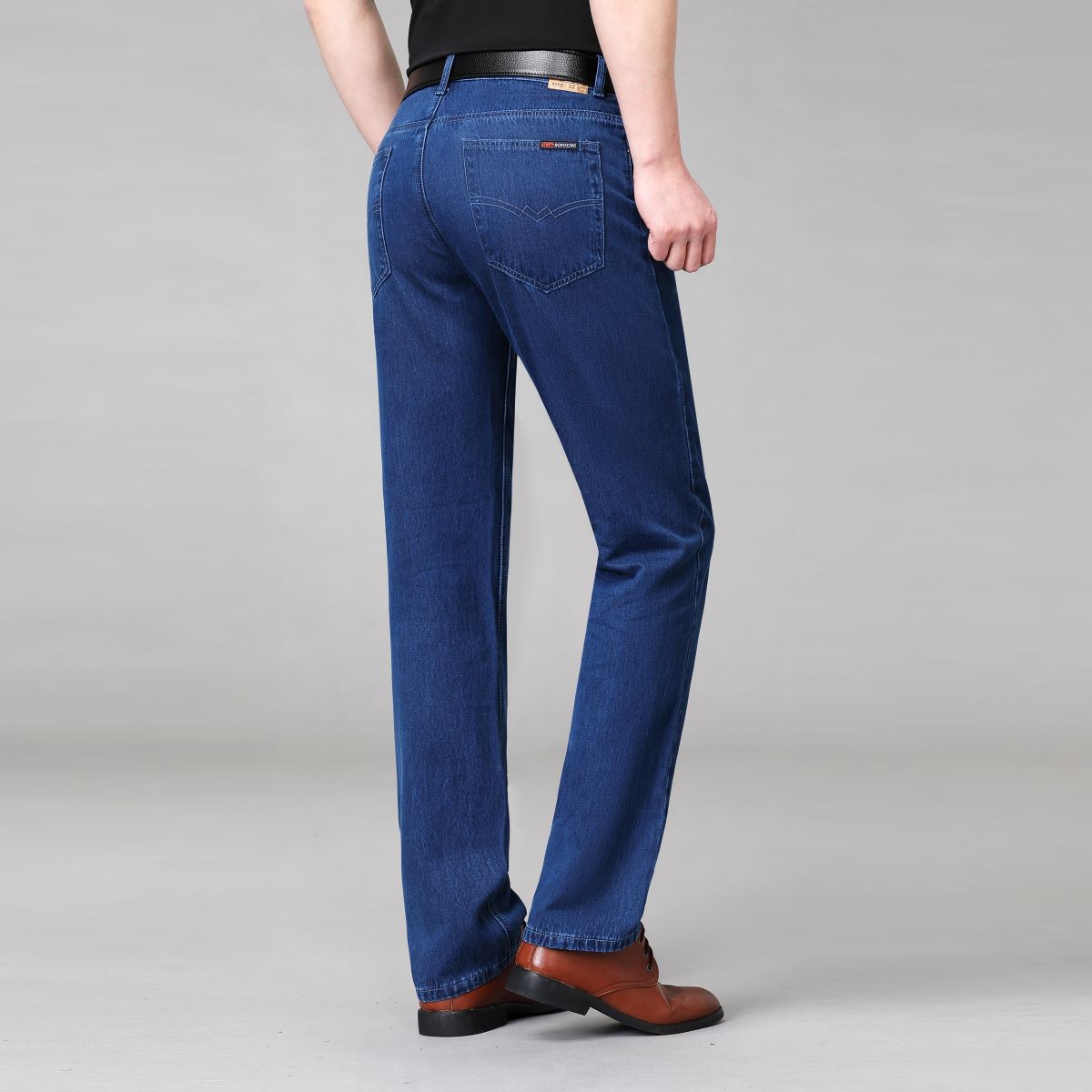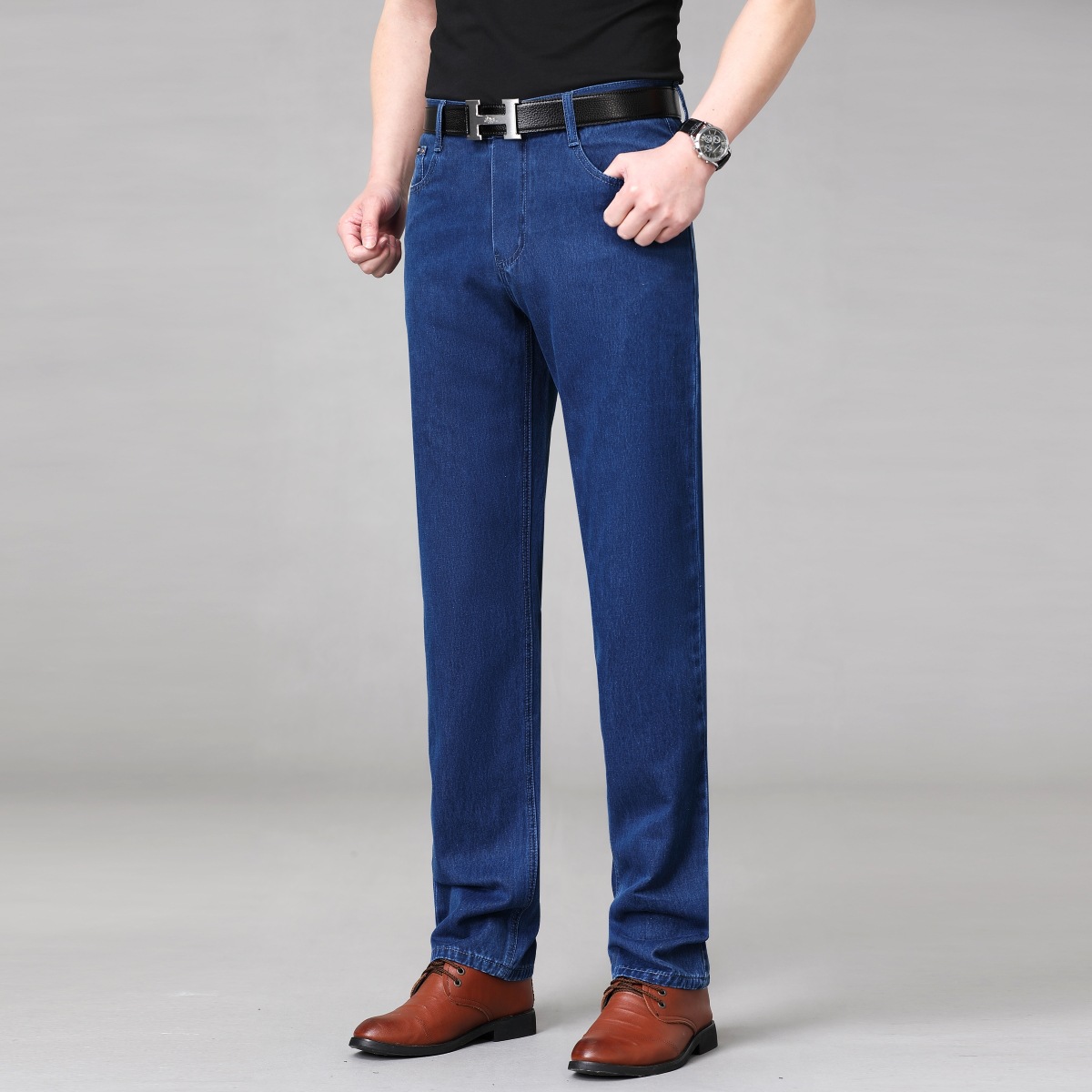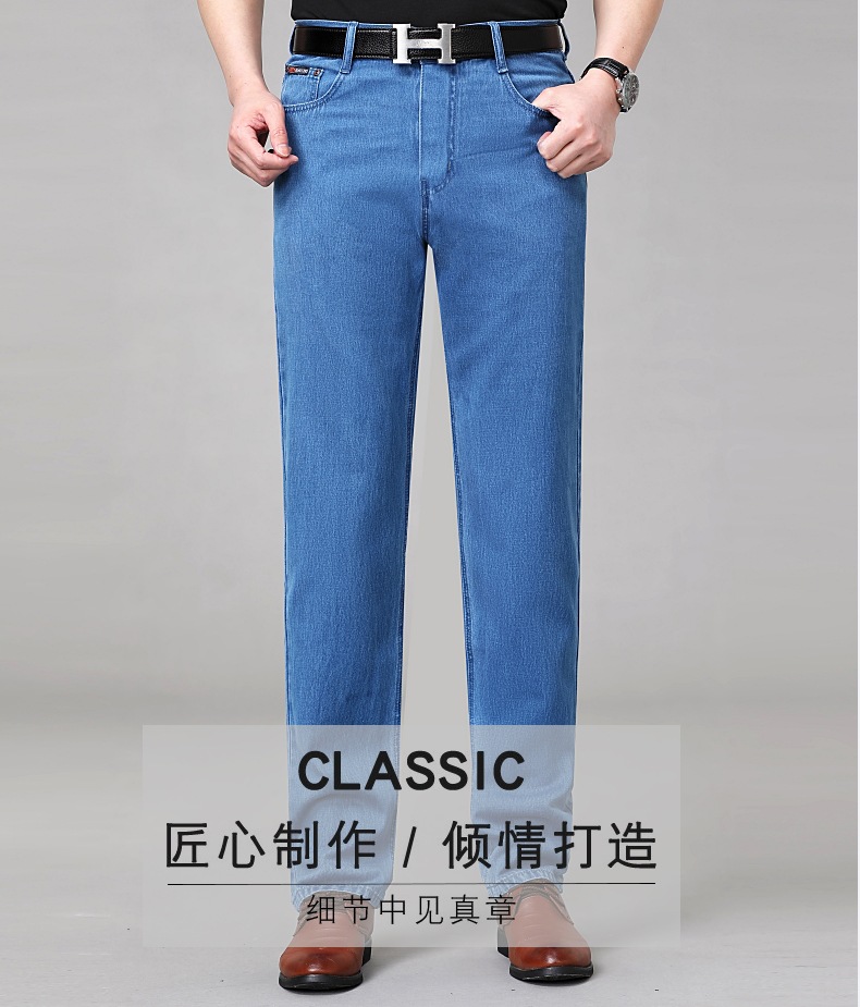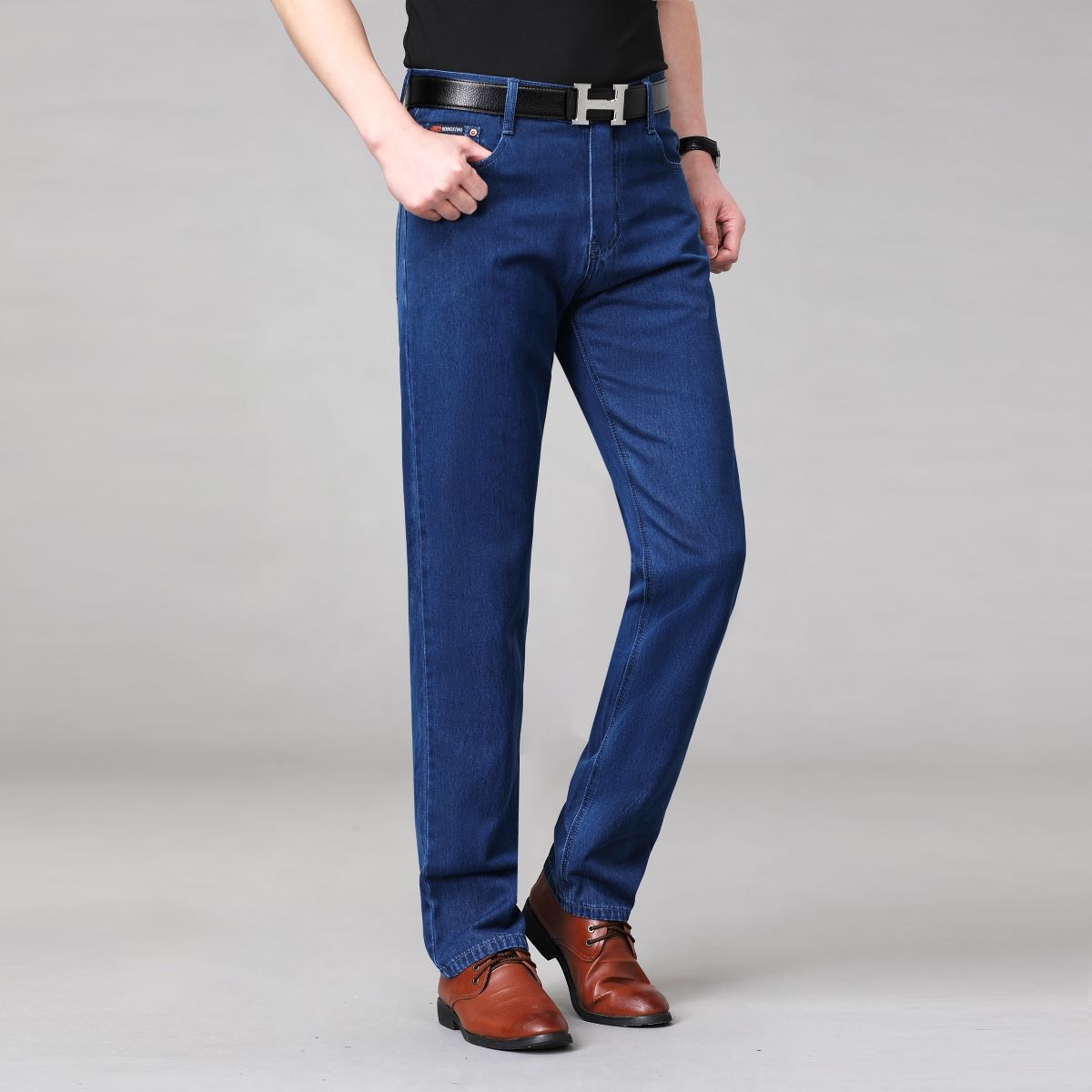 정품 고급 남성용 청바지 봄과 가을 중년 아빠 비즈니스 캐주얼 플러스 사이즈 얇은 스트레이트 바지