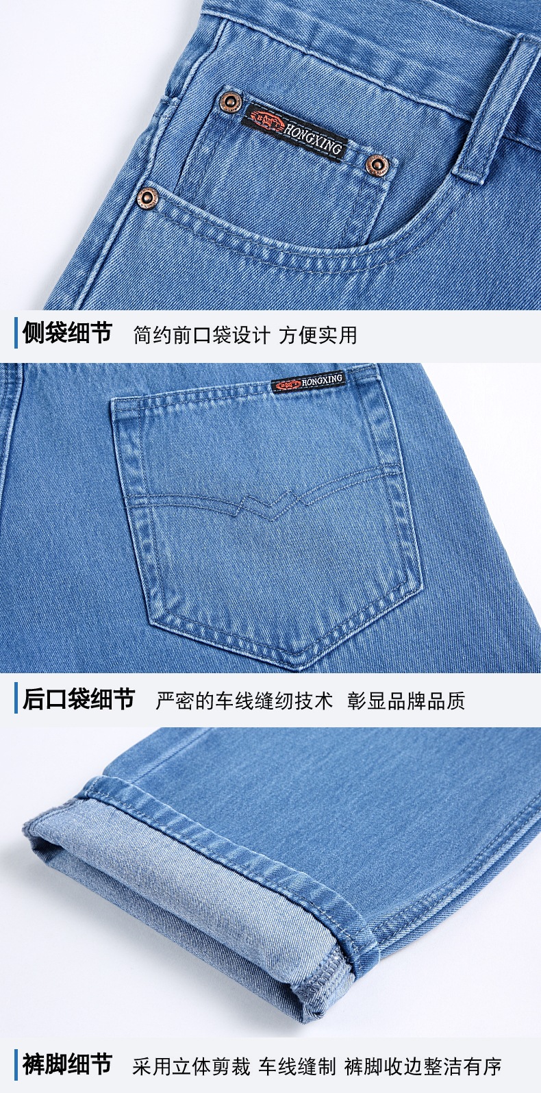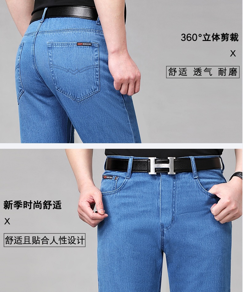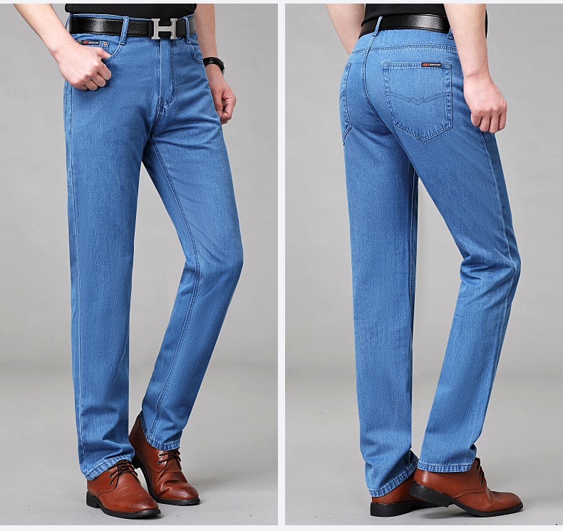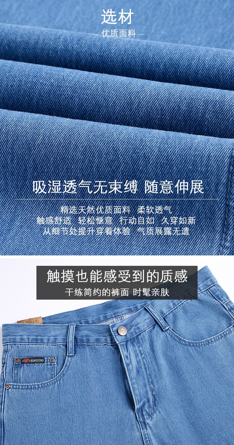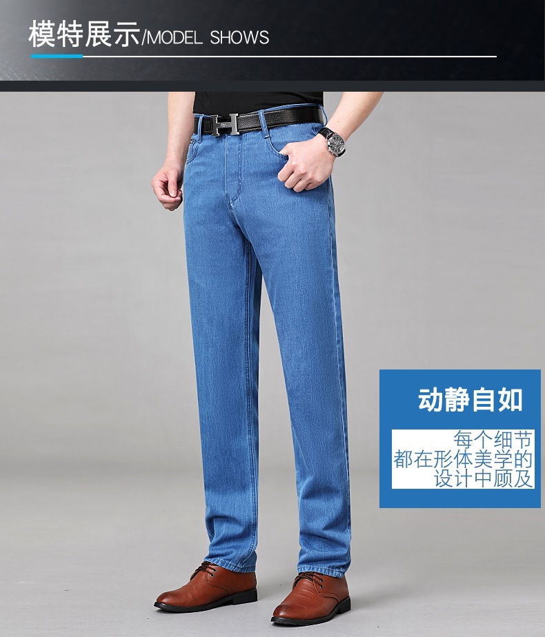 정품 고급 남성용 청바지 봄과 가을 중년 아빠 비즈니스 캐주얼 플러스 사이즈 얇은 스트레이트 바지
