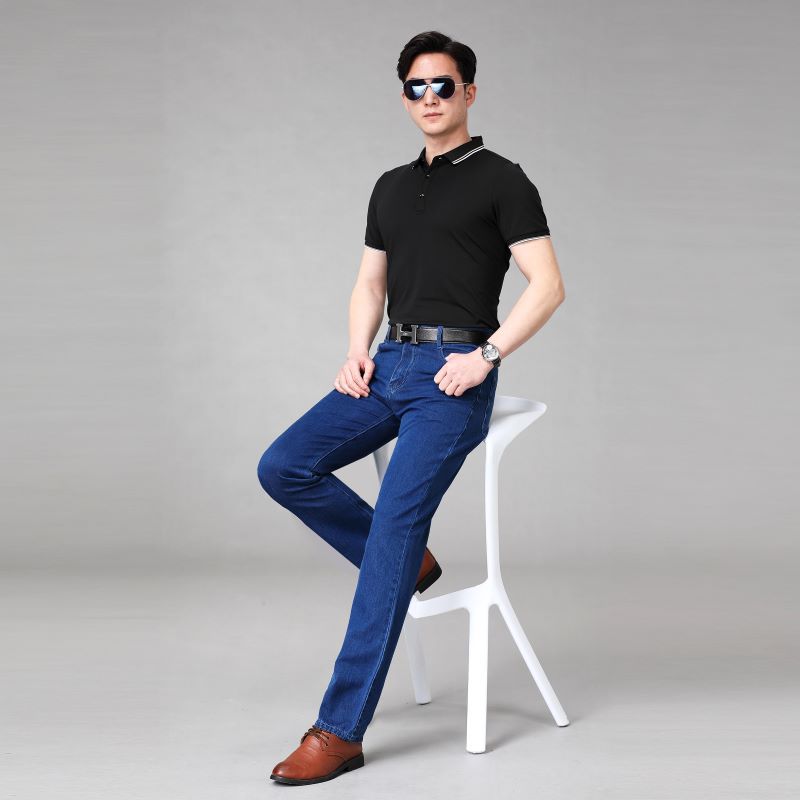 정품 고급 남성용 청바지 봄과 가을 중년 아빠 비즈니스 캐주얼 플러스 사이즈 얇은 스트레이트 바지스토어 가기