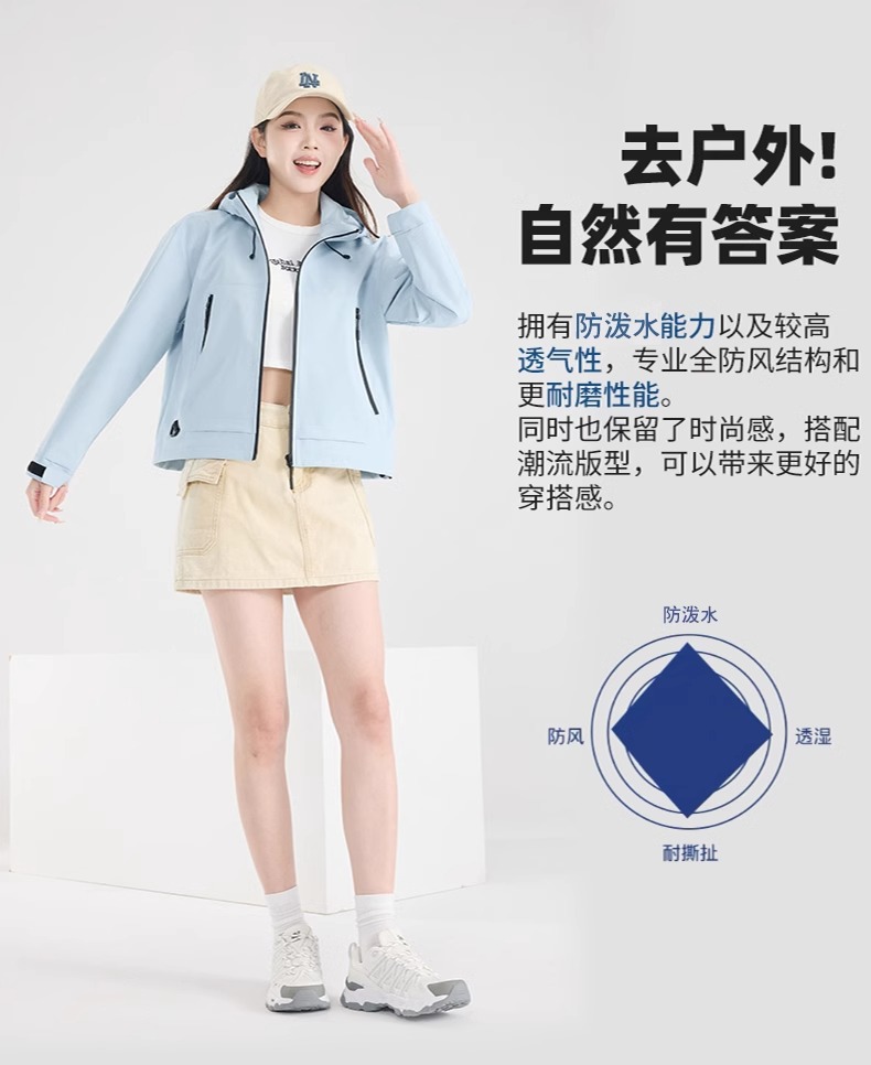 딱따구리 야외 충전 재킷 여성의 짧은 봄 새로운 방풍 등반 세트 트렌디 후드 자켓