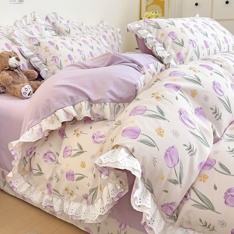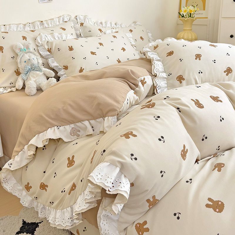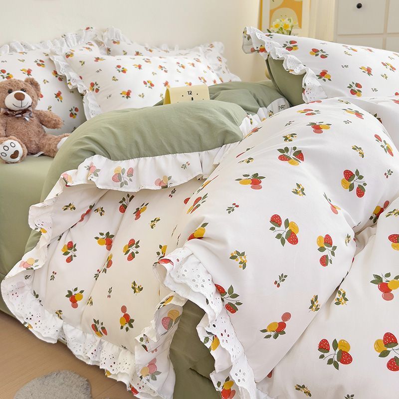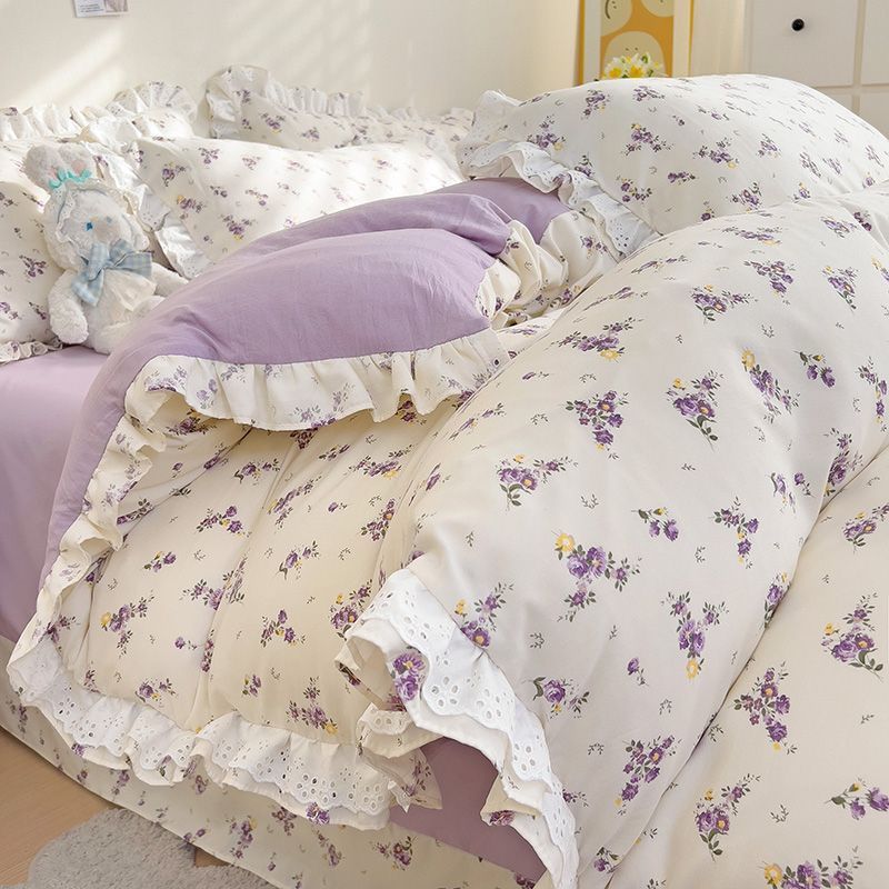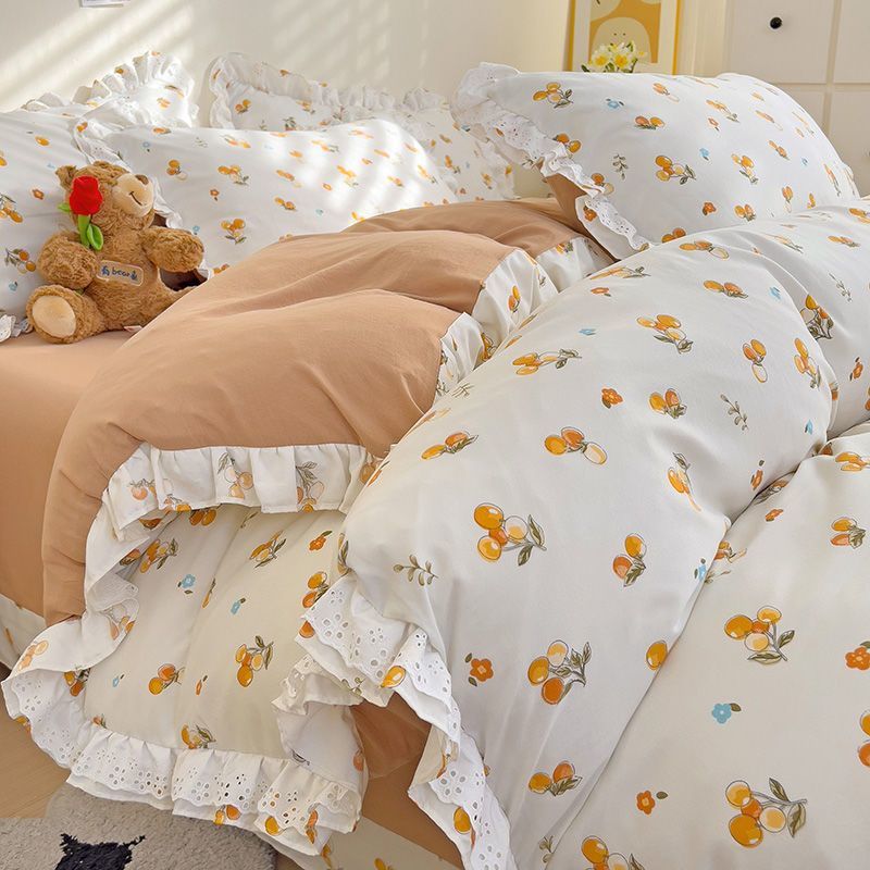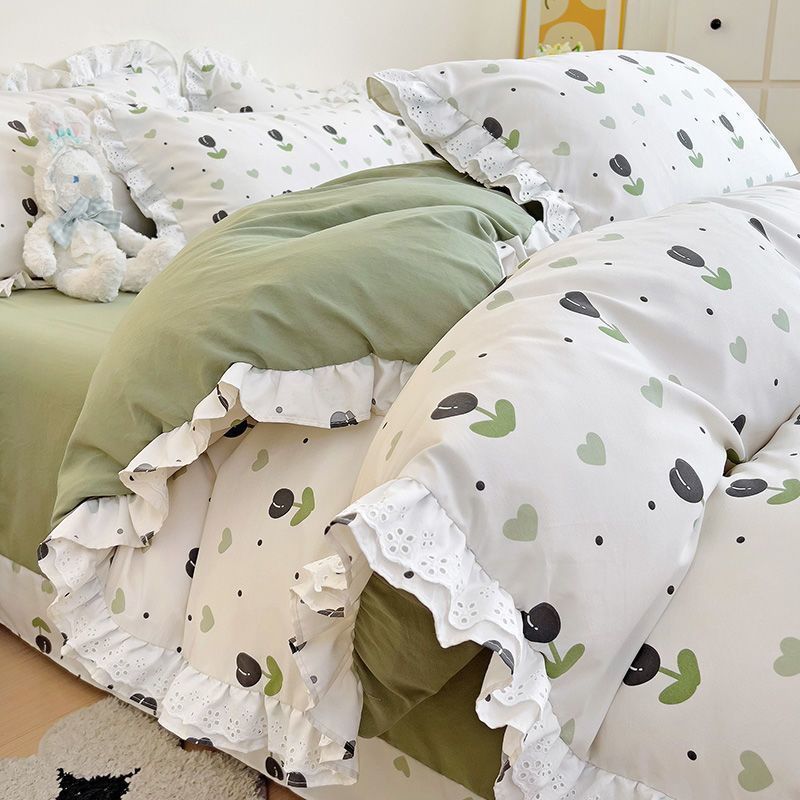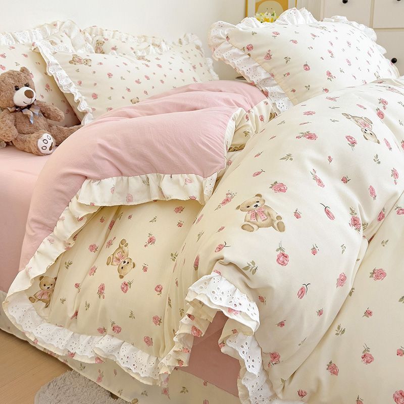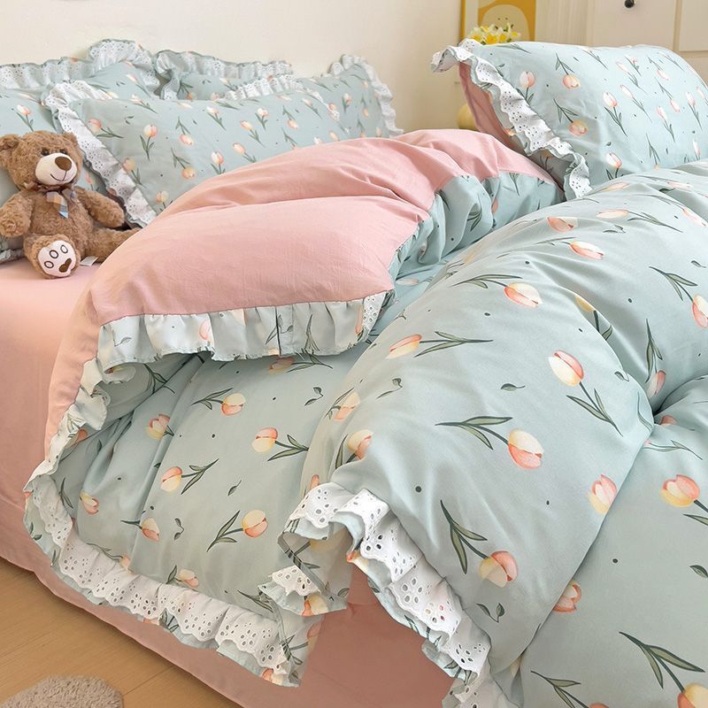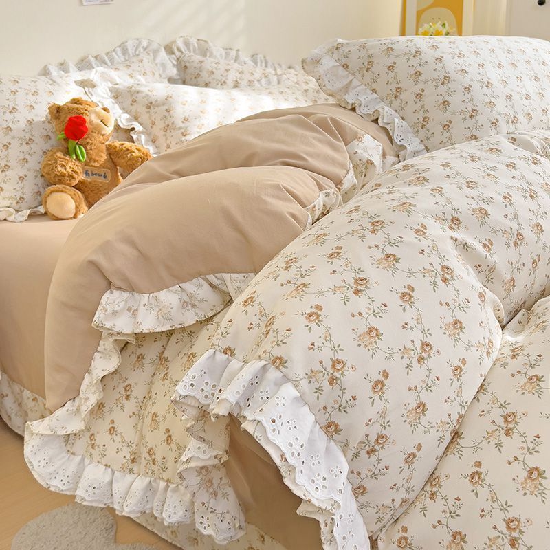 한국식 프린세스 스타일 퓨어 코튼 4 피스 세트 인 신선한 스타일 퓨어 코튼 베드 커버 레이스 퀼트 커버 침대 시트 침구스토어 가기