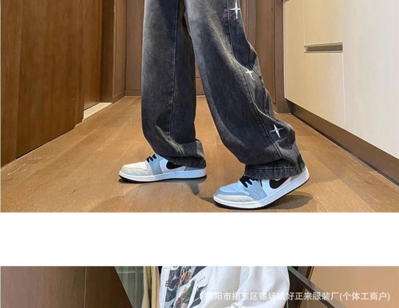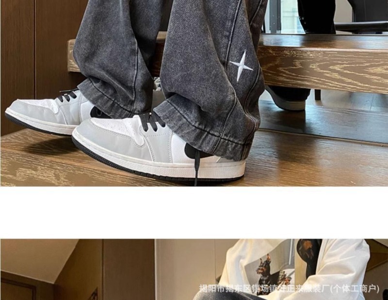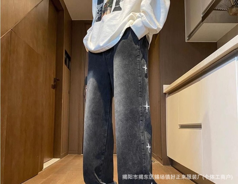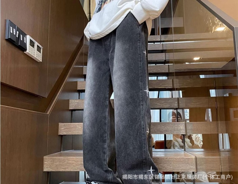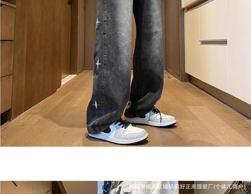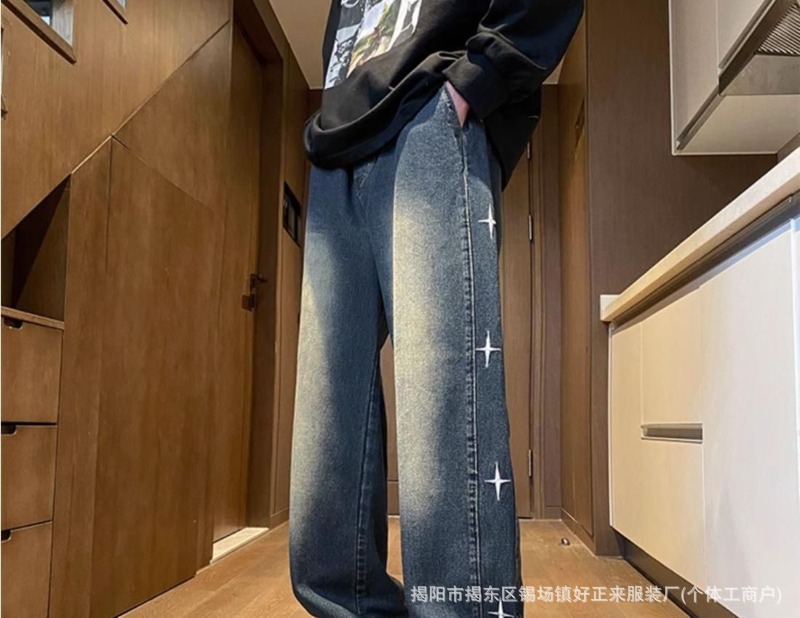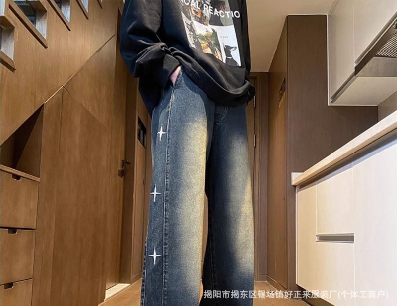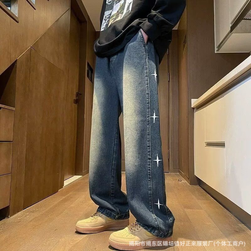 미국식 하이 스트리트 힙합 스타 자수 청바지 남성 봄과 가을 여름 얇은 느슨한 스트레이트 롱 바지스토어 가기