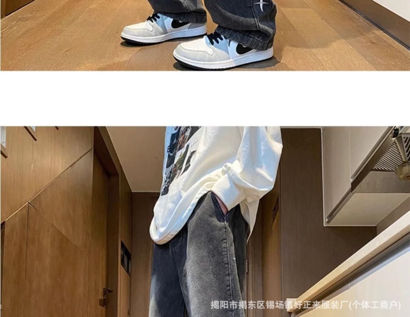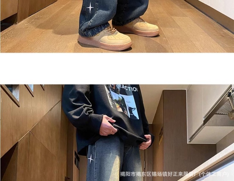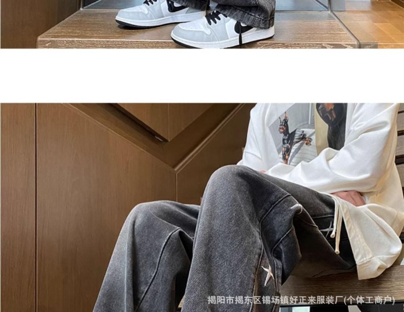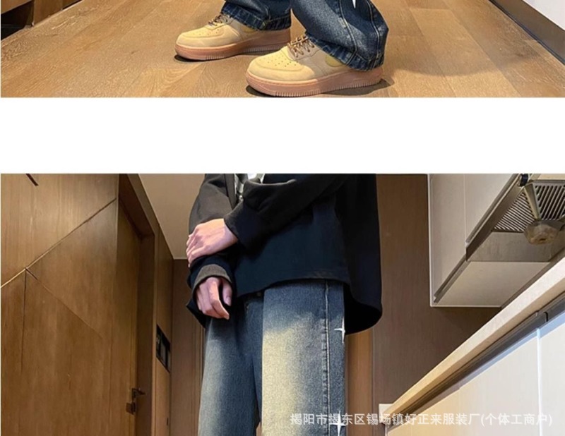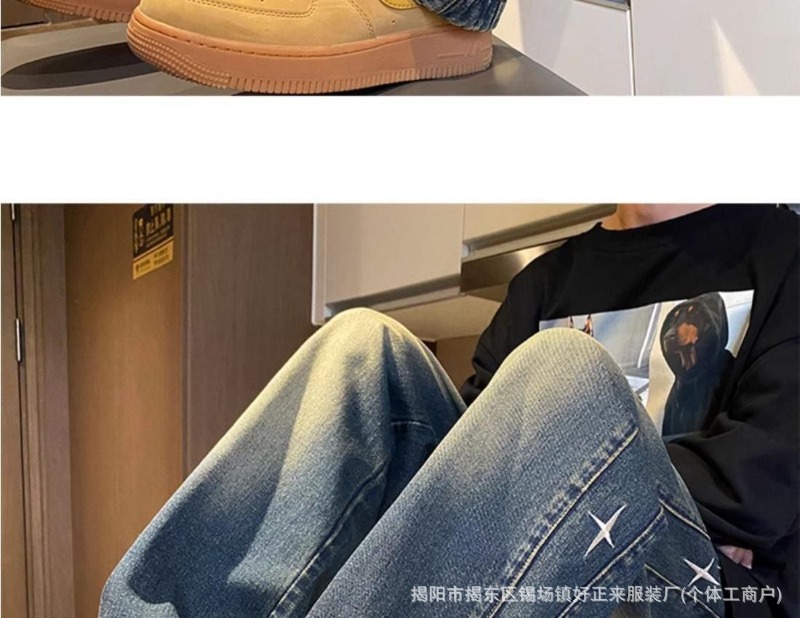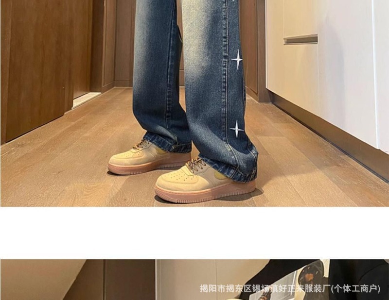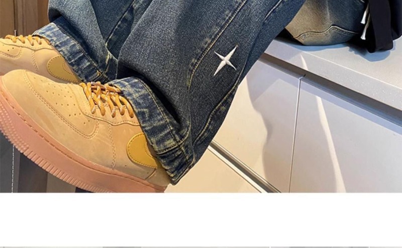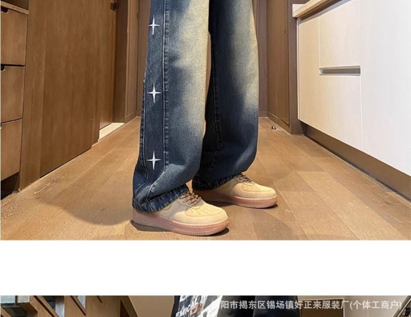 미국식 하이 스트리트 힙합 스타 자수 청바지 남성 봄과 가을 여름 얇은 느슨한 스트레이트 롱 바지스토어 가기