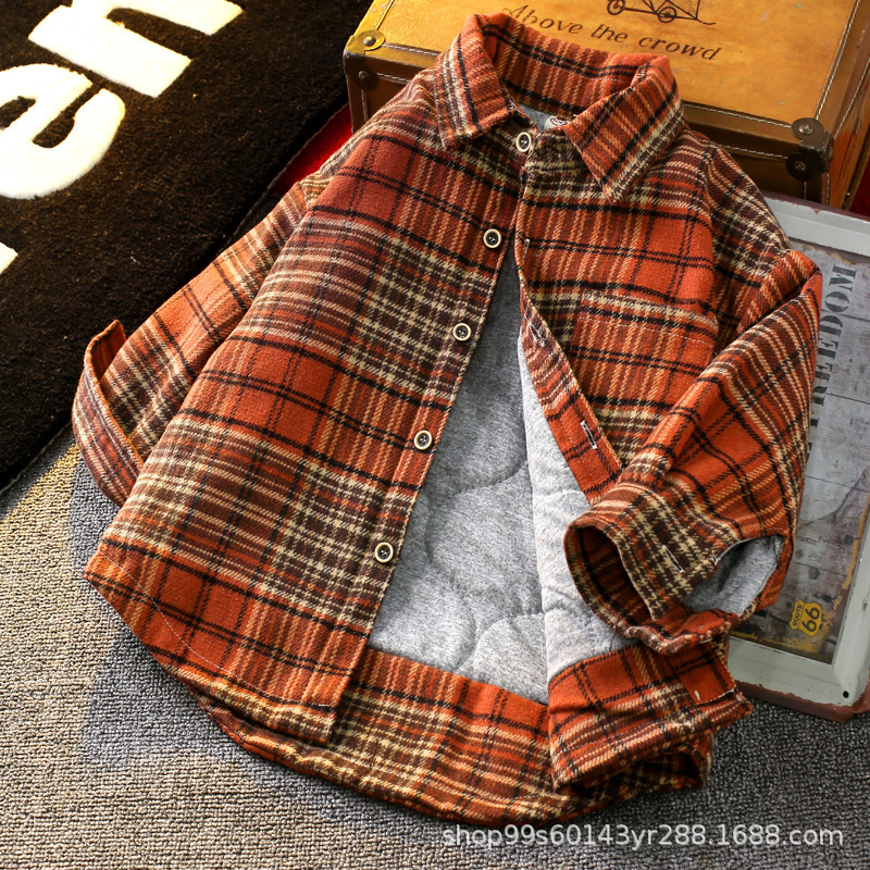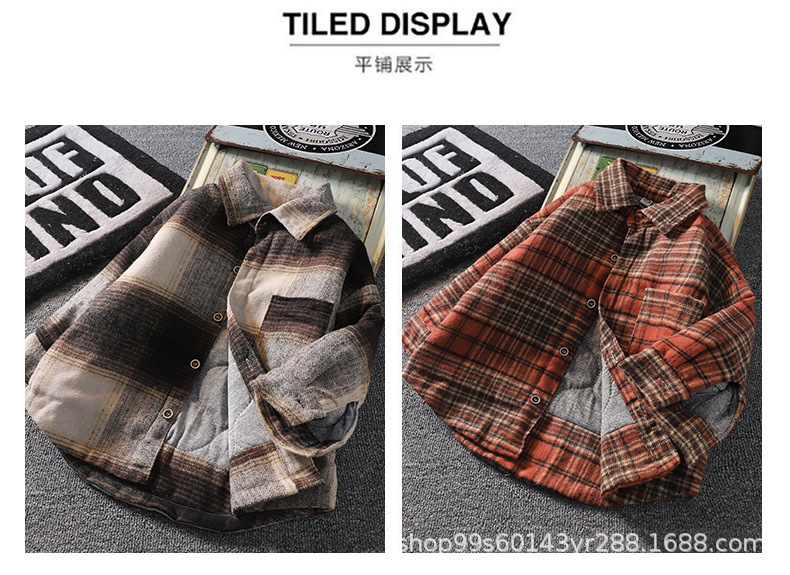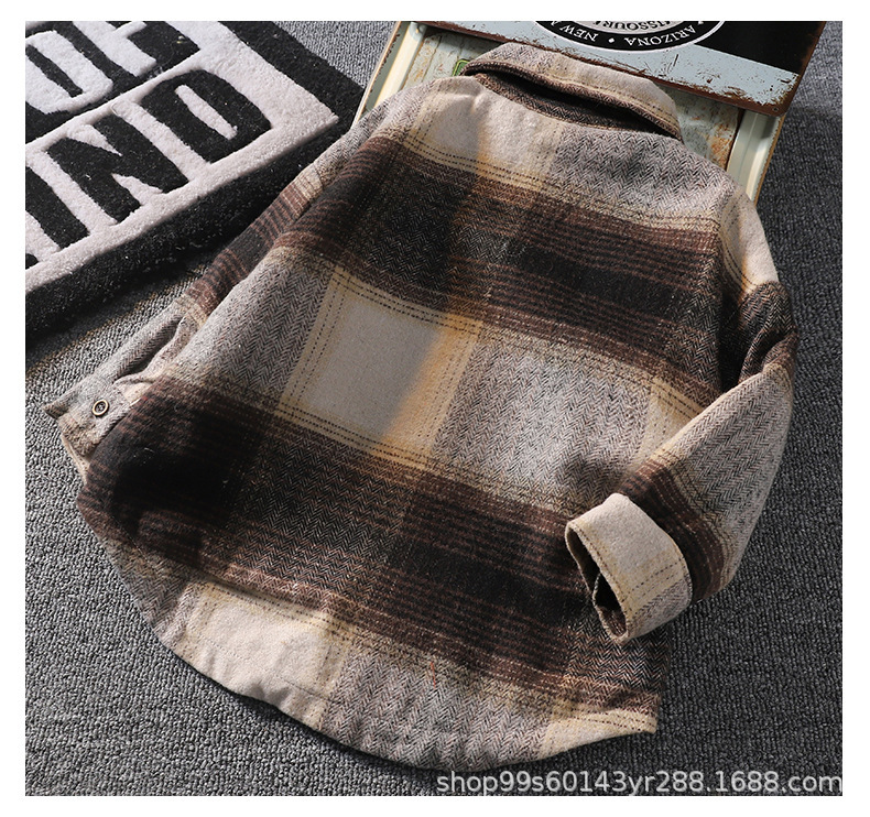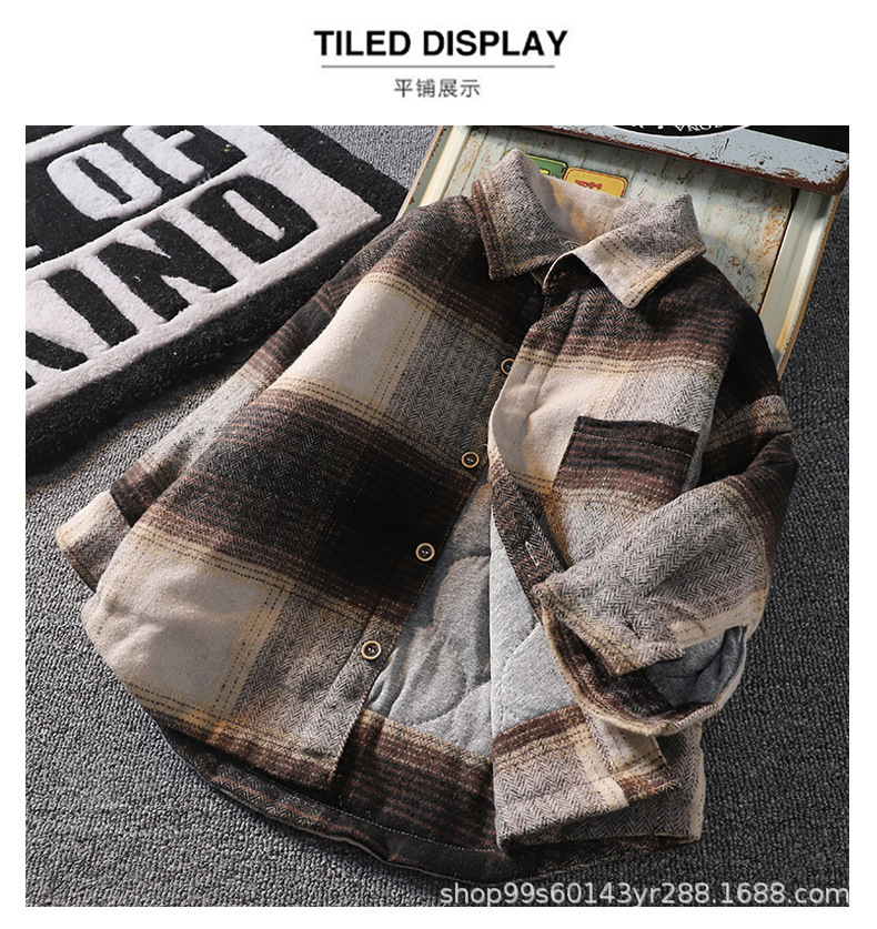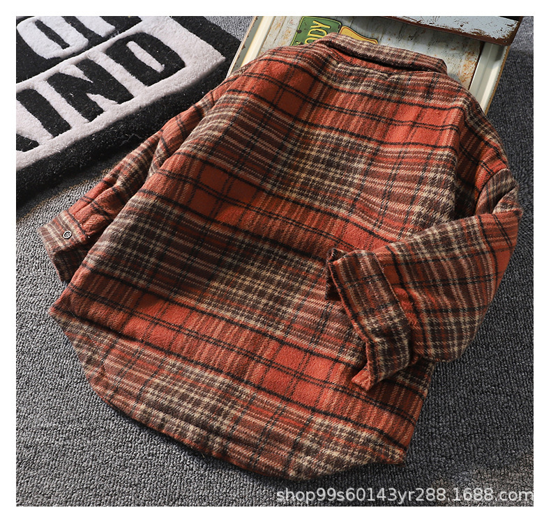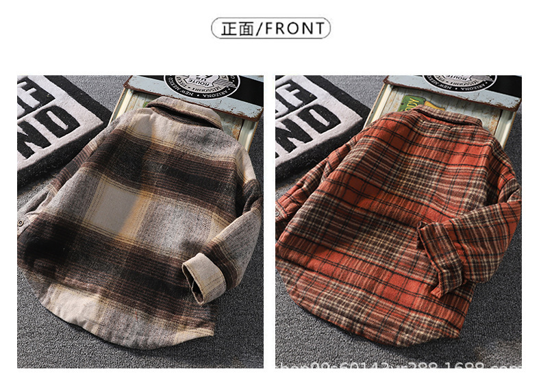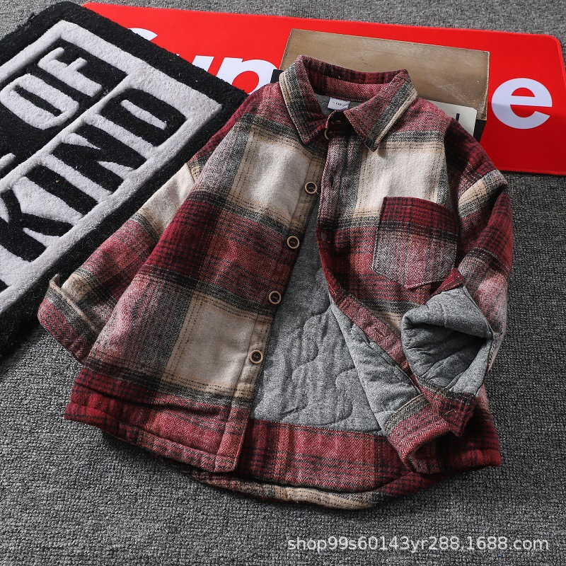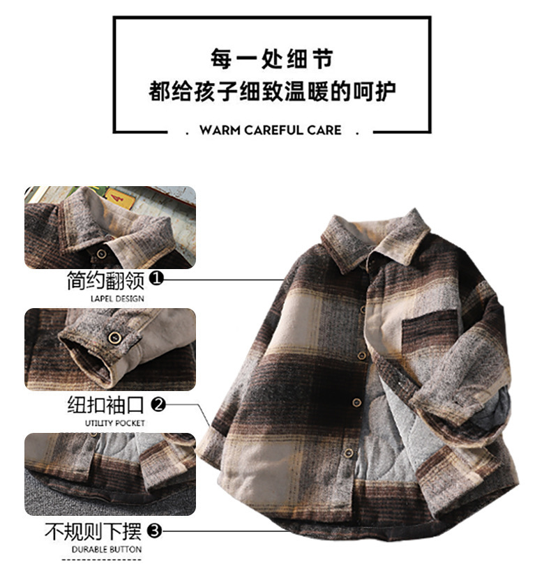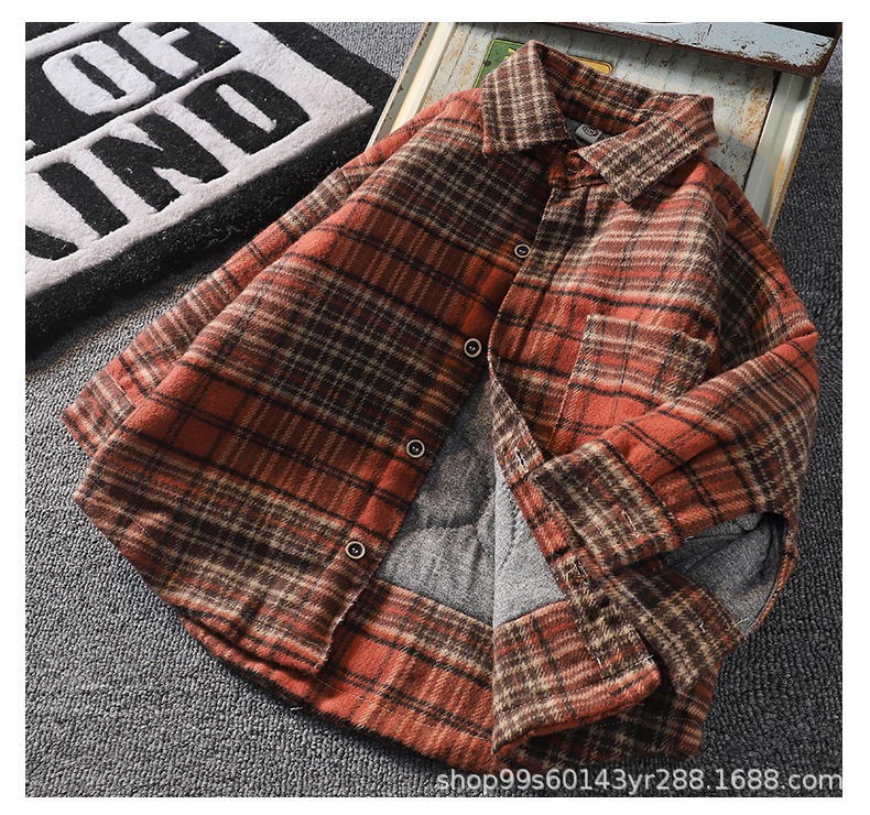 가을 겨울 남아용 기모 셔츠, 누빔 안감 아동용 일체형 기모 겨울 보온 셔츠, 기모 체크무늬 가을 겨울 신상품스토어 가기